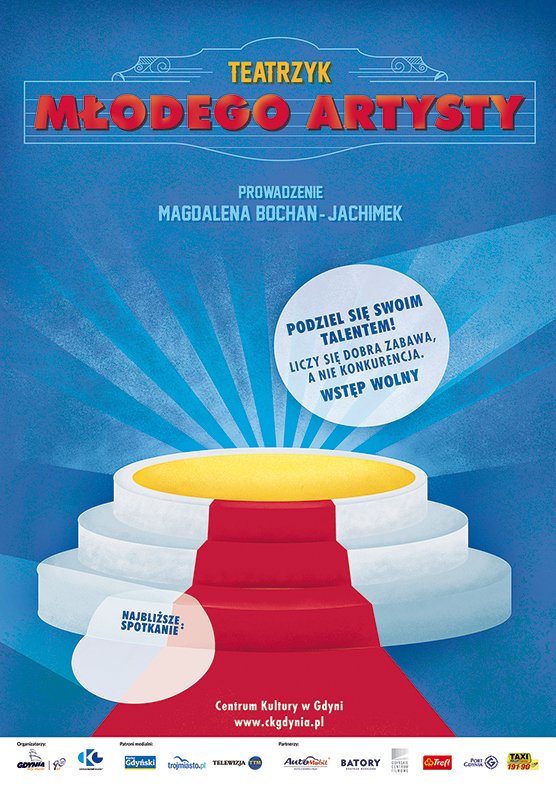 Nadszedł czas na Was, młodzi artyści! Tylko tu możecie wykazać się swoim talentem: zaśpiewać ukochaną piosenkę, zrobić gwiazdę, powiedzieć wiersz, zbudować auto z patyków. Zapraszamy do czynnego uczestnictwa, ale również kibicowania na widowni. Być może na kolejnym spotkaniu to właśnie Ty zdecydujesz się wyjść na scenę. Spotykamy się raz w miesiącu, pierwsza odsłona już 22 stycznia. Zasady są proste: – masz nie więcej niż 15 lat – twój występ trwa maksymalnie 7 minut – zgłaszasz chęć prezentacji u prowadzącego (zapisy od godz. 11:30 do 11:50) – zabierasz ze sobą dobry humor. Do udziału w Teatrzyku zapraszamy osoby indywidualne lub grupy osób (np. zespół muzyczny lub grupa taneczna). U nas liczy się dobra zabawa, a nie konkurencja. Podziel się swoim talentem! Prowadzenie: Magdalena Bochan-Jachimek. Kolejne spotkania: 12 lutego, 5 marca, 23 kwietnia, 28 maja i 25 czerwca. http://www.ckgdynia.pl/teatrzyk-mlodego-artysty-startuje-nowy-projekt-dla-dzieci-i-mlodziezy/ Opublikowano: 17.01.2017 09:14 Autor: Justyna Śliwicka