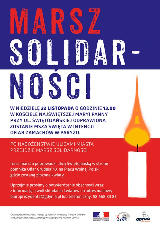 Marsz Solidarności z Francją Już w najbliższą niedzielę w Gdyni odbędzie się Marsz Solidarności z Francją.... Zobacz więcej