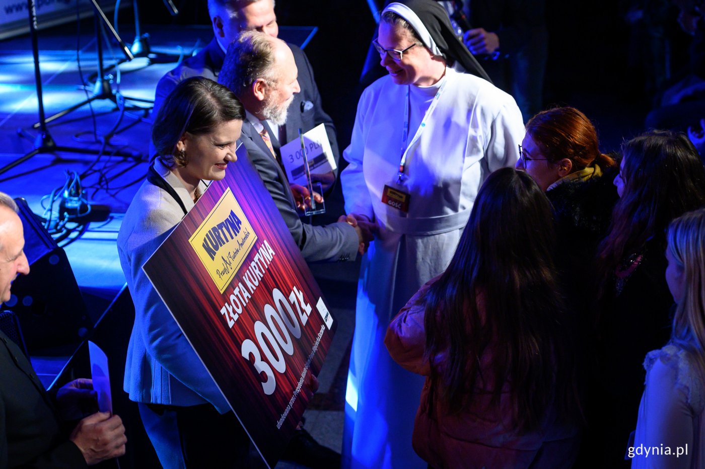 Dobiegła końca tegoroczna, czwarta już edycja Przeglądu Teatrów Amatorskich „Kurtyna”. Podczas uroczystej gali w kościele pw. Chrystusa Króla na Małym Kacku poznaliśmy komplet laureatów, którzy swoimi spektaklami podbili serca członków jury.„Kurtyna” to już marka sama w sobie - z dzielnicowego wydarzenia w lokalnej parafii na gdyńskim Małym Kacku przegląd w kilka lat rozrósł się do rozmiarów tygodniowego święta amatorskich grup teatralnych. Do Gdyni tym razem przyjechało kilkadziesiąt zespołów z różnych regionów Polski, które odważyły się zaprezentować przed konkursowym jury. W nim zasiedli także krytycy teatralni. Gala na zamknięcie przeglądu W sobotnie popołudnie podsumowano tegoroczną edycję i wszystko to, co działo się na scenie "Kurtyny" każdego wieczoru, począwszy od niedzieli, 24 listopada. Uroczysta gala cieszyła się dużym zainteresowaniem i publiczność dość szczelnie wypełniła ławki w kościele pw. Chrystusa Króla.Wszystkich gości i uczestników powitał ze sceny Jarosław Szydłak, prezes organizującego przegląd Stowarzyszenia Katolickie Amatorskie Centrum Kultury. Organizator przekazał specjalne podziękowanie, „Kurtynę Wdzięczności” na ręce wiceprezydent Gdyni ds. gospodarki, Katarzyny Gruszeckiej-Spychały, która w imieniu Prezydenta Gdyni powitała obecnych na gali.- To wydarzenie, które łączy w sobie wszystko to, co w Gdyni jest dla nas najważniejsze, czyli kulturę, miłość do kultury, bardzo obywatelską postawę i dużą troskę dla osób z niepełnosprawnościami – mówiła Katarzyna Gruszecka-Spychała, wiceprezydent Gdyni ds. gospodarki. - To zarazem wydarzenie bardzo skupione na lokalnej wspólnocie, która sprawia, że wszyscy doskonale czują się w swoim mieście i przy okazji tworzą rzeczy, które są naprawdę dobre i piękne. Jestem pod ogromnym wrażeniem, myślę że to jedno z najlepszych wydarzeń kulturalnych w Gdyni. Integracja w tym wypadku ma pełne i prawdziwe znaczenie. Naprawdę łączymy środowiska, to projekt włączający. Wszyscy znajdujemy coś, co nas łączy i na czym możemy budować wspólnotę – dodała wiceprezydent. „Kurtyna” rośnie w siłę Podsumowanie czwartej edycji "Kurtyny" w ocenie organizatorów wypadło bardzo okazale. Więcej emocji, więcej widzów, profesjonalna organizacja i zdolne teatry - to niektóre z plusów, które zostaną w pamięci po tegorocznej odsłonie wydarzenia.- Tegoroczna „Kurtyna” była niezwykła pod względem poziomu artystycznego spektakli. Przyjechały do nas bardzo różnorodne grupy, od osób sprawnych, zdrowych, śmigających po drzewach poprzez osoby cierpiące na różne niepełnosprawności. To teatry z ośrodka dla osób niesłyszących i niedosłyszących, różne teatry terapeutyczne. Spektakle przemawiały do nas na różne sposoby i w różnych formach, od musicalu po klasyczny dramat, jak „Wesele” Wyspiańskiego. W tym roku kościelne ławki i chór w niektóre dni bywały szczelnie wypełnione, dzisiejsza gala też cieszy się dużą popularnością. Każdego dnia znajdowali się ludzie dobrej woli, którzy chcieli nam pomóc. To fundatorzy dodatkowych nagród czy sponsor gali, Zarząd Portu Gdynia. Zanotowaliśmy w tym roku progres na wielu frontach – podsumował Jarosław Szydłak, prezes organizującego przegląd Stowarzyszenia Katolickie Amatorskie Centrum Kultury w Gdyni Małym Kacku.- Na przegląd zgłosiło się 28 grup, z czego komisja konkursowa wybrała 18, które wystąpiły w tygodniu finałowym. Grupy są z Gdyni, Rumi, Bolszewa, ale także z województwa kujawsko-pomorskiego, warmińsko-mazurskiego, z Warszawy i chyba najdalej z Kłodzka. Szukamy grup amatorskich, które zapraszamy do tworzenia razem z nami społeczności amatorskich grup teatralnych – wyjaśniła założenia „Kurtyny” Monika Baran z biura prasowego wydarzenia.Głównym punktem sobotniej gali było wręczenie nagród głównych i specjalnych oraz wyróżnień dla grup teatralnych biorących udział w przeglądzie.- Tegoroczny przegląd był trudniejszy, bo przyjechały grupy, które są z nami od kilku lat i widać jak wzrasta ich poziom umiejętności, pojawiły się też nowe grupy wnoszące coś wartościowego do tego przeglądu – mówiła Anna Halasz, przewodnicząca jury. - Zaprosiliśmy do współpracy dużą grupę profesjonalistów, byli z nami aktorzy, artyści, śpiewacy, choreograf, reżyser czy krytyk teatralny, więc dyskusja nad poziomem sztuk była na wysokim poziomie i łatwiej było wyłonić zwycięzców. Szukaliśmy przede wszystkim prawdziwego teatru, dobrej gry aktorskiej, dobrego scenariusza. Pojawiły się spektakle klasyczne i te grupy, które po nie sięgnęły, wypadły bardzo dobrze. Były też autorskie scenariusze i pomysły, które staraliśmy się docenić – podsumowała przewodnicząca jury. Poniżej komplet nagród: za zaangażowanie i autentyczność kreacji aktorskich dla TEATRU 40 SERC i spektaklu „Syn marnotrawny” za ciekawe kreacje aktorskie oraz pomysłowy scenariusz wpisujący się w dyskurs o współczesnej kulturze dla TEATRU KRZESIWO i spektaklu „Eksperyment” (wręczono też „Kurtynę Admiratorską” od anonimowego darczyńcy i Nagrodę Jednego Widza ufundowaną przez SKLEP SPOŻYWCZY DOMENA oraz SKLEP SPOŻYWCZY PROMOCJA Z MAŁEGO KACKA) za wdzięk i harmonię scenicznego przekazu dla TEATRU TERAPEUTYCZNEGO KŁOBUCZKI i spektaklu „Niebieska kraina” (wręczono też „Kurtynę Specjalną” ufundowaną przez prezydenta Gdyni, Wojciecha Szczurka i Nagrodę Jednego Widza ufundowaną przez SKLEP SPOŻYWCZY DOMENA oraz SKLEP SPOŻYWCZY PROMOCJA Z MAŁEGO KACKA) za poszukiwanie nowych środków wyrazu i podejmowanie nowych wyzwań dla PILSKIEGO TEATRU TAŃCA i spektaklu „ No name” (wręczono też Nagrodę Jednego Widza ufundowaną przez SKLEP SPOŻYWCZY DOMENA oraz SKLEP SPOŻYWCZY PROMOCJA Z MAŁEGO KACKA) za sceniczny wdzięk i różnorodno
