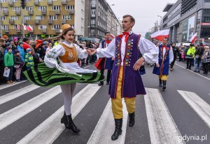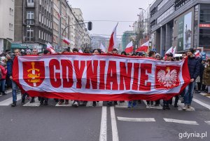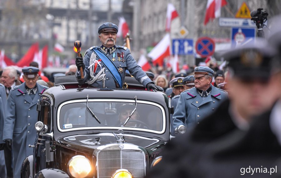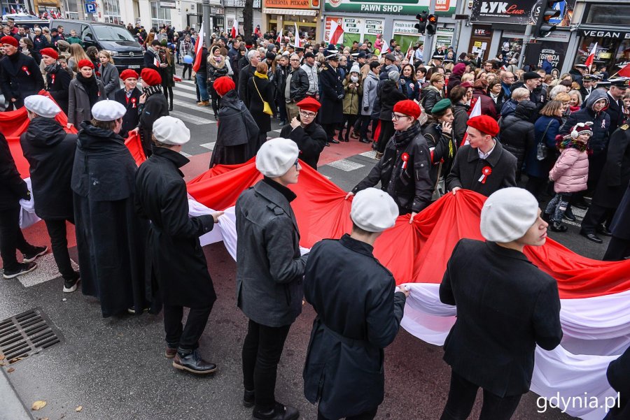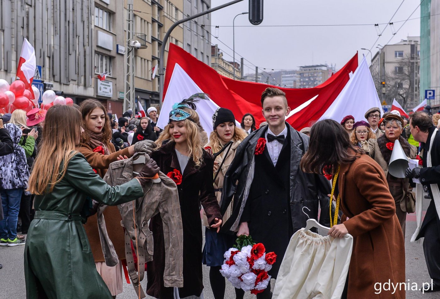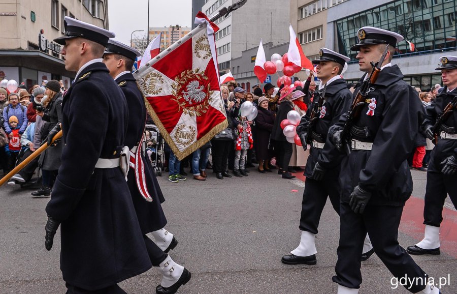 Było biało-czerwono, radośnie i rodzinnie. Gdynia hucznie uczciła 100. rocznicę odzyskania przez Polskę niepodległości. Ulicami przeszła barwna parada, a przy pomniku Polski Morskiej odbyły się oficjalne uroczystości. W obu wydarzeniach licznie wzięli udział m.in.: parlamentarzyści, władze miasta, Marynarka Wojenna, kombatanci, przedstawiciele organizacji społecznych oraz mieszkańcy Gdyni.11 listopada na ulicach Gdyni panowała radosna, ale i podniosła atmosfera. Na mieszkańców czekało wiele atrakcji w ramach 100. Gdyńskich Urodzin Niepodległej. Główną z nich była Wielka Parada Niepodległości. Jak co roku barwna i nawiązująca do tradycji. Na czele pochodu jechał marszałek Józef Piłsudski, a w trakcie przemarszu uczestnicy prezentowali pokazy artystyczne i choreograficzne. Każdy mógł znaleźć coś dla siebie. Były łodzie, motocykle, zabytkowe samochody, sprzęt militarny, a grupy rekonstrukcyjne zaprezentowały się w historycznych pojazdach. – To radosny dzień. Świętujemy bardzo ważne wydarzenie sprzed stu lat, kiedy Polska odzyskała niepodległość. Gdynia jest miejscem szczególnym. Nie byłoby naszego miasta i portu, gdyby nie odzyskana wolność i dostęp do morza. Wtedy ziścił się wielki sen, wielkie marzenie Polaków o tym, żeby powstał nowoczesny port i piękne miasto. Tak zrodziła się Gdynia, więc ta pamięć historyczna jest tu szczególna. Stąd pewnie te tysiące gdynian z uśmiechem biorących udział w paradzie i wydarzeniach, które w ciągu ostatnich dni przypominają tę wspaniałą rocznicę – mówi Wojciech Szczurek, prezydent Gdyni. Biało-czerwony korowód wyruszył, w samo południe, sprzed dworca PKP. Następnie przeszedł ulicą 10 Lutego, aż do skweru Kościuszki. Tam, przy pomniku Polski Morskiej, odbyły się oficjalne uroczystości z udziałem m. in.: władz miasta, parlamentarzystów, polityków, dowództwa Marynarki Wojennej, kombatantów i delegacji organizacji społecznych. – Dzięki Józefowi Piłsudskiemu, pomimo wielu trudności piętrzących się przed młodym państwem, Polska nie tylko zmartwychwstała, ale też we wszystkich dziedzinach uczyniła wielki krok naprzód. Odzyskana wtedy wolność spowodowała ożywienie gospodarcze. Wielki wysiłek finansowy skoncentrowano wtedy wokół budowy portu i rozbudowy Gdyni. Dlatego na przypomnienie zasługują także ci wszyscy, którzy przyczynili się do powstania i rozwoju naszego miasta: budowniczy portu, nauczyciele, kupcy, rybacy, robotnicy niekwalifikowani. To oni ciesząc się z niepodległej Polski wspierali rozwój małej i dużej ojczyzny. Pamiętajmy o zwykłych ludziach, którzy mieli marzenia, nadzieję i energię, którzy zmieniając Gdynię, zmieniali Polskę. Chciałabym życzyć wszystkim satysfakcji z posiadania wolnej ojczyzny. Świętujmy radośnie i z optymizmem pod biało-czerwoną flagą. Niech ten dzień nas jednoczy tak, jak sto lat temu zjednoczył wszystkich na tej ziemi – mówiła podczas oficjalnych uroczystości Joanna Zielińska, przewodnicząca Rady Miasta Gdyni. 100. Gdyńskie Urodziny Niepodległej Aby Świętem Niepodległości można się było cieszyć przez cały dzień, przygotowano także szereg innych wydarzeń. Swoje podwoje dla mieszkańców otworzył np. Bank Polski. Wszyscy chętni wchodząc do jego wnętrza odbywali podróż w czasie. Mogli tam przeżyć prawdziwy powrót do przeszłości. – Mieszkańcy mogli przenieść się w dwudziestolecie międzywojenne i zobaczyć, jak w tamtych czasach funkcjonowała ta przestrzeń. Dzięki animatorom kultury doznali tego, jak pracował bank i jak wyglądały stroje z tamtej epoki. Mogli też przyjrzeć się udostępnionym sprzętom. Był np. sejf, który został wyprodukowany w 1928 roku – mówi Maja Wagner, pełnomocnik prezydenta ds. kultury.Oprócz tego każdy gość był obdarowywany pamiątkowymi gdyńskimi obligacjami niepodległościowymi. Przygotowane atrakcje spodobały się odwiedzającym.– Jest rewelacyjnie. Bardzo fajnie wszystko zostało przygotowane, szczególnie scenki z udziałem rekonstruktorów. Jesteśmy zachwyceni – mówi pan Wojtek, którzy uczestniczył w wydarzeniu. Była to ostatnia okazja do zobaczenia przestrzeni Banku Polskiego w obecnym kształcie. – Na początku grudnia rozpoczynają się prace adaptacyjne Banku Polskiego do nowych funkcji hotelarsko-gastronomicznych – dodaje Wagner.Ciekawie było też w Konsulacie Kultury. Tam czekało wiele atrakcji rodzinnych i kulturalnych. Można też było wyrobić sobie Kartę Mieszkańca i okolicznościowy paszport. – Specjalne wydarzenia świętuje się w sposób szczególny. W Konsulacie Kultury robiliśmy zdjęcia w fotobudce. Wszystko po to, żeby uczestnicy mogli wyrobić sobie paszport Niepodległej. Były też warsztaty rodzinne, gdzie wspólnie tworzyliśmy ozdoby związane ze Świętem Niepodległości. Mieliśmy również wspaniały koncert „Hymny”, ze specjalnym udziałem saksofonisty Przemka Dyakowskiego. Pieśni patriotyczne wybrzmiały tam w zupełnie nowych aranżacjach – mówi Beata Szadziul, pełnomocnik prezydenta ds. rodziny.Kinomani mogli się udać do Gdyńskiego Centrum Filmowego. Odbywał się tam :Dzień Kina Polskiego”. W repertuarze znalazły się polskie produkcje m.in.: „Cud nad Wisłą”, „Miś”, „Kamerdyner”, „Dywizjon 303. Historia prawdziwa”, „Zimna wojna” czy „Kler”. Przez cały dzień za darmo można było też odwiedzać Muzeum Marynarki Wojennej, Muzeum Emigracji oraz Muzeum Miasta Gdyni. Natomiast w Centrum Nauki Experyment przygotowano Spin Day ze specjalnymi wykładami i warsztatami. Za to najmłodsi mogli się udać do gdyńskiego InfoBoksu i tam wziąć udział w warsztatach rodzinnych, gdzie tworzono chorągiewki i inne elementy z papieru.Odbyły się także specjalne tematyczne spacery. Można było „Otworzyć się na miasto” i z Fundacją Pura udać się do kamienicy Grubbów, zobaczyć kamienicę