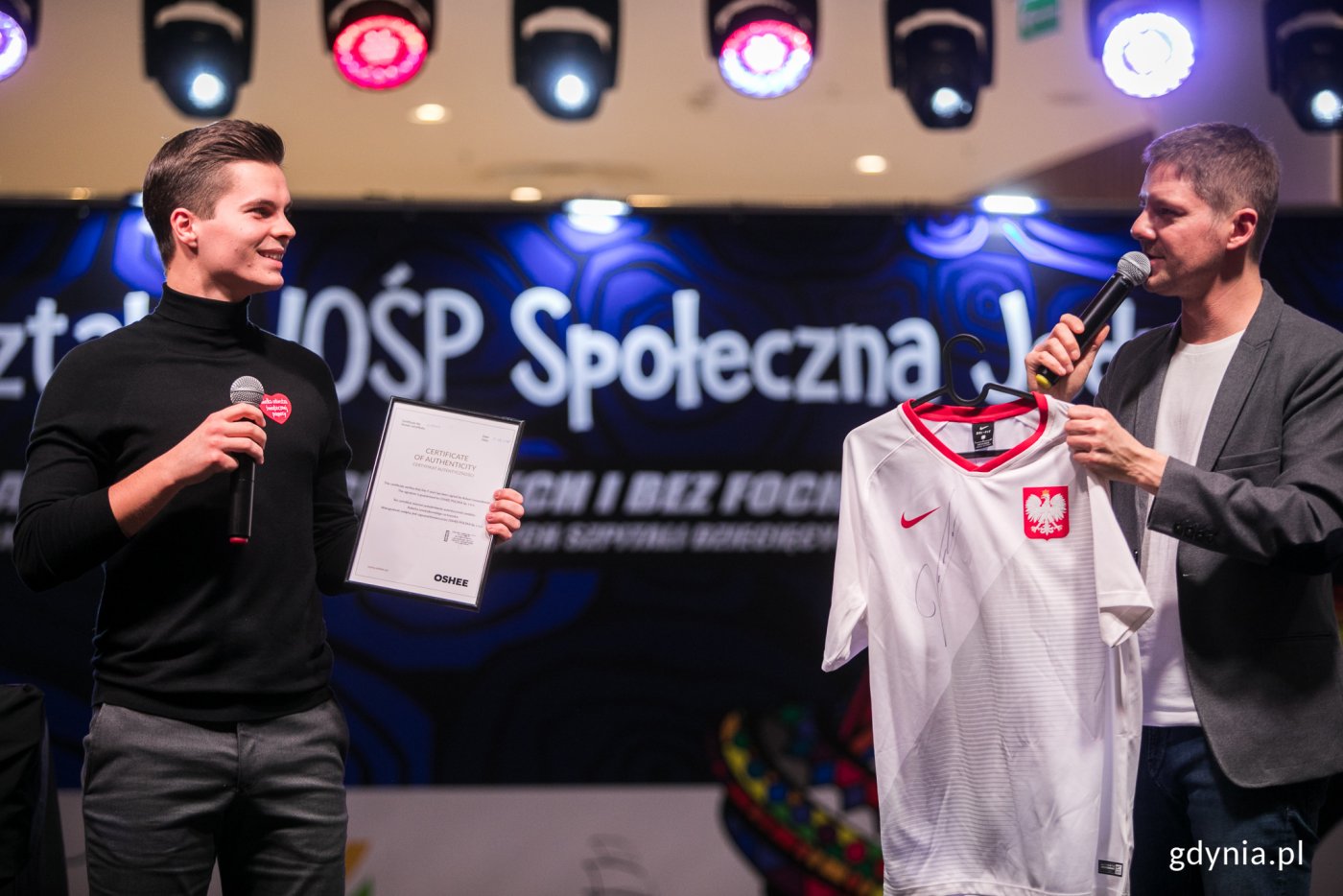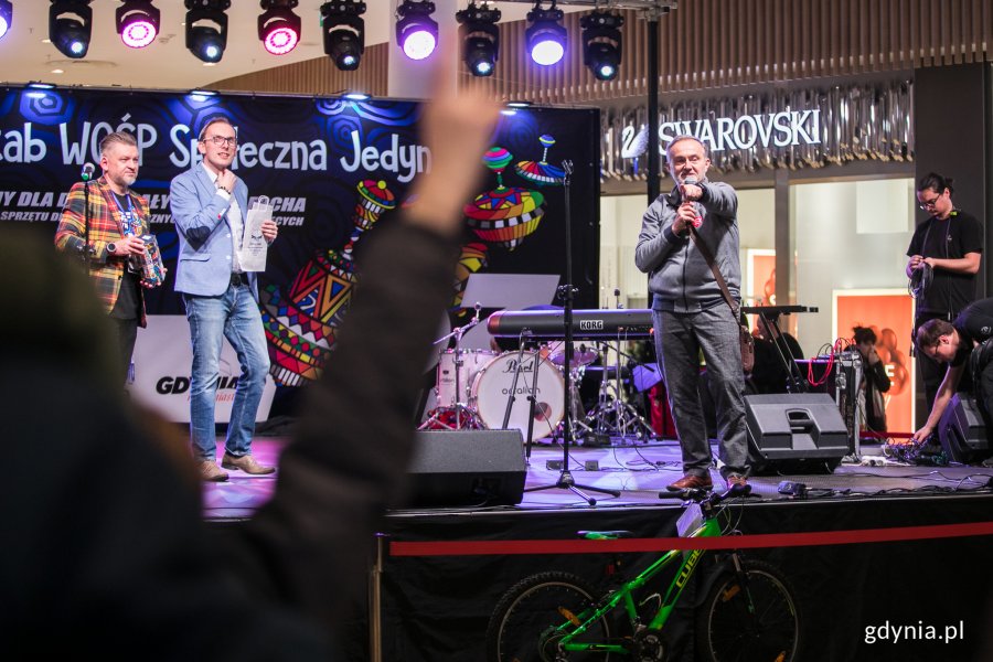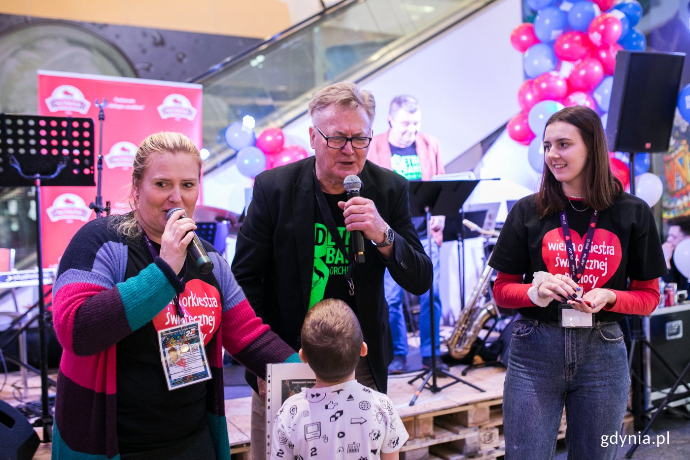 Zaczęliśmy na dobre tegoroczne granie z Wielką Orkiestrą Świątecznej Pomocy! Ze względu na niedzielny zakaz handlu tym razem niektóre zbiórki prowadzono o dzień wcześniej. W sobotę Gdynia rozpoczęła granie w Centrum Riviera, Galerii Szperk, Centrum Handlowym Klif i Batorym. Za nami pierwsze licytacje i zapełnione puszki!Riviera, Szperk i Batory – od trzech dobrze znanych obiektów handlowych ruszyło granie w Wielkiej Orkiestrze Świątecznej Pomocy w gdyńskim wydaniu. Pierwsi wolontariusze zaczęli kwestować już od sobotniego poranka, a między zakupami czas umilały specjalnie przygotowane atrakcje, występy i koncerty. Wszystko ze względu na przypadającą na ten weekend niedzielę z zakazem handlu, co wymusiło drobne zmiany przy organizacji tegorocznego finału WOŚP. Orkiestra w Rivierze W Centrum Riviera od rana funkcjonował sztab zorganizowany przez stowarzyszenie In Gremio.- W tym roku wygląda to nietypowo, część ludzi w Rivierze jest zaskoczona. Gramy w zasadzie przez dwa dni, oczywiście z powodu niedzieli niehandlowej, dlatego w centrum handlowym gramy akurat w sobotę – tłumaczył Marek Radyko, szef sztabu WOŚP stowarzyszenia In Gremio. - Od godziny dziesiątej do dwudziestej na terenie całego centrum odbywa się mnóstwo aktywności i licytacji przeplatanych koncertami zespołów. Ponad 150 wolontariuszy kwestuje na WOŚP. Na 20 strefach tematycznych prawie 100 osób zaprasza też wszystkich gdynian do wspólnej zabawy – wymieniał Marek Radyko. Atrakcje przygotowały m.in. gdyńskie organizacje pozarządowe zajmujące się np. dogoterapią czy ratownictwem medycznym, powstały też strefy małego architekta oraz robotyki. Dodatkowe emocje płynęły na bieżąco ze specjalnie przygotowanej sceny, gdzie pojawił się np. zespół tańca irlandzkiego, zespół Ortalion i – jako gwiazda dnia – Future Folk ze Stanisławem Karpiel-Bułecką. Gwoździem programu były jednak same licytacje.- Atrakcji jest bardzo wiele, wiele jest przedmiotów do licytacji, ale i wiele występów. To niezwykła atmosfera – mówił Wojciech Szczurek, prezydent Gdyni, który prowadził na scenie część licytacji. - Orkiestra gra w Polsce po raz dwudziesty siódmy i też po raz dwudziesty siódmy w Gdyni. Bardzo się cieszę, że co roku tysiące gdynian odnajduje wolontariuszy z puszkami i wrzucają do nich swoje pieniądze ze świadomością, że pomagamy. To nie tylko ten konkretny wymiar, czyli wsparcie sprzętu kupowanego przez WOŚP, ale to także po prostu dar serca, najpiękniejsza rzecz na świecie – podkreślił prezydent Gdyni.Co można było wylicytować w Centrum Riviera? Znalazło się coś dla każdego, tematyka orkiestrowych fantów sięgała od lokalnej historii, przez sport, aż po zabiegi kosmetyczne. Nie zabrakło też bardzo unikatowych przedmiotów.- Mamy makietę okrętu podwodnego, którą przekazał nam poseł Aziewicz, prezydent Wojciech Szczurek licytował złote pióro Parkera z logo orkiestry i własnym podpisem oraz karnety na cały Festiwal Polskich Filmów Fabularnych w Gdyni. Licytowaliśmy też globusy Polski z autografami serialowego Mariusza oraz Prezesa. Mamy również dużo koszulek oraz pamiątek związanych ze sportowcami, między innymi koszulkę meczową Roberta Lewandowskiego z certyfikatem – wymieniał Marek Radyko.Spore zainteresowanie wzbudzili też zawodnicy ekstraklasowej Arki Gdynia, którzy osobiście uczestniczyli w licytacji klubowych pamiątek. Piłkarze, na czele m.in. z Rafałem Siemaszką i Luką Zarandią zaoferowali kilka trudno dostępnych przedmiotów.- To na tyle wielka i szczytna akcja, że trudno się w nią nie włączyć. Licytacje to jedno z miejsc, gdzie dzisiaj przekazujemy gadżety – mówił Wojciech Pertkiewicz, prezes Arki Gdyni. - Dzisiaj do wylicytowania były między innymi koszulki meczowe i koszulka z finału Pucharu Polski, ale także coś, czego kupić normalnie nie można, voucher na profesjonalną sesję zdjęciową z całą drużyną. Fajna rzecz, nie sprzedajemy tego w sklepie – zapewniał prezes Pertkiewicz. Gdynia grała nie tylko w Rivierze Dużo działo się także w Galerii Szperk, gdzie gdynianie z północnych dzielnic mogli też skorzystać ze specjalnie przygotowanych atrakcji. Podobnie jak w Rivierze, przygotowano licytacje – w tym dwie prowadzone przez wójta gminy Kosakowo i prezydenta Gdyni. Na miejscu pokazały się też zespoły muzyczne i taneczne, a punktualnie o 15:00 tańczono poloneza.Również Centrum Batory zorganizowało sobotnie wydarzenia. To licytacje i możliwość zakupu WOŚP-owych gadżetów. Grała także scena, gdzie wśród zespołów przewinął się m.in. Detko Band. Z kolei w Klifie funkcjonowała zabawa fantowa. Więcej w niedzielę To dopiero początek gdyńskiego grania z WOŚP – przypominamy, że na niedzielę, pierwotny termin 27. finału, przygotowano jeszcze wiele atrakcji, na czele z licytacjami w Teatrze Miejskim im. Witolda Gombrowicza oraz terenowymi aktywnościami. Więcej informacji w artykule. Zbieramy dla najmłodszych 27. finał Wielkiej Orkiestry Świątecznej Pomocy w całym kraju jest dedykowany „dzieciom małym i bez focha”. Zebrane w tej edycji pieniądze zostaną przeznaczone na zakup sprzętu dla specjalistycznych szpitali dziecięcych. To placówki z oddziałami II oraz III stopnia referencyjności, czyli takie, które mogą dokonać specjalistycznej diagnozy oraz udzielić pomocy medycznej najciężej chorym dzieciom.W Polsce funkcjonuje dziś blisko 50 takich szpitali. Swoim zasięgiem obejmują one teren całego kraju. W placówkach tego rodzaju szczególnie ważne jest nowoczesne, spełniające najwyższe standardy wyposażenie, które daje lekarzom i personelowi medycznemu jak najlepsze możliwości diagnozy i leczenia najtrudniejszych przypadków. Galeria zdjęć Pobierz galerię Sobotnie granie z WOŚP w Gdyni, fot. Karol Stańczak Pobierz zdjęcie Sobotnie granie z WOŚP w Gdyni, fot. Karol Stań