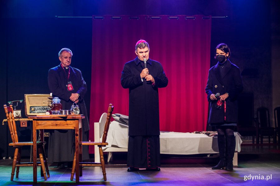 Już po raz szósty Gdynia gości najlepsze amatorskie teatry z całej Polski. Wszystko w ramach VI edycji Przeglądu Teatrów Amatorskich „Kurtyna” im. Marka Hermanna. Inauguracja wydarzenia odbyła się w niedzielę 21 listopada w kościele pw. Chrystusa Króla w Małym Kacku. Przegląd potrwa do soboty. Wtedy to dowiemy się kto zdobył główny laur konkursu – Złotą Kurtynę. „Kurtyna” to wyjątkowy przegląd przegląd teatralny. Ma on na celu popularyzację teatru i rozwijanie wrażliwości na sztukę, a także promowanie twórczości hołdującej wartościom ewangelicznym i tradycji katolickiej.Tegoroczna edycja jest już szóstą w historii przeglądu. Jej motywem przewodnim będzie 100-lecie urodzin ks. Franciszka Blachnickiego. Duchowny był założycielem Ruchu Światło-Życie, Krucjaty Wyzwolenia Człowieka i wielu innych formacji, które integrują i inspirują wierzących na całym świecie. Między 21 a 27 listopada na scenie w kościele pw. Chrystusa Króla w Małym Kacku zaprezentuje się 12 formacji teatralnych z całej Polski. Powalczą one o szereg nagród. W tym roku ich pula wynosi przeszło 16 tysięcy złotych. Laureaci Złotej Kurtyny otrzymają 5000 złotych. Wyróżnienia przyznane zostaną także przez publikę przeglądu, a Kurtynę Specjalną przyzna i ufunduje Prezydent Gdyni - Wojciech Szczurek.W niedzielny wieczór VI „Kurtyna” miała swoją uroczystą inaugurację. Odprawiona została msza święta pod przewodnictwem ks. biskupa Zbigniewa Zielińskiego. Następnie widzowie zgromadzeni w świątyni mogli obejrzeć spektakl pt. „Król Wschodzącego Słońca” w wykonaniu Grupy Artystycznej Nazaret. - Jest dla mnie źródłem wielkiej radości, że mogę Państwa przywitać w imieniu miasta w ten szczególny wieczór otwarcia „Kurtyny”. Żywię głębokie przekonanie, że jest to projekt absolutnie niezwykły. Chciałam zwrócić Państwa uwagę na jego dwa wyjątkowe aspekty. Pierwszy to ten, który powoduje, że to dzieło może w ogóle się udać. A jest to niezwykle mądrze rozumiana – w tej dzielnicy i w tej parafii – wspólnotowość. Nie wszędzie się to udaje, a tutaj trwa i jest pielęgnowane. Dobro wspólne to jedna z największych wartości, jakie możemy w samorządzie pielęgnować i bardzo jestem dumna, że w moim mieście mamy tak wspaniały przykład. Druga niezwykłość to włączający charakter i otwartość na osoby z niepełnosprawnościami – bez fałszywej taryfy ulgowej, bez podszycia litością albo chęci pokazania własnej pseudo-szlachetności. Prawdziwa otwartość gorących serc. Za to wszystko bardzo serdecznie dziękuję – powiedziała podczas uroczystości Katarzyna Gruszecka-Spychała, wiceprezydent Gdyni. Na zdjęciu od lewej: ks. Zenon Pipka - probosz parafii pw. Chrystusa Króla w Małym Kacku, ks. biskup Zbigniew Zieliński, Katarzyna Gruszecka-Spychała - wiceprezydent Gdyni // fot. Karol StańczakW kolejnych dniach wystawiane będą spektakle konkursowe. Występy, wywiady z ich twórcami oraz wydarzenia towarzyszące transmitowane będą – podobnie jak uroczystość otwarcia przeglądu – transmitowane na kanale YouTube Kurtyna Mały Kack Gdynia. Poniżej prezentujemy program tegorocznej „Kurtyny”. VI PRZEGLĄD TEATRÓW AMATORSKICH „KURTYNA” IM. MARKA HERMANNA PROGRAM 22 listopada - godz. 19.00 Teatr Ephata (Gdańsk), „Law story”; Mała Akademia Teatralna (Pruszcz Gdański), „Cicha noc”; 23 listopada - godz. 19.00 Grupa Teatralna Impuls (Kaliska), „Śpiąca królewna”; Młodzieżowa Akademia Teatralna (Gdańsk), „Perła”; Grupa Teatralna Vector (Kaliska),„Bądź gotów!”; 24 listopada 2021 - godz. 19:00 Grupa Teatralna Czarne Owieczki (Pniewite), „Okruch szczęścia”; Teatralna Szóstka (Rumia), „Tam gdzie spadają anioły”; 25 listopada - godz. 19.00 Teatr 40 Serc (Rumia), „Sekretarka miłosierdzia”; Teatr Przebudzeni (Ostróda), „Szatnia”; Teatr Krzesiwo (Warszawa), „Krokodyl”; 26 listopada - godz. 19.00 Teatr Reduta Śląska (Chorzów), „Przycisk”; Grupa Teatralna Dzikie Koty (Kłodzko), „Miłość zmartwychwstała”; 27 listopada - godz. 15.00 Gala finałowa VI Przeglądu Teatrów Amatorskich „Kurtyna” im. Marka Hermanna Koncert zespołu Siewcy Lednicy Rozdanie nagród i zakończenie przeglądu. Uroczystość otwarcia VI Przeglądu Teatrów Amatorskich „Kurtyna” im. Marka Hermanna // fot. Karol StańczakOrganizatorem wydarzenia jest Stowarzyszenie Katolickie Centrum Kultury w Gdyni Małym Kacku. „Kurtyna” współfinansowana jest przez miasto Gdynia, a także program NOWEFIO Narodowego Instytutu Wolności, Narodowe Centrum Kultury, Ministerstwo Kultury i Dziedzictwa Narodowego oraz podmioty prywatne. Galeria zdjęć Pobierz galerię Tegoroczną kurtynę otworzył spektakl „Król Wschodzącego Słońca” w wykonaniu Grupy Artystycznej Nazaret // fot. Karol Stańczak Pobierz zdjęcie Tegoroczną kurtynę otworzył spektakl „Król Wschodzącego Słońca” w wykonaniu Grupy Artystycznej Nazaret // fot. Karol Stańczak Pobierz zdjęcie Tegoroczną kurtynę otworzył spektakl „Król Wschodzącego Słońca” w wykonaniu Grupy Artystycznej Nazaret // fot. Karol Stańczak Pobierz zdjęcie Na zdjęciu od lewej: ks. Zenon Pipka - probosz parafii pw. Chrystusa Króla w Małym Kacku, ks. biskup Zbigniew Zieliński, Katarzyna Gruszecka-Spychała - wiceprezydent Gdyni // fot. Karol Stańczak Pobierz zdjęcie Na zdjęciu Jarosław Szydłak - prezes Stowarzyszenia KACK, organizator Kurtyny // fot. Karol Stańczak Pobierz zdjęcie Na zdjęciu ks. Zenon Pipka - probosz parafii pw. Chrystusa Króla w Małym Kacku // fot. Karol Stańczak Pobierz zdjęcie Na zdjęciu ks. biskup Zbigniew Zieliński i Katarzyna Gruszecka-Spychała - wiceprezydent Gdyni // fot. Karol Stańczak Pobierz zdjęcie Tegoroczną kurtynę otworzył spektakl „Król Wschodzącego Słońca” w wykonaniu Grupy Artystycznej Nazaret // fot. Karol Stańczak 