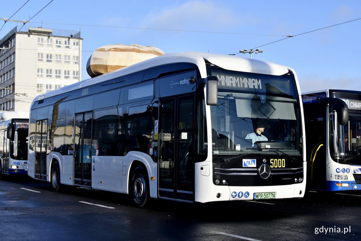 Połączyć przyjemne z pożytecznym, czyli tłusty czwartek i pączki dla mieszkańców razem z… promocją elektromobilności. Po świątecznej czapce przyszła kolej na wielkiego pączka na dachu elektrobusa – tym razem marki Mercedes. Na gdynian korzystających z komunikacji miejskiej czekała w czwartkowy poranek miła niespodzianka.