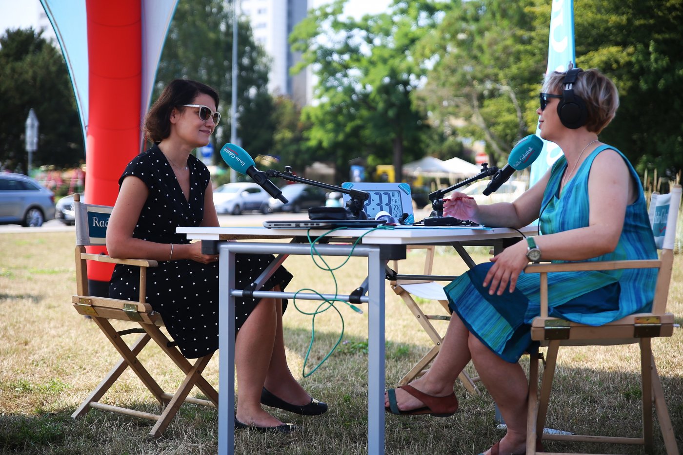 Na skwerze Kościuszki stanął turkusowy namiot, na trawniku turkusowe leżaki. Turkusowe mikrofony poszły w ruch. Dziś Muzyczne Lato Radia Gdańsk gości w Gdyni. W eter płyną, miksowane z wakacyjną muzyką, informacje o gdyńskich atrakcjach tego lata. - Nie wyobrażam sobie, że moglibyśmy nie być w Gdyni w ramach naszego letniego cyklu. W każdy piątek ruszamy do innego pomorskiego miasta, a Gdynia jest bardzo bliska naszemu sercu. To jest wyjątkowe miejsce, bo albo można się prażyć na plaży, albo można dotknąć trochę historii, także tej modernistycznej, związanej z zabudowaniem. Ale przede wszystkim poczuć trochę klimat i morza i filmu. Miasta, które dba nie tylko o swoich mieszkańców, bo porozmawiamy o Kamiennej Górze, która przeszła przecież cudowną rewitalizację. Ale z drugiej strony porozmawiamy też o Gdyńskim Festiwalu Filmowym, z racji pandemii odłożonym na grudzień, ale jednak się odbywającym – mówi ubrana w turkusową sukienkę dziennikarka Radia Gdańsk Magda Szpiner i wita w swym mobilnym studiu pierwszą gościnię – Katarzynę Gruszecką-Spychałę, wiceprezydent Gdyni ds. gospodarki. – Witam Panią bardzo serdecznie w tych cudnych okolicznościach, bo baliśmy się, że jak na patelni się tutaj znajdziemy na skwerze Kościuszki, a tym czasem czuć cudowną bryzę od morza. O czym rozmawiały obie panie na antenie przez blisko 10 minut?- Rozmawialiśmy o tym jak bardzo tętni życiem Gdynia latem, pomimo tego że mamy epidemię, oczywiście tym życiem bezpiecznym i nie narażającym nas na zachorowanie oraz o tym, że nawet w najtrudniejszych warunkach pozostajemy miastem kultury. Rozmawialiśmy o pokazach Aerobaltic, których nie udało nam się zorganizować w tradycyjnej formule, ale nie przeszkodziło to w zorganizowaniu ich online. Rozmawialiśmy także o czterech czynnych teatrach, a także o niezwykłym festiwalu teatralnym Pociąg do Miasta, którego dwa dni jeszcze przed nami. O koncertach na placu Grunwaldzkim, a także o Blues Clubie w Kolibkach, o kinie na plaży w Orłowie oraz o kinie familijnym, które rusza jutro i oferuje przyjemności dla młodszych i starszych. Wreszcie rozmawialiśmy o naszym popisowym programie, jakim jest „Gdynia o 10” pod hasłem „Bądź turystą we własnym mieście”, a zatem o krajoznawczo-historycznych spacerach, które rozpoczynają się w każdą sobotę o 10 i pozwalają nie tylko zrelaksować się, tak jak to przypisane jest turystom, ale także na nowo poznać swoje miasto - opowiada Katarzyna Gruszecka-Spychała, wiceprezydent ds. gospodarki. Między rozmowami w mobilnym studiu dziennikarka pytała przechadzających się obok turystów, jak spędzają czas w Gdyni. Turyści z Warszawy właśnie zeszli z plaży i wybierali się do Akwarium Gdyńskiego, gdyż wszyscy im je polecali. A turyści z Piekar Śląskich, którzy spędzają urlop w Ostrowie na otwartym morzu i przypłynęli do Gdyni statkiem z Władysławowa, zamierzali zwiedzić dziś Błyskawicę i również Akwarium. Kolejna rozmówczyni - Maja Wagner, naczelnik Wydziału Kultury Urzędu Miasta Gdyni, opowiedziała o Kamiennej Górze i jej parku, a także o odbywających się tam koncertach. - To miejsce po modernizacji, które jest taką oazą spokoju w samym centrum miasta. Górny taras jest dedykowany do spokojnego odpoczywania w duchu modnego ostatnio "slow". Nie ma tam hałasu, nie ma szumu, nie ma zgiełku miasta, mimo że jesteśmy w centrum. Cały czas jesteśmy w procesie modernizacji i docelowo będzie jeszcze wspanialej niż jest teraz, choć już jest przepięknie. Natomiast tą rzeczą, którą mogą się już od jakiegoś czasu cieszyć mieszkańcy jest wyremontowana scena z profesjonalnym nagłośnieniem, która jest aktywnie wykorzystywana na działania, które jako miasto proponujemy w tej przestrzeni. O tak interesującym reporterkę Festiwalu Filmowym oraz innych atrakcjach Gdyńskiego Centrum Filmowego, opowiedziała jej rzeczniczka GCF Magdalena Jacoń. Magda Szpiner gościła też Kaję Długosz z Muzeum Emigracji i Alicję Harackiewicz, dyrektorkę Centrum Nauki Eksperyment. Muzyczne Lato z Radiem Gdańsk to wakacyjna, popularna audycja realizowana przez podróżujących po Pomorzu reporterów, którzy przybliżają słuchaczom najciekawsze atrakcje regionu, przeplatając informacje największymi hitami muzycznymi lata. Galeria zdjęć Pobierz galerię Muzyczne Lato z Radiem Gdańsk w Gdyni. Fot. Przemysław Kozłowski Pobierz zdjęcie Muzyczne Lato z Radiem Gdańsk w Gdyni. Fot. Przemysław Kozłowski Pobierz zdjęcie Muzyczne Lato z Radiem Gdańsk w Gdyni. Fot. Przemysław Kozłowski Pobierz zdjęcie Muzyczne Lato z Radiem Gdańsk w Gdyni. N/z Katarzyna Gruszecka-Spychała, wiceprezydent Gdyni ds. gospodarki i Magda Szpiner z radia Gdańsk. Fot. Przemysław Kozłowski Pobierz zdjęcie Muzyczne Lato z Radiem Gdańsk w Gdyni. Fot. Przemysław Kozłowski Pobierz zdjęcie Muzyczne Lato z Radiem Gdańsk w Gdyni. Fot. Przemysław Kozłowski Pobierz zdjęcie Warunki pobierania Wszelkie prawa do zdjęć lub grafik prezentowanych w ramach portalu, należą do Prowadzącego portal lub do podmiotów z nim współpracujących i podlegają ochronie prawnej. Prowadzący portal zezwala na kopiowanie i przedstawianie utworów jedynie w celach niekomercyjnych oraz pod warunkiem zachowania go w oryginalnej postaci i zachowaniem kontekstu tematu, do którego zostało wykorzystaneprzez redakcję gdynia.pl. Opublikowane materiały powinny zawsze zawierać źródło, czyli adres strony www.gdynia.pl. Na publikowanie utworów w innych celach wymagana jest zgoda właściciela strony czyli Prowadzącego portal. Opublikowano: 07.08.2020 16:20 Autor: Przemysław Kozłowski (p.kozlowski@gdynia.pl) Zmodyfikowano: 07.08.2020 16:23 Zmodyfikował: Agnieszka Janowicz