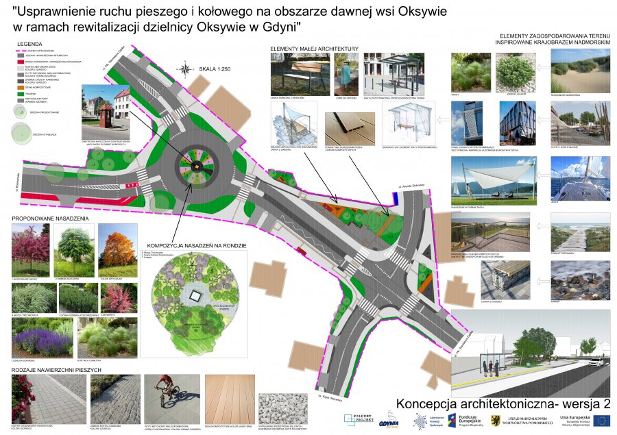 To bardzo ważne skrzyżowanie nie tylko dla oksywian. Tędy prowadzą drogi do jednostek wojskowych, portu i stoczni Marynarki Wojennej, szkoły, czy hospicjów, a także w kierunku Osady Rybackiej, która zyskuje na popularności wśród turystów. Koncepcja nowego układu drogowego, a także dwie propozycje aranżacji otaczającego terenu, uwzględniają wszystkie uwarunkowania, które charakteryzują to miejsce jako drogowe skrzyżowanie, węzeł przesiadkowy, a także codzienną trasę pieszych i rowerzystów.