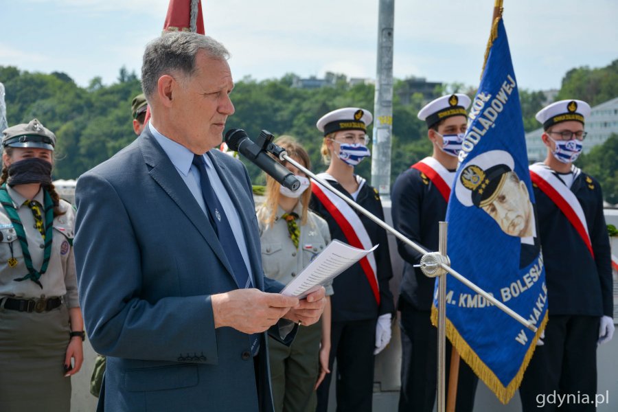 Legendarny dowódca okrętów podwodnych z czasów II wojny światowej i kapitan drugiego „Zawiszy Czarnego” komandor Bolesław Romanowski oraz Henryk Fronczak organizator żeglarstwa w okupowanej Warszawie i powojenny działacz Polskiego Związku Żeglarskiego zostali uhonorowani pamiątkowymi tablicami w gdyńskiej Alei Żeglarstwa Polskiego. Uroczystości towarzyszyły obchody 55-lecia powstania Pomorskiego Związku Żeglarskiego. Oficjalnie zainaugurowano równie tegoroczny sezon żeglarski. W samo południe, na południowym falochronie gdyńskiej mariny, zebrali się miłośnicy żeglarstwa, rodzina i przyjaciele komandora Bolesława Romanowskiego i Henryka Fronczaka, a także przedstawiciele miasta, Marynarki Wojennej RP i Polskiego Związku Żeglarskiego.- Ta aleja ma na celu przypominać o najważniejszych postaciach, uczyć wszystkich – dlatego przedstawiamy rys historyczny o każdej osobie – i oddać hołd wszystkim osobom. Te osoby, którym dzisiaj będziemy oddawać hołd, są bardzo ważne dla historii żeglarstwa, historii Gdyni związanej z działaniami, które bezpośrednio dotyczyły czy to Marynarki Wojennej, czy Yacht Klubu – mówiła podczas ceremonii Joanna Zielińska, przewodnicząca Rady Miasta Gdyni. Odsłonięcie tablicy, połączone było z otwarciem tegorocznego pomorskiego sezonu żeglarskiego 2020 oraz 55. rocznicą powstania Pomorskiego Związku Żeglarstwa. Uroczystość miała wyjątkową oprawę. Wartę honorową przy tablicy upamiętniającej komandora pełniła 7. Gdańska Integracyjna Drużyna Harcerska „Keja” im. Bolesława Romanowskiego oraz reprezentacja Zespołu Szkół Żeglugi Śródlądowej w Nakle nad Notecią, która także nosi jego imię. Obok mariny pojawił się żaglowiec „Zawisza Czarny”, a wstęp muzyczny zapewnił męski chór szantowy o tym samym imieniu.Uroczystość zakończyło symboliczne podniesienie bandery i wypowiedzenie tradycyjnej formułyrozpoczynającej pomorski sezon żeglarski 2020.- Cieszy fakt, że jest z nami tak wielu żeglarzy. Widzimy wiele jachtów, które są gotowe do wypłynięcia lub które będąc za moimi plecami, startują już w regatach. Mimo trudności z rozpoczęciem tego sezonu, opóźnień, a także tego, że długo czekaliśmy aż kłopoty, które natura nam spowodowała, uciekną na bok – udało nam się doprowadzić do tego, że aktywności żeglarskie powróciły – mówił Tomasz Chamera, prezes Polskiego Związku Żeglarskiego.Bolesław Romanowski, ur. 21 marca 1910 roku, zmarł 12 sierpnia 1968 roku. Komandor Marynarki Wojennej, wychowawca młodzieży i działacz żeglarski. Podczas II wojny światowej służył na okrętach podwodnych, „Wilk”, „Jastrząb” i „Dzik”. Po wojnie represjonowany. W 1957 roku jednogłośnie wybrany przewodniczącym nowopowstałego Okręgu Gdańskiego Polskiego Związku Żeglarskiego. W 1961 roku został pierwszym kapitanem harcerskiego żaglowca „Zawisza Czarny”, drugiej jednostki o tym imieniu. Należał do Yacht Klubu Polski Gdynia i Jacht Klubu Marynarki Wojennej „Kotwica”, którego był współzałożycielem. Henryk Fronczak, ur. 16 sierpnia 1898 roku, zmarł 4 kwietnia 1981 – olimpijczyk, żołnierz Armii Krajowej i wybitny działacz żeglarski. W pierwszej połowie lat 20. uprawiał wioślarstwo i był uczestnikiem Igrzysk Olimpijskich w Paryżu w 1924 roku. Później poświęcił się żeglarstwu, pływając m.in. z generałem Mariuszem Zaruskim. Podczas II wojny światowej brał udział w konspiracji, m.in w kontrwywiadzie Komendy Głównej ZWZ-AK, walczył w Powstaniu Warszawskim oraz prowadził podziemną działalność żeglarską. Od 1945 roku pracował organizacyjnie, m.in. jako wiceprezes Polskiego Związku Żeglarskiego i członek Yacht Klubu Polski. Aleja Żeglarstwa Polskiego powstała z inicjatywy Polskiego Związku Żeglarskiego, Pomorskiego Związku Żeglarskiego, miasta Gdyni i Urzędu Morskiego w Gdyni. Od 2012 roku odsłonięto w niej tablice Władysława Wagnera, Leonida Teligi, Teresy Remiszewskiej, Juliusza Sieradzkiego, Wojciecha Orszuloka, Michała Sumińskiego, Witolda Bublewskiego, Zdzisława Pieńkawy i Bolesława K. Kowalskiego, Ludomira Mączki, Kazimierza „Kuby” Jaworskiego, Dariusza Boguckiego, Zygfryda „Zygi” Perlickiego, Zbigniewa Puchalskiego i Tadeusza Siwca, Bolesława Mazurkiewicza, Aleksandra Bereśniewicza i Czesława Marchaja. Galeria zdjęć Pobierz galerię W Alei Żeglarstwa Polskiego odsłonięto tablice komandora Bolesława Romanowskiego i Henryka Fronczaka. Na zdjęciu - Joanna Zielińska, przewodnicząca Rady Miasta Gdyni // fot. Paweł Kukla Pobierz zdjęcie W Alei Żeglarstwa Polskiego odsłonięto tablice komandora Bolesława Romanowskiego i Henryka Fronczaka // fot. Paweł Kukla Pobierz zdjęcie W Alei Żeglarstwa Polskiego odsłonięto tablice komandora Bolesława Romanowskiego i Henryka Fronczaka // fot. Paweł Kukla Pobierz zdjęcie W Alei Żeglarstwa Polskiego odsłonięto tablice komandora Bolesława Romanowskiego i Henryka Fronczaka // fot. Paweł Kukla Pobierz zdjęcie W Alei Żeglarstwa Polskiego odsłonięto tablice komandora Bolesława Romanowskiego i Henryka Fronczaka // fot. Paweł Kukla Pobierz zdjęcie W Alei Żeglarstwa Polskiego odsłonięto tablice komandora Bolesława Romanowskiego i Henryka Fronczaka // fot. Paweł Kukla Pobierz zdjęcie W Alei Żeglarstwa Polskiego odsłonięto tablice komandora Bolesława Romanowskiego i Henryka Fronczaka // fot. Paweł Kukla Pobierz zdjęcie W Alei Żeglarstwa Polskiego odsłonięto tablice komandora Bolesława Romanowskiego i Henryka Fronczaka // fot. Paweł Kukla Pobierz zdjęcie W Alei Żeglarstwa Polskiego odsłonięto tablice komandora Bolesława Romanowskiego i Henryka Fronczaka // fot. Paweł Kukla Pobierz zdjęcie W Alei Żeglarstwa Polskiego odsłonięto tablice komandora Bolesława Romanowskiego i Henryka Fronczaka // fot. Paweł Kukla Pobierz zdjęcie W Alei Żeglarstwa Polskiego odsłonięto tabl