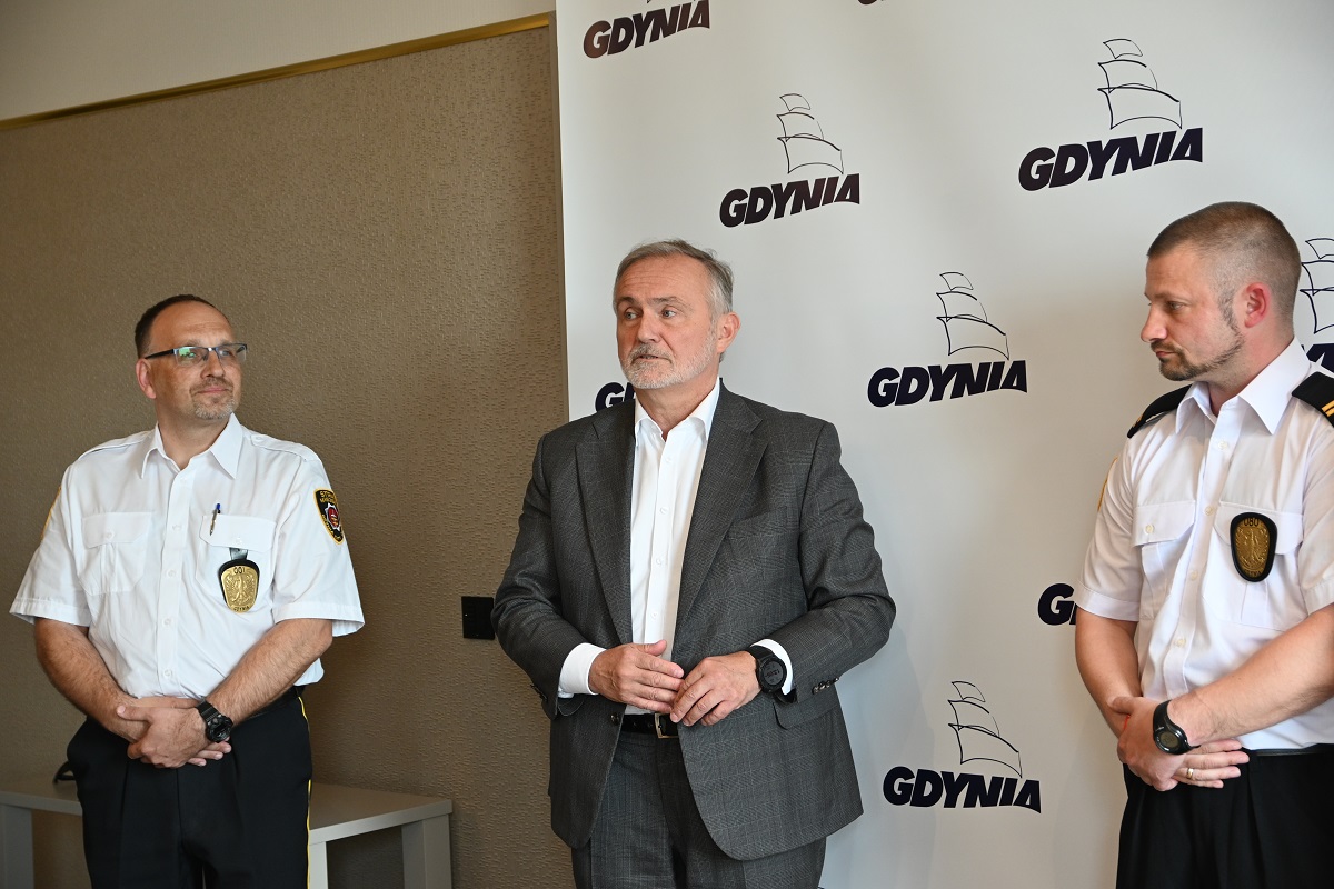 Sylwia Bonio-Kwiecień, Mirosław Szczygłowski, Rafał Tiszer oraz Paweł Połujan – to funkcjonariusze Straży Miejskiej w Gdyni, którzy w środę, 24 maja otrzymali podziękowania i nagrodę z rąk prezydenta Gdyni Wojciecha Szczurka. Funkcjonariusze wykazali się niezwykłym opanowaniem, refleksem i żelaznymi nerwami w dwóch skrajnie trudnych przypadkach związanych z ratowaniem życia, które kilka tygodni temu wydarzyły się w Gdyni. W środę, 24 maja w Urzędzie Miasta Gdyni odbyło się uroczyste spotkanie, podczas którego prezydent Gdyni Wojciech Szczurek, dyrektor Urzędu Miasta Rafał Klajnert oraz komendant Straży Miejskiej Andrzej Bień złożyli podziękowania i wręczyli nagrody czworgu strażnikom miejskim. Prezydent Gdyni, Wojciech Szczurek, wręczył czworgu strażnikom miejskim nagrody. Fot. Zygmunt Gołąb – Praca strażnika miejskiego to praca, która wymaga rzetelności, dużego przygotowania, wymaga szczególnego wyszkolenia i potem rozliczenia z tego wyszkolenia w postaci egzaminu, ale też praca, w której trzeba być przygotowanym na sytuacje bardzo często zaskakujące. Bardzo dziękuję obecnym tu strażnikom za podjęcia działań w sytuacjach rzeczywiście mocno zaskakujących, ale ono najlepiej obrazuje poziom przygotowania i motywację do pracy w Straży Miejskiej – mówił Wojciech Szczurek, prezydent Gdyni. – Bardzo dziękuję za to zaangażowanie, za błyskawiczną reakcję i bardzo precyzyjne działania. Rzeczywiście sposób zareagowania to nie tylko troska o bezpieczeństwo, ale też budowanie przekonania, że jak dzieją się nadzwyczajne rzeczy w naszym mieście, to są służby i są ludzie, którzy znakomicie sobie z tymi sytuacjami radzą. Jestem bardzo szczęśliwy, że możemy dziś podziękować młodym strażnikom, bardziej doświadczonym strażnikom, którzy spędzili kawał życia w straży miejskiej za tę postawę, za tą służbę. Niech ona też będzie wyrazem podziękowania dla wszystkich funkcjonariuszy straży za codzienną pracę – podsumował i wręczył nagrody finansowe. Otrzymali je Sylwia Bonio-Kwiecień, Mirosław Szczygłowski, Rafał Tiszer oraz Paweł Połujan z I Referatu Dzielnicowego Straży Miejskiej w Gdyni. Dziecko przestało oddychać O tej sprawie pisaliśmy na naszym portalu kilka tygodni temu. Trudno orzec, co by się wydarzyło, gdyby nie szybka pomoc strażników miejskich. – Z kolegą zjeżdżaliśmy z dyżuru na przerwę, na wysokości ulicy Unruga, na wysokości stacji benzynowej, zobaczyliśmy zbiegowisko ludzi – relacjonował to wydarzenie dla portalu gdynia.pl Rafał Tiszer. – Podjechaliśmy na miejsce, zatrzymała nas kobieta, która powiedziała, że 2,5 - letni chłopczyk nie oddycha i ma zatrzymane krążenie. Z kolegą odebraliśmy tego chłopca od prababci, ułożyliśmy na ziemi, udrożniliśmy mu drogi oddechowe i rozpoczęliśmy resuscytację – dodaje. Przy 12. uciśnięciu klatki piersiowej dziecku wrócił oddech i krążenie. – Kolega, który ze mną był, Paweł Połujan, został przy dziecku, by pilnować jego funkcji życiowych, a ja udałem się do radiowozu, by wezwać karetkę pogotowia. To poskutkowało tym, że koledzy, którzy byli w patrolu usłyszeli, że potrzebujemy pomocy, a ponieważ na pokładzie mieli defibrylator, na sygnale ze śródmieścia przyjechali do nas, na Unruga – mówi Tiszer. Na miejscu okazało się, że defibrylator nie jest na szczęście już potrzebny. Zaraz za patrolem straży na miejsce dotarła wezwana przez Rafała Tiszera karetka pogotowia. Dziecko trafiło pod opiekę personelu medycznego, który przeprowadził dalsze czynności i zawiózł kilkulatka do szpitala. Gdy na drugi dzień strażnik zadzwonił do prababci chłopca, dowiedział się, że dziecko zostało wypisane do domu i nic już nie zagraża jego życiu. Rafał Tiszer oraz Paweł Połujan z I Referatu Straży Miejskiej w Gdyni. Fot. Zygmunt Gołąb Konie na gigancie Kolejną niecodzienną interwencją Straży Miejskiej była ta, podczas której należało złapać i zabezpieczyć dwa spłoszone konie, które uciekły z zagrody. O przebiegu akcji opowiedziała nam Sylwia Bonio-Kwiecień, która wraz z Mirosławem Szczygłowskim wzięła udział w tej zaskakującej, ale i niebezpiecznej interwencji. – Po otrzymaniu zgłoszenia od dyżurnych zastaliśmy na miejscu zastaliśmy dwa konie, biegające po torowisku i pobliskich drogach. Były spłoszone i niespokojne – mówi Sylwia Bonio-Kwiecień. Sylwia Bonio-Kwiecień oraz Mirosław Szczygłowski z I Referatu Dzielnicowego Straży Miejskiej. Fot. Zygmunt Gołąb Miejsce, w którym znajdowały się koniec, to teren, na którym realizowany jest remont torowiska. Znajduje się tam dużo ciężkiego sprzętu, ponadto odbywa się ruch pociągów. Zaniepokojone konie w stresującym środowisku to wyzwanie, któremy musieli sprostać strażnicy miejscy. – Razem z pracownikami udało nam się te konie zagonić na teren jednej z pobliskich posesji, której właściciele, bardzo mili państwo, zgodzili się zabezpieczyć zwierzęta do momentu odbioru przez właściciela – podsumowuje Sylwia Bonio-Kwiecień. Zapamiętaj numer: 986 Dzięki czworgu strażnikom i ich umiejętnościom udało się uratować kilka istnień. Przyłączamy się do podziękowań dla strażników i przypominamy, że można się z nimi skontaktować pod numerem 986. Warto zapamiętać te cyfry, bo nigdy nie wiadomo, co przyniesie życie i kiedy przyjdzie nam z nich skorzystać. Opublikowano: 24.05.2023 15:20 Autor: Zygmunt Gołąb (z.golab@gdynia.pl) Zmodyfikowano: 25.05.2023 11:12 Zmodyfikował: Małgorzata Omachel - Kwidzińska