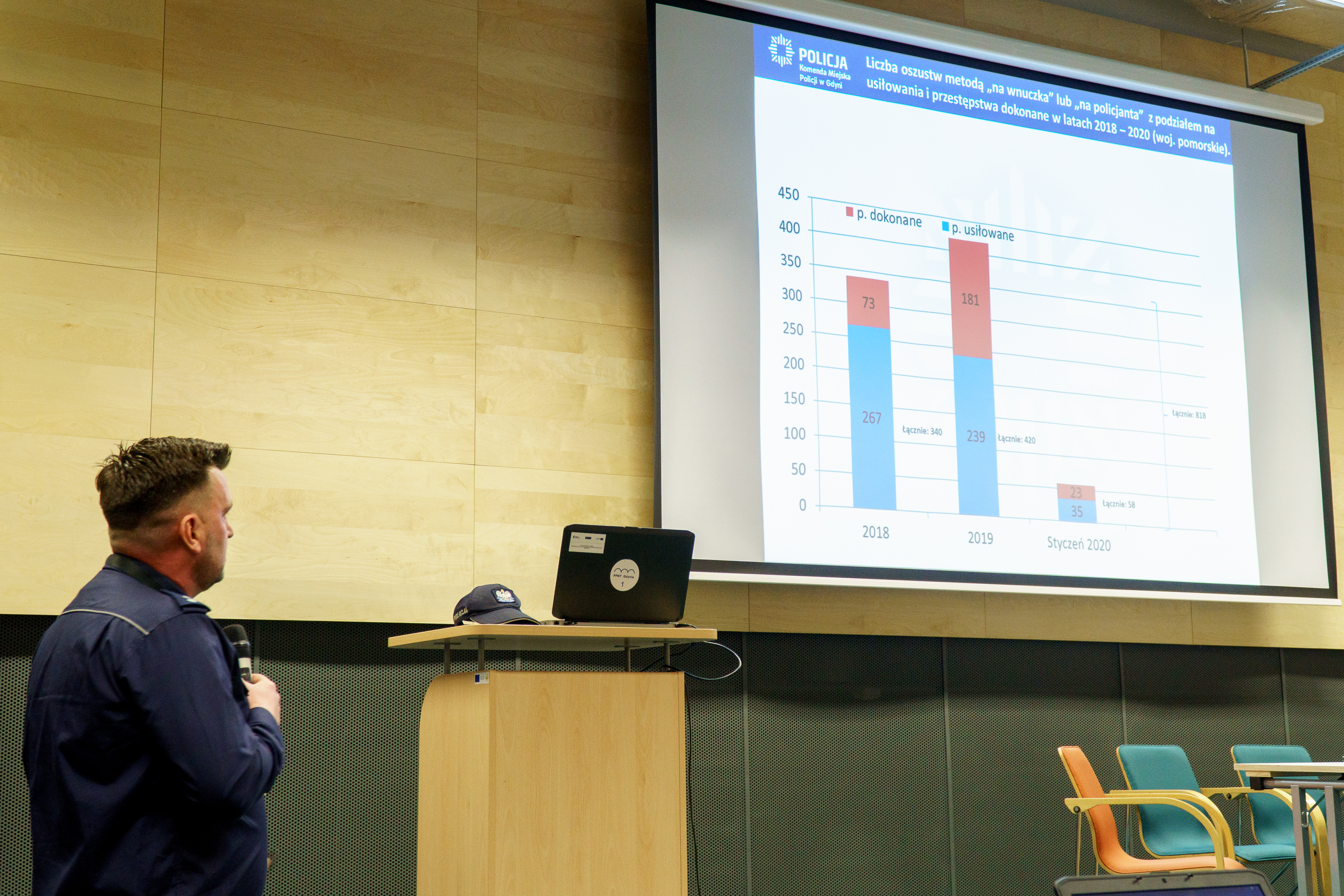 Edukacja, informacja, świadomość i czujność każdego z nas są kluczowe w skutecznym ograniczaniu wyłudzaniu pieniędzy metodą „na wnuczka” czy „na policjanta”. Rolę działań prewencyjnych, w które może włączyć się każdy z nas, podkreślano podczas debaty społecznej, która odbyła się w czwartek w Pomorskim Parku-Naukowo-Technologicznym Gdynia.- Z przestępstwami jest tak, że gdy czytamy o nich w gazetach czy oglądamy w filmach myślimy, że dzieją się gdzieś obok nas. Nie do końca przyjmujemy do siebie, że możemy stać się ich ofiarą. Tak jest w przypadku przestępstw „na wnuczka” czy „na policjanta” – mówił na początku debaty Wojciech Szczurek, prezydent Gdyni. - Wyłudzenia to zjawisko realne. Fakt, że nie dotyka „gdzieś” i „kogoś”, ale również gdynian musi skłaniać do podejmowania działań zmierzających do tego, byśmy wszyscy wyczulili się na tego rodzaju przestępstwa. Byśmy przede wszystkim nauczyli się bronić i reagować. Nie jest to przesadnie skomplikowane: wymaga pewnego krytycznego stosunku do osób, które nawiązują z nami kontakt oraz weryfikacji często bardzo wiarygodnie brzmiących opowieści kierowanych do nas drogą telefoniczną. Oszuści bazują na tym, co jest piękną cechą człowieka: wrażliwości, opiekuńczości, empatii i chęci pomocy najbliższym. Gdyńska Policja działa znakomicie i skutecznie. Ale bardzo często nawet w przypadku wykrycia sprawcy, nie udaje się odzyskać utraconych środków. Statystyki pokazują, że ofiary takich przestępstw tracą kilkadziesiąt tysięcy złotych – często są to oszczędności całego życia. Mówienie, nauczenie się mechanizmu obronnego, to najlepsza droga. Myślę, że gdyńscy seniorzy, którzy są grupą niezwykle aktywną i świadomą chętnie podejmą to wyzwanie: byśmy działali razem i skuteczne się bronili. Życzę, by każdy nas wychodząc z tej sali czuł, że ma w ręku ważne narzędzie: wiedzę, jak sobie radzić z takimi sytuacjami. Tej wiedzy dostarczyli uczestnikom debaty policjanci oraz psychologowie. Debata społeczna, zorganizowana przez Komendę Miejską Policji w Gdyni we współpracy z gdyńskim samorządem zgromadziła w Pomorskim Parku Naukowo-Technologicznym Gdynia około 150 osób. Byli seniorzy, przedstawiciele służb mundurowych, pracownicy miejskich instytucji, banków, ale też uczniowie klasy mundurowej V LO w Gdyni. Wydarzenie odbyło się ramach prowadzonej w Gdyni kampanii społecznej „STOP!” mającej przeciwdziałać zorganizowanej przestępczości wobec seniorów.- Odnotowujemy większą liczbę usiłowań dokonania oszustwa, czyli można mówić, że jest w nas większa świadomość zagrożenia wyłudzeniem – zauważa mł. insp. Sławomir Pachura, komendant miejski policji w Gdyni. – Wciąż jednak dochodzi do przestępstw, więc w naturalny sposób zastanawiamy się dlaczego tak się dzieje mimo akcji informacyjnych. Podejmujemy działania zmierzające do ścigania sprawców: operacyjno-rozpoznawcze, procesowe. Ale nie ma wątpliwości, że najwięcej mamy do zrobienia w obszarze prewencji. Kluczowe jest zapobieganie, informowanie, edukowanie mieszkańców.Dlatego ważne by wiedzieć, jak manipulują oszuści. O tych metodach mówiły Katarzyna Zasowska psychologerontolog, specjalista w dziedzinie senioralnej oraz Klaudia Głodowska, specjalistka do spraw interwencji środowiskowej, mgr pielęgniarstwa. Wymieniły m.in. wykorzystanie naturalnej dla nas chęci pomocy, powołanie się na autorytet instytucji, która ma nam zapewnić bezpieczeństwo, czyli policji, stworzenie atmosfery tajemnicy, ale też sprawienie by potencjalna ofiara poczuła, że jest pod dobrą opieką.- Mężczyzna, który do mnie zadzwonił, mówił „my znaleźliśmy się w sytuacji…” czyli wywoływał poczucie, że jesteśmy w tym razem. Prosił o współpracę i pomoc w ujęciu oszustów, zobowiązywał mnie do zachowania tej tajnej misji w tajemnicy. Za jej złamanie miała mi grozić odpowiedzialność karna – mówił podczas debaty pan Tomasz, jedna z trzech osób, które zdecydowały się opowiedzieć o tym, jak zwrócili się do nich oszuści. Przyznał, że miał wątpliwości by o tym opowiadać, ale uznał, że sytuacja staje się tak groźna, że trzeba mówić i ostrzegać. – Z jednej strony poczułem ulgę, że ktoś troszczy się o moje pieniądze zagrożone w banku, z drugiej miałem poczucie obowiązku, które każdy z nas ma na hasło „policja”. Dziś wiem, że było przynajmniej kilka momentów, w których powinna mi się zapalić ostrzegawcza lampka. Ale nie zapaliła…Kom. Rafał Żaguń, zastępca naczelnika Wydziału Kryminalnego KMP w Gdyni zauważył, że to właśnie metoda „na policjanta” jest dziś tą, którą najczęściej posługują się oszuści wyłudzający pieniądze. Przestępcy wiedzą, że policja wzbudza w społeczeństwie zaufanie i respekt i choć zmieniają swoje metody działania wykorzystując postać policjanta, kluczem do przestępstwa wciąż pozostaje rozmowa telefoniczna. Słowotok sprawcy jest tak intensywny, że ofiara nie może mu wejść w słowo. Sprawca kontroluje rozmowę od początku do końca, pokrzywdzony wykonuje w zasadzie wszystkie polecenia. Kom. Rafał Żaguń podsumowując swoje wystąpienie zwrócił się do seniorów: - Ze wszystkiego tego, co mówię chciałbym, żebyście zapamiętali państwo najważniejszą rzecz i przekazali wszystkim dookoła: policja nigdy nie informuje telefonicznie o prowadzonych sprawach, nigdy nie prosi o pieniądze czy kosztowności. Jeśli mamy jakiekolwiek wątpliwości – przerwijmy połączenie i z innego numeru zadzwońmy na policję. W Gdyni 2019 roku liczba oszustw metodą „na wnuczka” czy na „policjanta” wzrosła o 40 procent w porównaniu do roku 2018. Od 1 stycznia do 19 lutego 2020 roku popełniono w Gdyni pięć oszustw oraz 20 usiłowań tego typu przestępstw. W wyniku dokonanych osz