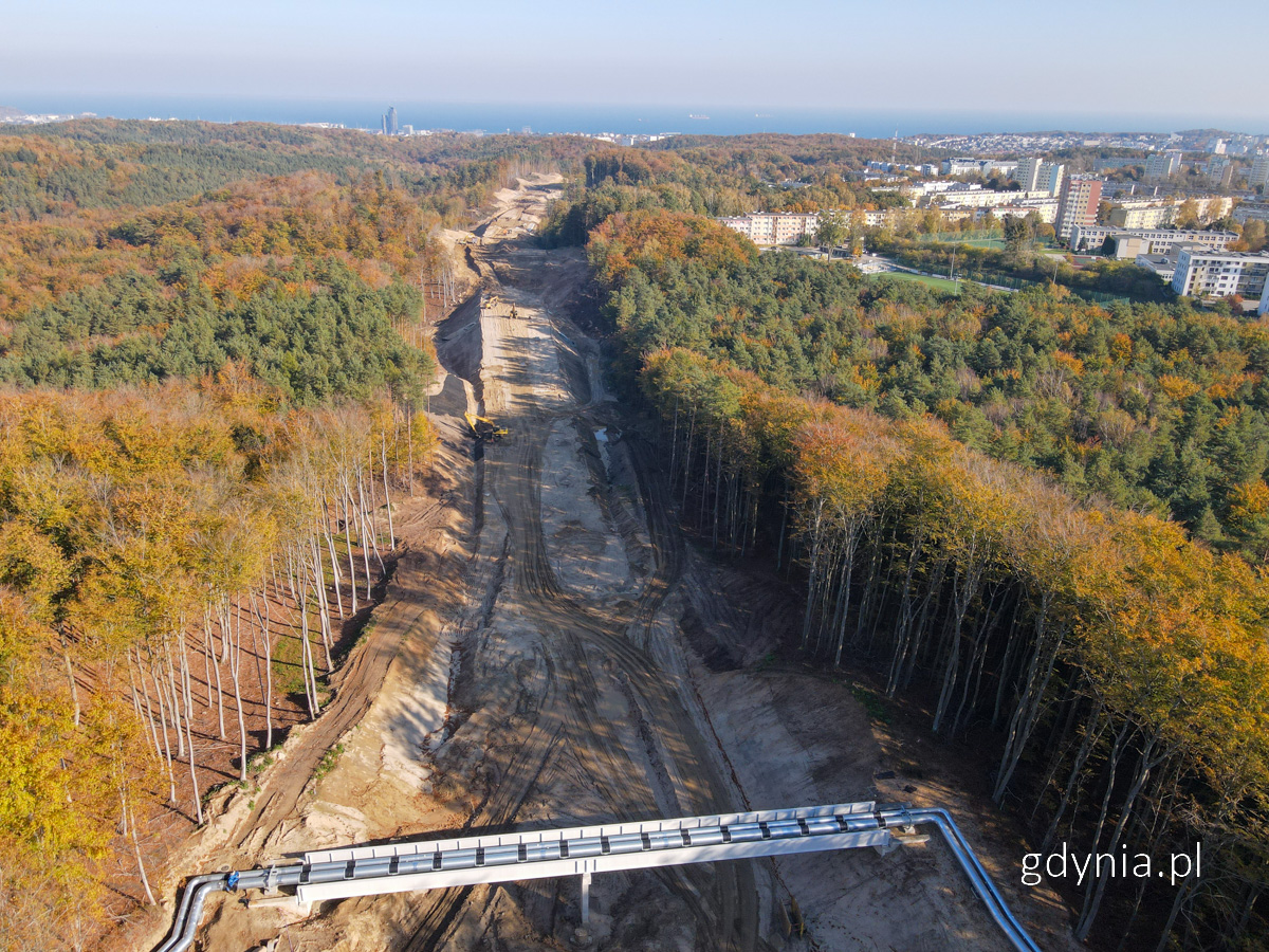 W piątek, 24 października ul. Witomińska zostanie otwarta dla ruchu. Intensywne prace na budowie Obwodnicy Witomina trwają. Wykonawca odtwarza chodnik i nawierzchnię asfaltową po robotach sanitarnych na ul. Witomińskiej. Na kilku odcinkach inwestycji prowadzone są roboty ziemne i sieciowe, realizowanych jest także pięć obiektów inżynierskich w tym wiadukt drogowy. Zgodnie z harmonogramem, otwarcie ulicy Witomińskiej dla wszystkich użytkowników ruchu drogowego nastąpi w piątek, 24 października. Prace obejmowały budowę kanalizacji deszczowej, w tym rowu krytego w poprzek ulicy – mówi Tomasz Gałązka, dyrektor zarządzający ds. inwestycji. – Kolejna zmiana organizacji ruchu będzie obejmowała ulicę Kielecką, o czym poinformujemy mieszkańców w najbliższym czasie. Budowa Obwodnicy Witomina (fot. Michał Sałata / gdynia.pl) Na terenie budowy obwodnicy Witomina w ostatnim czasie: zabetonowano fundament, a obecnie trwa przygotowywanie do betonowania przyczółka kładki dla pieszych na wysokości ulicy Sosnowej, na przejściach dla zwierząt wykonano parasole ochronne, nasypy oraz zabetonowano oczepy, na wiadukcie drogowym nad ul. Witomińską trwa układanie papy oraz przygotowanie do wykonania kap chodnikowych, kontynuowane są także zasypki mostowe podpór i uciąglanie nasypów drogowych, na odcinkach pomiędzy przejściami dla zwierząt oraz ul. Witomińską trwają roboty ziemne, w ramach budowy sieci ciepłowniczej trwa wykonywanie przyłącza CO, podpór pod magistralą i izolacji na połączeniach, na ulicy Kieleckiej trwa przełączenie wykonanych sieci teletechnicznych i sieci gazowej, w zakresie kanalizacji deszczowej wykonano rów kryty na ul. Witomińskiej i kanalizację deszczową w poprzek tej ulicy, zrealizowano także wpusty i przykanaliki po lewej stronie projektowej ul. Chwarznieńskiej, gdzie kontynuowane są roboty ziemne, PEWIK Gdynia założył doszczelniacze na sieć wodociągową w ul. Witomińskiej, zakończono usuwanie kolizji energetycznej wzdłuż ulicy Chwarznieńskiej i Kieleckiej. Plan orientacyjny Obwodnicy Witomina (mat. WI UM Gdyni) W najbliższym czasie planowane są prace: kładka Sosnowa – podpora P1 – zabetonowanie korpusu, przejścia dla zwierząt – przygotowanie terenu pod obiektami do wykonania kanalizacji deszczowej, zbiorników rozsączających oraz wykonywanie dalszych robót ziemnych i nawierzchniowych, wiadukt drogowy Witomińska – wykonywanie kap chodnikowych kontynuacja zasypek mostowych, kontynuowanie nasypów drogowych, wykonywanie robót ziemnych na odcinku przejść dla zwierząt oraz do ul. Witomińskiej, pomiędzy ulicami Witomińską i Kielecką oraz na odcinku km 0+500 – 0+630, kontynuacja robót ziemnych z lewej strony projektowej ulicy Chwarznieńskiej, wykonanie warstwy mrozoochronnej, przebudowa sieci gazowej, magistrala CO - kontynuacja wykonania przyłącza. Obwodnica odciąży Witomino z ruchu tranzytowego, zmniejszy korki, poprawi bezpieczeństwo i jakość powietrza, a także skróci czas przejazdu w kierunku centrum miasta. Droga będzie się rozpoczynać w okolicach pętli autobusowej przy ul. Sosnowej – na odcinku leśnym ul. Chwarznieńskiej, a kończyć ok. 400 metrów od skrzyżowania ul. Witomińskiej z Kielecką. W ramach inwestycji powstanie obwodnica o długości 2585 metrów. Będą dwa pasy ruchu w obydwu kierunkach (w tym buspasy). Powstaną również obiekty inżynieryjne, w tym kładka pieszo-rowerowa w ciągu leśnym, kładka technologiczna, dwa przejścia dla zwierząt i wiadukt nad ul. Witomińską.Po oddaniu inwestycji do użytku na ulicy Chwarznieńskiej przywrócone zostaną dwa pasy dla wszystkich użytkowników ruchu drogowego, natomiast buspasy pojawią się na samej obwodnicy Witomina. W miejscu dotychczasowego zakończenia kontrapasa będzie skrzyżowanie ul. Chwarznieńskiej z obwodnicą dzielnicy Witomino. Pierwsze samochody mają pojechać obwodnicą Witomina na początku 2027 roku.Gdynia otrzymała dofinansowanie w wysokości: 8 106 665 zł na realizację tej inwestycji. To środki z rezerwy subwencji ogólnej, którą zarządza Ministerstwo Infrastruktury, przeznaczone na inwestycje, remonty, utrzymanie i zarządzanie drogami. Pochodzą z puli 220 mln zł na zwiększenie dofinansowania na projekty zgłaszane przez powiaty, miasta na prawach powiatu i województwa. Inwestycje realizuje konsorcjum Polimex Infrastruktura – Polimex Mostostal, rolę Inżyniera sprawuje Zarząd Dróg i Zieleni w Gdyni. Jej całościowy koszt to 78 549 311,39 zł.Budowa Obwodnicy Witomina (fot. Michał Sałata / gdynia.pl) Opublikowano: 23.10.2025 09:45 Autor: Dorota Matejczyk (dorota.matejczyk@gdynia.pl) Zmodyfikowano: 24.10.2025 08:20 Zmodyfikował: Aleksandra Dylejko