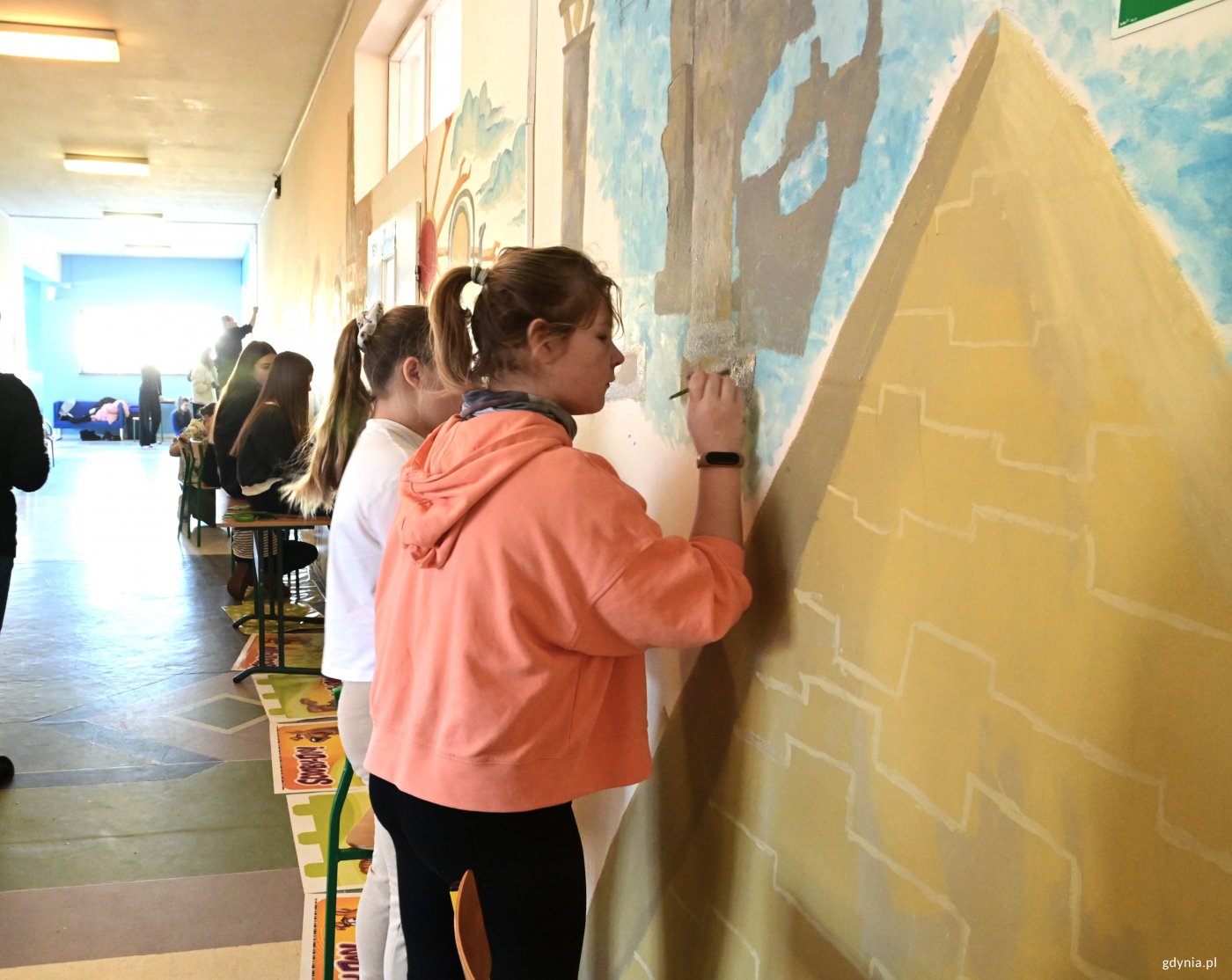 A w ferie pomalujemy szkołę – postanowiły dzieci i młodzież z Dąbrowy. Do współpracy zaprosiły nauczycielkę plastyki, która pomogła im przygotować projekt. Taki, jaki sobie wymarzyły: starożytny świat Egiptu. Wychodzi imponująco. – To ich własna inicjatywa, ja tylko wspieram, choć nie ukrywam, że zaimponowali mi moi uczniowie – cieszy się dyrektor Krzysztof Jankowski. Na Dąbrowie mieści się jedna z największych gdyńskich placówek edukacyjnych – Zespół Szkolno-Przedszkolny nr 3, w skład którego wchodzą: Przedszkole nr 55 i Szkoła Podstawowa nr 47. Budynek jest naprawdę imponujący, w samej szkole uczy się ponad tysiąc uczniów i uczennic. Łatwo się zgubić w labiryncie korytarzy. Uczniowie i uczennice sami wpadli na to, aby na poszczególnych piętrach stworzyć coś w stylu niezależnych światów – opowiada Krzysztof Jankowski, dyrektor. – Chcieli, aby obok sal historii powstał świat Egiptu, piętro niżej dżungla, tak aby każdy zapamiętał, gdzie ma lekcje i aby szkole było wyjątkowo. Mieliśmy akurat farby, więc pomyślałem: świetny pomysł! Skoro chcą działać artystycznie, to zapraszam. Po cichu wątpiłem, że będzie im się chciało przychodzić w ferie malować szkołę, dlatego byłem ogromnie zaskoczony, gdy zobaczyłem te tłumy na korytarzach. Od początku ferii w szkole praca wre. Młodzi artyści i młode artystki realizują na ścianach projekty własne, które powstały pod bacznym okiem uwielbianej w tej placówce nauczycielki plastyki Joanny Glaesmann. Z głośników słychać muzykę, na podłogach leżą folie, a młodzi ludzie w roboczych koszulkach pracują z pędzlami w dłoniach. Czasem kontrolnie wpada dyrektor, też chce coś pomalować, ale młodzi ludzie grzecznie go wypraszają, bo chcą, aby projekt do końca pozostał ich. Mamy wielu uzdolnionych plastycznie uczniów – podkreśla Joanna Glaesmann, która nadzoruje całość pod kątem artystycznym. – Jestem mile zaskoczona, że przyszło tak wiele osób, ale wygląda na to, że świetnie się bawią, bo wciąż przyprowadzają kolegów. Część egipska będzie niespodzianką dla społeczności szkolnej po feriach, na dole można już podziwiać naszą dżunglę. Przy projekcie pracuje około trzydziestu uczniów i uczennic najstarszych klas. Dla wspólnych działań odłożyli smartfony, konsole i mimo ferii przyszli do swojej szkoły, choć wcale nie musieli. Takie wspólne malowanie to niezła zabawa – zapewniają. – Nasza pani od plastyki jest najlepsza, bo pozwala nam nie tylko malować na lekcjach, ale też realizować projekty, które wymyślimy. A już po feriach „47” będzie najbardziej kolorową szkołą w mieście. Galeria zdjęć Pobierz galerię Dyrektor Krzysztof Jankowski wspiera pasje swoich uczniów i uczennic (fot. Aneta Marczak) Pobierz zdjęcie Uczennice SP nr 47 realizują swój projeky (fot. Aneta Marczak) Pobierz zdjęcie Uczennice SP nr 47 realizują swój projekt (fot. Aneta Marczak) Pobierz zdjęcie Uczniowie SP nr 47 realizują swój projekt (fot. Aneta Marczak) Pobierz zdjęcie Uczeń SP nr 47 realizujący swój projekt (fot. Aneta Marczak) Pobierz zdjęcie Warunki pobierania Wszelkie prawa do zdjęć lub grafik prezentowanych w ramach portalu, należą do Prowadzącego portal lub do podmiotów z nim współpracujących i podlegają ochronie prawnej. Prowadzący portal zezwala na kopiowanie i przedstawianie utworów jedynie w celach niekomercyjnych oraz pod warunkiem zachowania go w oryginalnej postaci i zachowaniem kontekstu tematu, do którego zostało wykorzystaneprzez redakcję gdynia.pl. Opublikowane materiały powinny zawsze zawierać źródło, czyli adres strony www.gdynia.pl. Na publikowanie utworów w innych celach wymagana jest zgoda właściciela strony czyli Prowadzącego portal. Opublikowano: 26.01.2026 10:03 Autor: Aneta Marczak (aneta.marczak@gdynia.pl) Zmodyfikowano: 26.01.2026 10:31 Zmodyfikował: Aneta Marczak