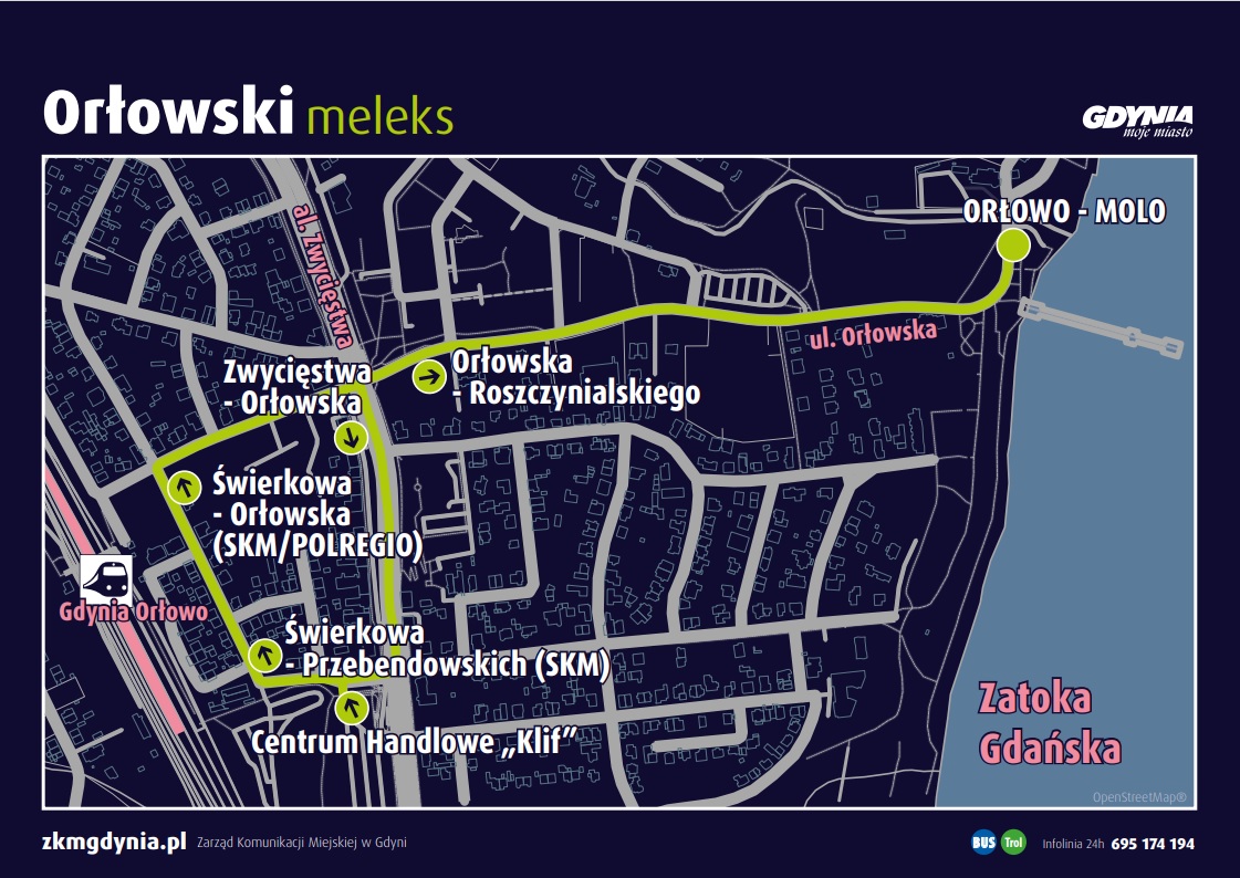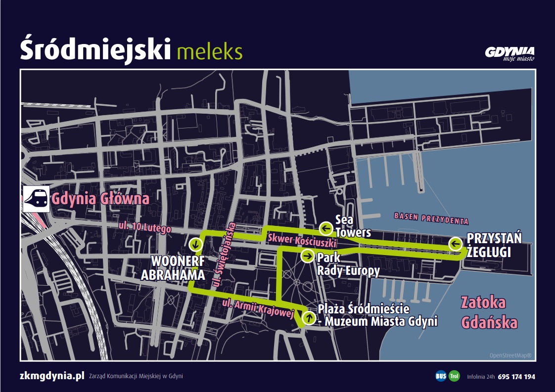 Ich obecność na ulicach świadczy o jednym – że w Gdyni mamy wakacje. W zeszłym roku podbiły serca gdynian oraz turystów nowym wyglądem. O czym mowa? O bezpłatnych meleksach, które już wkrótce zaczną kursować na dwóch atrakcyjnych trasach. Liczba pasażerów? Do 17 osób. Napęd? Elektryczny. Cena za bilet? Przejazdy bezpłatne. Gdyńskie meleksy, które w ubiegłym roku były letnim hitem, wracają na ulice naszego miasta od soboty, 22 czerwca. Stanowią element letniej oferty komunikacyjnej, przygotowanej przez Zarząd Komunikacji Miejskiej w Gdyni. W zeszłym roku cieszyły się ogromną popularnością, tym bardziej, że oprócz „Orłowskiego Meleksa”, znanego z poprzednich lat, ZKM uruchomił też drugą linię – „Śródmiejskiego Meleksa”. Te dwie linie już wkrótce rozpoczną funkcjonowanie w Gdyni. Linia Śródmiejski Meleks Linia ta funkcjonować będzie codziennie w godz. 10:00-20:00, z częstotliwością co 10-15 minut, na trasie: Abrahama Woonerf – Abrahama – Armii Krajowej – Plaża Śródmieście – Muzeum Miasta Gdyni – Park Rady Europy – Skwer Kościuszki – Przystań Żeglugi – Skwer Kościuszki – 10 Lutego – Abrahama. Trasa Śródmiejskiego Meleksa. Fot. mat. ZKM Linia Orłowski Meleks Linia ta funkcjonować będzie codziennie w godz. 10:00-20:00, z częstotliwością co 10-15 minut, na trasie: Orłowo Molo – Orłowska – al. Zwycięstwa – Przebendowskich – Orłowo CH Klif – Świerkowa – Orłowo SKM – Orłowska – Orłowo Molo. Trasa Orłowskiego Meleksa. Fot. mat. ZKM Do pobrania Orłowski meleks pdf753kb Śródmiejski meleks pdf2361kb Opublikowano: 21.06.2024 07:24 Autor: Zygmunt Gołąb (z.golab@gdynia.pl) Zmodyfikowano: 21.06.2024 16:08 Zmodyfikował: Karolina Szypelt