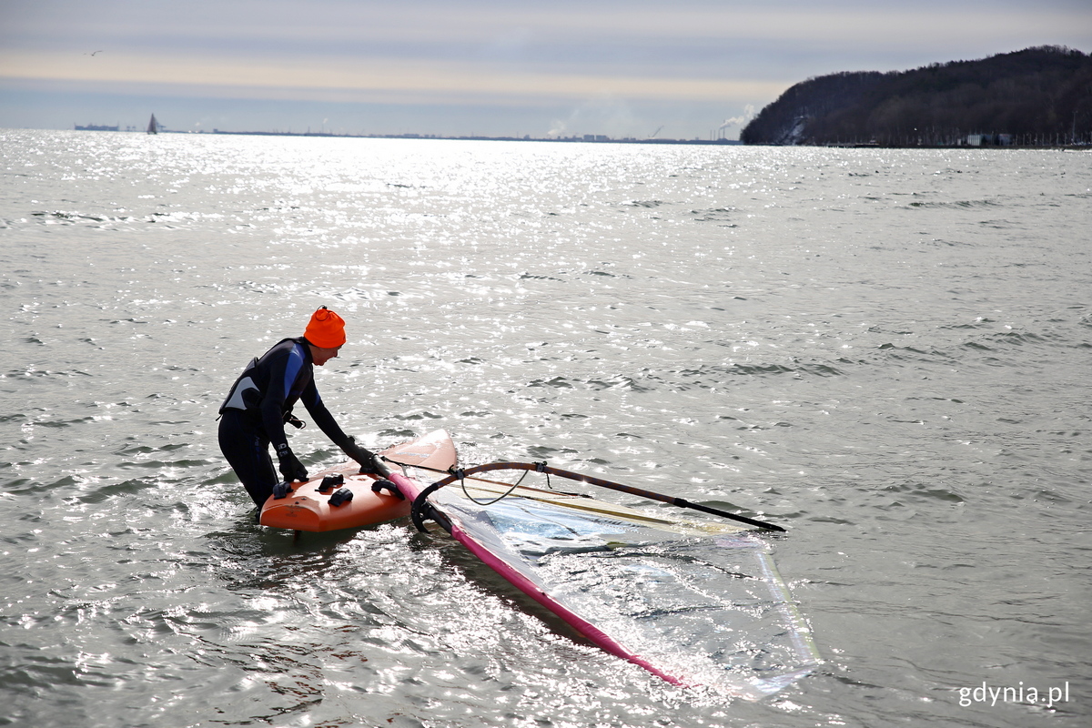 Gdyński „Małolat” czwartkowym wyjściem na wodę zbliżył się o krok do tego, aby zapisać się w historii światowego pływania na desce z żaglem. Przed 89-letnim Piotrem Dudkiem został trzeci rejs, który musi wykonać w kolejnym miesiącu, aby spełnić wymagania wpisu do księgi rekordów Guinnessa dla najstarszego windsurfera na świecie. Czwartkowa próba odbyła się w trudnych warunkach pogodowych. Wody Zatoki Gdańskiej pokryły fale, wiał wschodni wiatr dochodzący do 9 m/s, a temperatura wody wynosiła niecałe 4 stopnie Celsjusza. To nie przeszkodziło Piotrowi Dudkowi, który z zamiłowania jest również morsem, do postawienia drugiego z trzech kroków i przybliżenia się do oficjalnego potwierdzenia rekordu. Na pytanie, czy czuje się już rekordzistą, nasz bohater odpowiada tak: – Wszyscy wokoło mnie twierdzą, że rekord już mam, ale teraz muszę go zatwierdzić w księdze rekordów Guinnessa, stąd ta oficjalna procedura. Z tego powodu nie mogę już doczekać się kwietnia, kiedy ostatecznie potwierdzę fakt bycia najstarszym windsurferem na ziemi. Motywuje mnie do tego także fakt, że rodzina bardzo mocno mnie wspierała w zbieraniu środków finansowych na sfinalizowanie wpisu do księgi, gdyż to jest duży koszt. Nie mogę więc ich zawieść. Na zdjęciu Piotr Dudek podczas przygotowań // fot. Przemek KozłowskiZ drugiego kroku Piotr Dudek jednak nie jest do końca zadowolony. – Mimo że pływało się dobrze, to nie jestem zadowolony z siebie. Czuję, że stać mnie na więcej niż to, co dziś pokazałem, pływając na desce windsurfingowej po Zatoce Gdańskiej – powiedział po zejściu na ląd. Warunki panujące podczas drugiej próby nie należały do najłatwiejszych // fot. Przemysław KozłowskiZapytany o to, o czym myślał podczas walki z zimnymi wodami Zatoki Gdańskiej, uśmiecha się i przekornie odpowiada: – O czym myślałem, płynąc? Może to zabrzmi śmiesznie, ale tylko o tym, by nie spaść z deski do wody. Mam już 89 lat i każda taka aktywność wiąże się z ogromnym wysiłkiem. Warunki panujące podczas drugiej próby nie należały do najłatwiejszych // fot. Przemysław KozłowskiPiotr Dudek to człowiek wyznaczający sobie ambitne cele, a na pytanie, czy najważniejszy w życiu jest cel, czy może droga, którą się pokonuje, mówi prosto: – Najważniejszy jest cel, gdyż to on motywuje do działania, a droga to jest na drugim miejscu. Cel jest priorytetem, a kolejnym jest wpłynięcie na desce windsurfingowej w 90. rok życia. Ostatni krok, który musi wykonać Piotr Dudek, aby spełnić wymagania wpisu do księgi rekordów Guinnessa dla najstarszego windsurfera na globie, odbędzie się w pierwszej połowie kwietnia. Opublikowano: 09.03.2023 15:35 Autor: Marek Urbaniak (m.urbaniak@gdyniasport.pl) Zmodyfikowano: 09.03.2023 16:15 Zmodyfikował: Karolina Szypelt