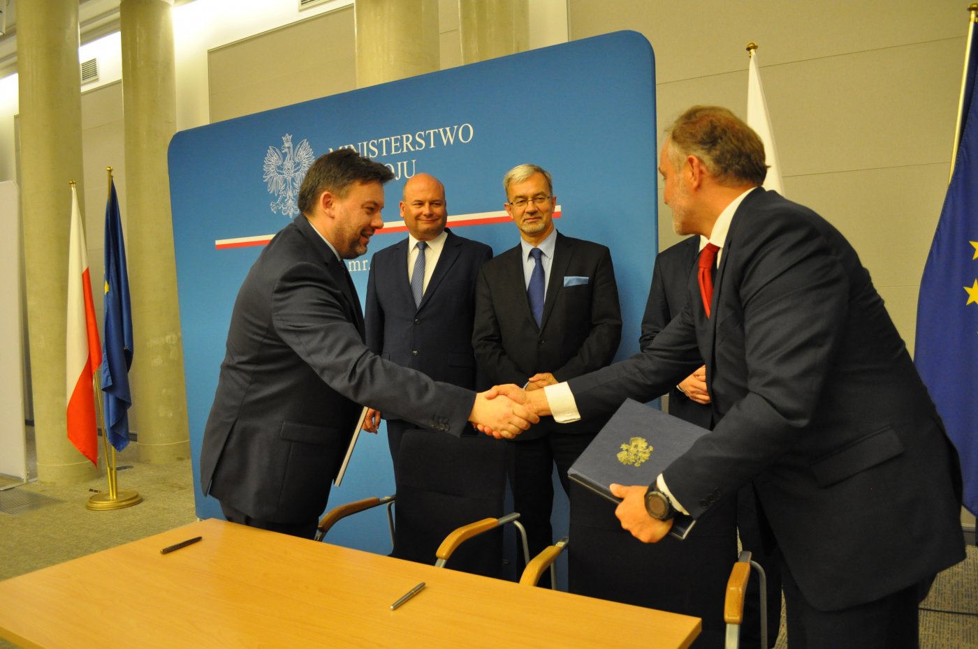 40 milionów unijnej dotacji, zostanie przeznaczonych na realizację ważnej gdyńskiej inwestycji komunikacyjnej. W czwartek 3 sierpnia, w siedzibie Ministerstwa Rozwoju w Warszawie, została zawarta umowa o dofinansowanie budowy węzła integracyjnego Gdynia Chylonia oraz miejskiej infrastruktury dla autobusów i trolejbusów. Inwestycja ma być gotowa w I kwartale 2020 roku.Umowę z ramienia Centrum Unijnych Projektów Transportowych, pełniącego rolę instytucji pośredniczącej w Programie Operacyjnym Infrastruktura i Środowisko, podpisał Przemysław Gorgol, pełniący obowiązki dyrektora. Obecni byli również wiceministrowie rozwoju Jerzy Kwieciński i Witold Słowik, a także wojewoda pomorski Dariusz Drelich. Gdynię reprezentował prezydent miasta, Wojciech Szczurek, który tak komentował przyznaną dotację: – Unijna dotacja, którą miasto otrzyma, będzie dużym wsparciem w realizacji tak ważnej dla gdynian inwestycji. Projekt zakłada nie tylko utworzenie węzła, ale również wielu udogodnień dla osób niepełnosprawnych, rowerzystów i pieszych. Rozwój zrównoważonego transportu publicznego, oszczędność czasu przejazdu, redukcja emisji zanieczyszczeń i hałasu, zmniejszenie liczby wypadków komunikacyjnych – to tylko niektóre z szeregu korzyści społecznych i środowiskowych, jakie zyskamy dzięki tej inwestycji.Nowy węzeł integracyjny powstanie w oparciu o istniejącą stację Szybkiej Kolei Miejskiej Gdynia Chylonia. Projekt zakłada utworzenie podziemnego parkingu park&ride na około 140 miejsc wraz z infrastrukturą towarzyszącą i budynkiem toalet. Na miejscu powstaną także naziemne miejsca postojowe i parking bike&ride dla około 50 rowerów. Węzeł uzupełniony zostanie o ciągi piesze i rowerowe, niezbędną infrastrukturę obsługi pasażerów oraz ułatwienia dla osób z niepełnosprawnościami.Dodatkowo, na wybranych odcinkach ulicy Morskiej powstaną buspasy. Ich łączna długość w obu kierunkach (do i z centrum Gdyni) wyniesie około 1,28 km. Przebudowanych i dostosowanych do potrzeb osób niepełnosprawnych zostanie także 30 zatok komunikacji miejskiej. Ponadto w dzielnicach: Chylonia, Pustki Cisowskie-Demptowo, Leszczynki, Obłuże, Śródmieście, Grabówek, Działki Leśne, Witomino-Radiostacja, Redłowo, Orłowo, Mały Kack, Karwiny i Dąbrowa zostanie zamontowanych 41 nowych tablic informacji pasażerskiej.Wartość projektu „Rozwój zrównoważonego transportu publicznego w Gdyni poprzez inwestycje infrastrukturalne, m.in. utworzenie węzła integracyjnego Gdynia Chylonia” wynosi 65 998 725 złotych. Dzięki umowie zawartej między Gdynią a Skarbem Państwa projekt współfinansowany będzie z Funduszu Spójności w ramach Programu Operacyjnego Infrastruktura i Środowisko na lata 2014-2020. Wysokość dofinansowania to 40 243 125 złotych. Okres realizacji projektu: III kwartał 2017 roku – I kwartał 2020 roku. Galeria zdjęć Pobierz galerię Wizualizacje budowy węzła integracyjnego Gdynia Chylonia oraz miejskiej infrastruktury dla autobusów i trolejbusów. Pobierz zdjęcie Wizualizacje budowy węzła integracyjnego Gdynia Chylonia oraz miejskiej infrastruktury dla autobusów i trolejbusów. Pobierz zdjęcie Podpisanie umowy o dofinansowanie budowy węzła integracyjnego Gdynia Chylonia. Na zdjęciu:Przemysław Gorgol - pełniący obowiązki dyrektora CUPT, Witold Słowik - wiceminister rozwoju, Jerzy Kwieciński - wiceminister rozwoju oraz Wojciech Szczurek, prezydent Gdyni //fot.mat.prasowe Pobierz zdjęcie Podpisanie umowy o dofinansowanie budowy węzła integracyjnego Gdynia Chylonia. Na zdjęciu:Przemysław Gorgol - pełniący obowiązki dyrektora CUPT, Witold Słowik - wiceminister rozwoju, Jerzy Kwieciński - wiceminister rozwoju, Dariusz Drelich - wojewoda pomorski oraz Wojciech Szczurek, prezydent Gdyni //fot.mat.prasowe Pobierz zdjęcie Warunki pobierania Wszelkie prawa do zdjęć lub grafik prezentowanych w ramach portalu, należą do Prowadzącego portal lub do podmiotów z nim współpracujących i podlegają ochronie prawnej. Prowadzący portal zezwala na kopiowanie i przedstawianie utworów jedynie w celach niekomercyjnych oraz pod warunkiem zachowania go w oryginalnej postaci i zachowaniem kontekstu tematu, do którego zostało wykorzystaneprzez redakcję gdynia.pl. Opublikowane materiały powinny zawsze zawierać źródło, czyli adres strony www.gdynia.pl. Na publikowanie utworów w innych celach wymagana jest zgoda właściciela strony czyli Prowadzącego portal. Opublikowano: 03.08.2017 12:15 Autor: Marta Jaszczerska-Zawadzka (m.jaszczerska@gdynia.pl) Zmodyfikowano: 03.08.2017 15:28 Zmodyfikował: Marta Jaszczerska
