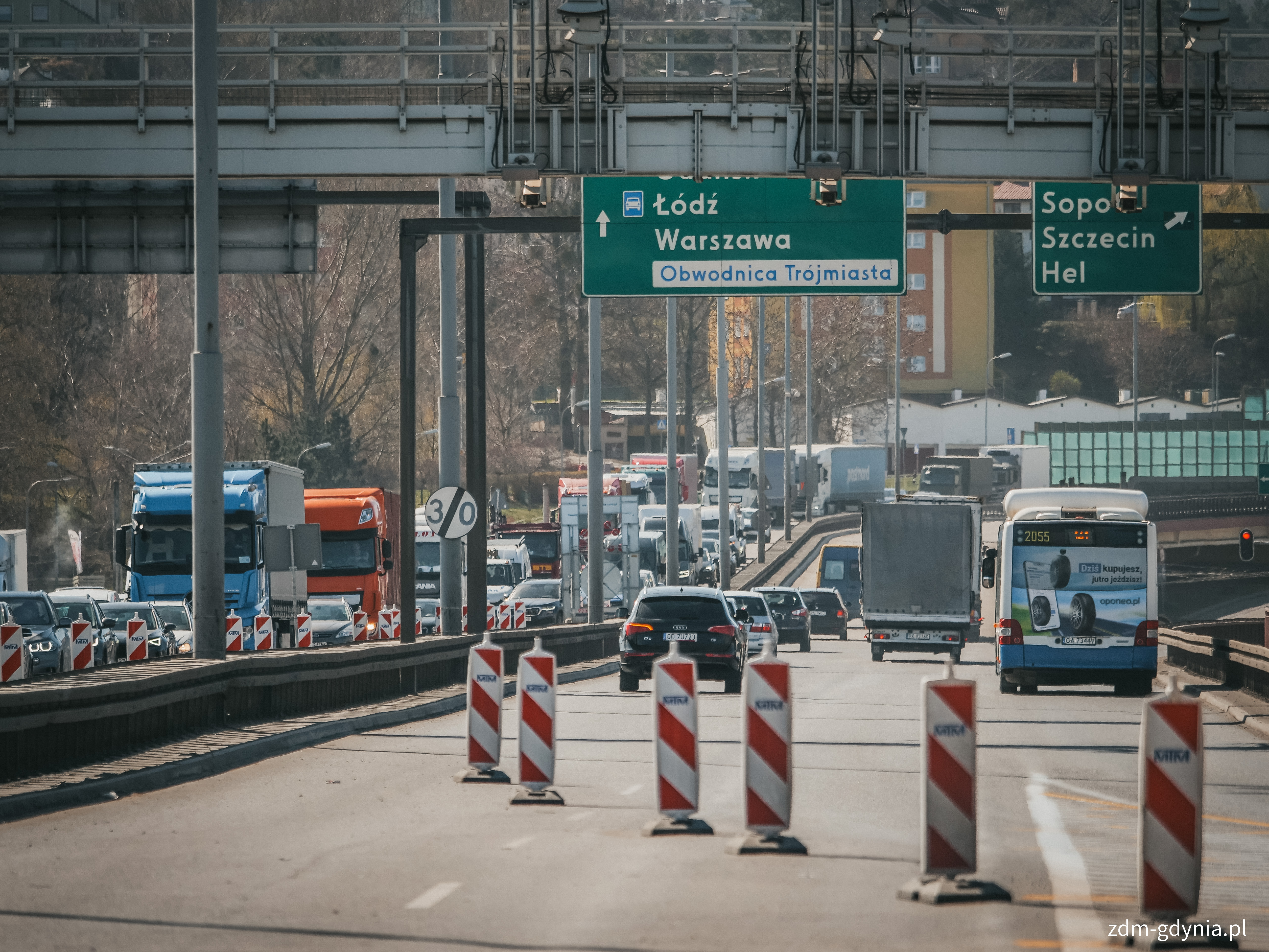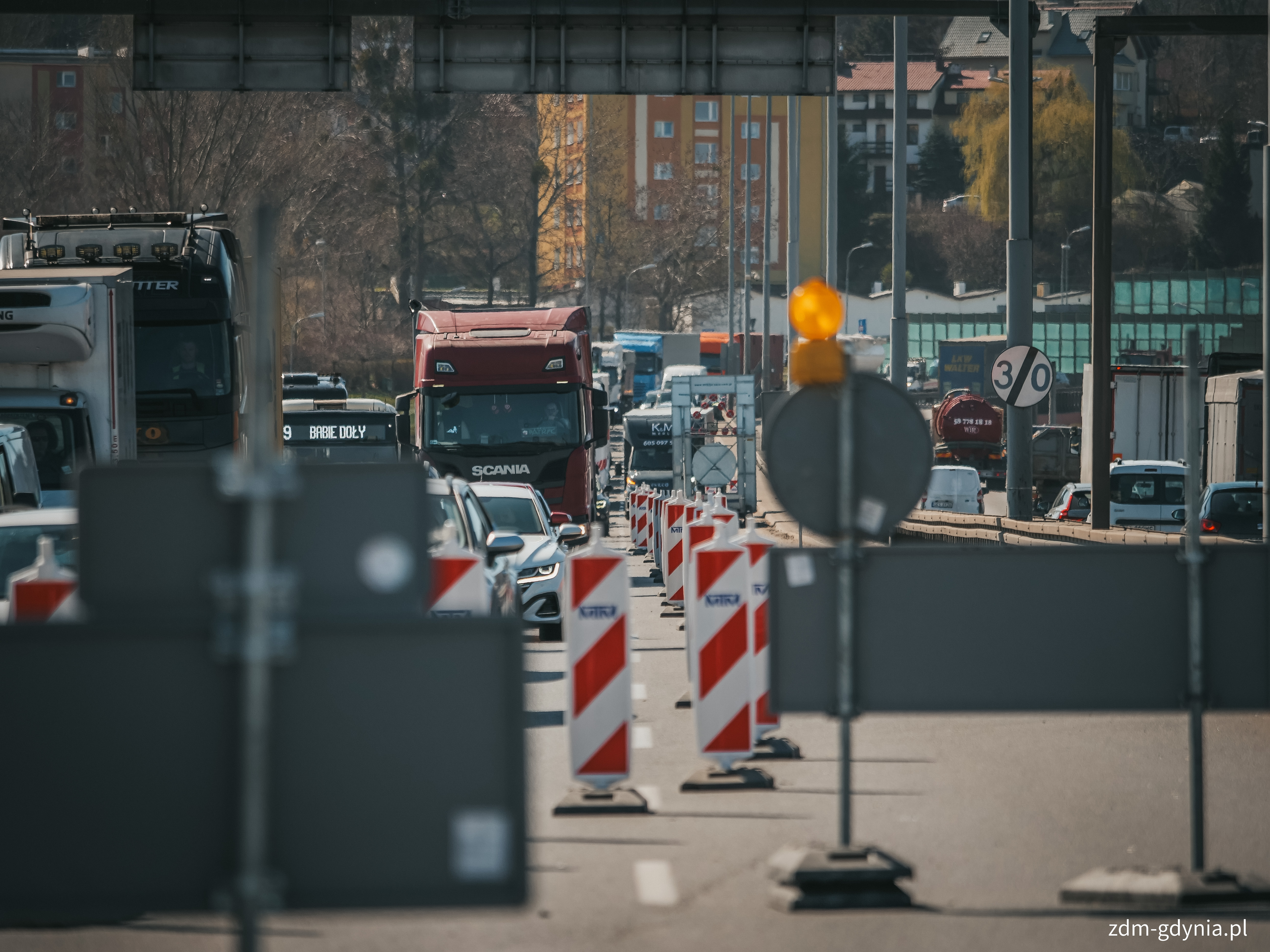 Na Estakadzie Kwiatkowskiego kontynuowane są roboty związane z naprawą przegubu konstrukcyjnego. To jeden z najważniejszych elementów całej konstrukcji – jego stan techniczny został zakwalifikowany jako awaryjny. Na placu budowy widać wyraźny postęp – zdemontowano dylatacje, skuty został górny wspornik przegubu, a obecnie trwa rozkuwanie dolnego wspornika.Po wykonaniu tych prac rozpoczną się kolejne etapy związane z odtwarzaniem elementów konstrukcyjnych. Roboty prowadzone są w systemie zmianowym, co pozwala sprawnie przechodzić do kolejnych faz realizacji. Trwa rozkuwanie dolnego wspornika przegubu Estakady Kwiatkowskiego (fot. Marcin Mielewski, Zarząd Dróg Miejskich ) Ruch zaplanowany, nie przypadkowy Zmianę organizacji ruchu w rejonie estakady przygotowano na podstawie konkretnych danych, a nie doraźnych decyzji. Przed zamknięciem głównego ciągu przeprowadzono pomiary ruchu w obrębie skrzyżowania z ul. Hutniczą. Na ich podstawie przygotowano analizę z wykorzystaniem mikrosymulacji ruchu, która pozwoliła sprawdzić różne warianty funkcjonowania układu drogowego.Wybrano rozwiązanie, które w symulacji dawało najlepsze rezultaty.Efekt to zmienione działanie sygnalizacji świetlnej: zmieniony układ faz ruchu, dostosowanie długości sygnałów zielonych dla poszczególnych relacji. wyraźnie zwiększony maksymalny czas zielonego dla relacji zjazdowych z estakady. To właśnie te kierunki przejęły największy strumień pojazdów po zamknięciu głównej jezdni. System reaguje na rzeczywisty ruch Sytuacja drogowa w rejonie estakady i na innych ulicach jest na bieżąco monitorowana i na bieżąco korygowana (fot. Marcin Mielewski, Zarząd Dróg Miejskich) Nowa organizacja ruchu nie działa według jednego, stałego schematu. Sygnalizacja świetlna w rejonie ul. Hutniczej działa dynamicznie i dostosowuje się do rzeczywistego obciążenia ruchem. System TRISTAR wykorzystuje dane z urządzeń detekcji i na bieżąco zmienia długość sygnałów: przy mniejszym natężeniu ruchu zielone światło jest skracane, uzyskany czas przekazywany jest bardziej obciążonym relacjom, w przypadku większego ruchu możliwe jest wydłużenie sygnału w ramach przyjętych zakresów. Nad działaniem systemu czuwają pracownicy Samodzielnego Referatu Sygnalizacji Świetlnej i Planowania Transportu w Zarządzie Dróg Miejskich, którzy analizują dane i wprowadzają korekty w jego pracy. Korekty po wdrożeniu Od momentu wprowadzenia czasowej organizacji ruchu sytuacja jest stale analizowana. Dane z detektorów pokazują, jak zmienia się natężenie ruchu w ciągu dnia i w kolejnych dniach funkcjonowania układu (fot. Marcin Mielewski, Zarząd Dróg Miejskich) Na tej podstawie wprowadzono już pierwsze korekty: zmieniono zakresy maksymalnego wydłużania sygnałów zielonych, dopasowano działanie algorytmu do różnych pór dnia, doprecyzowano warunki wydłużania i skracania sygnałów. To proces ciągły - układ jest na bieżąco dostosowywany do rzeczywistych zachowań kierowców. 57 tysięcy pojazdów przez jedno skrzyżowanie mat. Zarządu Dróg Miejskich w Gdyni Dane od pierwszego dnia roboczego obowiązywania nowej organizacji ruchu pokazują wyraźny trend – natężenie ruchu stopniowo rosło. Obecnie przez skrzyżowanie z ul. Hutniczą przejeżdża ponad 57 tysięcy pojazdów na dobę.Jeszcze przed zamknięciem głównego ciągu estakady w godzinach szczytu przez ten odcinek przejeżdżało ponad 3700 samochodów w obu kierunkach w ciągu godziny. To pokazuje skalę ruchu, z jaką musi dziś mierzyć się ten fragment układu drogowego. Utrudnienia odczuwalne w całym mieście Zmiana organizacji ruchu w tym miejscu nie ma charakteru lokalnego. To jeden z kluczowych punktów układu drogowego Gdyni, dlatego jej wpływ odczuwalny jest w wielu częściach miasta.Ruch monitorowany jest nie tylko w rejonie ul. Hutniczej, ale również na trasach alternatywnych: ul. Morska, ul. Chwarznieńska, ul. Wielkopolska, ul. Dworcowa w kierunku ul. Podjazd, inne odcinki ul. Hutniczej. Pozwala to reagować w całym układzie drogowym, który przejął dodatkowe obciążenie. Apel do kierowców Estakada Kwiatkowskiego (fot. Marcin Mielewski, Zarząd Dróg Miejskich) Estakada Kwiatkowskiego jest jedną z kluczowych tras w mieście, dlatego przy obecnej organizacji ruchu każda dodatkowa liczba pojazdów ma znaczenie.Apelujemy, aby z przejazdu w tym rejonie korzystali przede wszystkim ci kierowcy, dla których jest to rzeczywiście konieczne. Jeśli nie ma konieczności przejazdu tym odcinkiem, warto skorzystać z tras alternatywnych lub innych środków transportu.Utrudnienia związane z remontem potrwają do końca czerwca, a ich przebieg wynika bezpośrednio z technologii robót – szczególnie etapów związanych z odtwarzaniem konstrukcji i procesem wiązania betonu, którego nie da się przyspieszyć.Przy takim natężeniu ruchu utrudnienia są nieuniknione i odczuwalne. Sytuacja jest jednak stale monitorowana, a organizacja ruchu na bieżąco dostosowywana do rzeczywistych warunków.Prosimy kierowców o zachowanie szczególnej ostrożności w rejonie prowadzonych prac i stosowanie się do tymczasowego oznakowania. Opublikowano: 07.04.2026 10:30 Autor: Marcin Mielewski (m.mielewski@zdiz.gdynia.pl) Zmodyfikowano: 07.04.2026 16:01 Zmodyfikował: Małgorzata Omachel - Kwidzińska