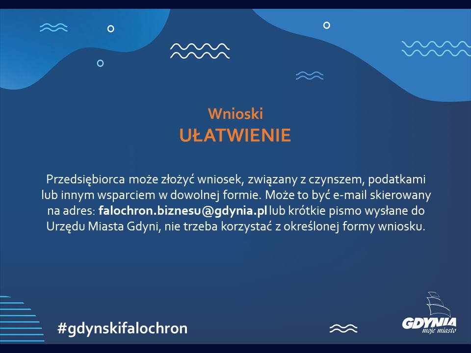 - W aktualnej sytuacji wiadomo już, że bez wsparcia miasta wiele podmiotów, zarówno przedsiębiorców, jak i organizacji pozarządowych, klubów sportowych czy instytucji kultury może wpaść w tarapaty, którym mimo najlepszych chęci i ciężkiej pracy, nie podoła. To dla nich tworzymy dziś Falochron, szeroki program wsparcia, od tego wpływającego na płynność, przez narzędzia polityki społecznej,po wsparcie doradcze. Zaczynamy od przedsiębiorców, którzy z jednej strony są symbolem naszego miasta, z a drugiej – ich działalność w ogromnym stopniu wpływa na prywatne  życie wielu gdynian. Zależy nam, by jak najwięcej firm wyszło obronną ręką z impasu, w jakim się znalazły, Proponujemy też maksymalne uproszczenie procedur. Często będą wymagały uzupełnienia, bo tak nakazuje prawo, ale teraz nie pora na zawiłości – podkreśla Wojciech Szczurek, prezydent Gdyni.
