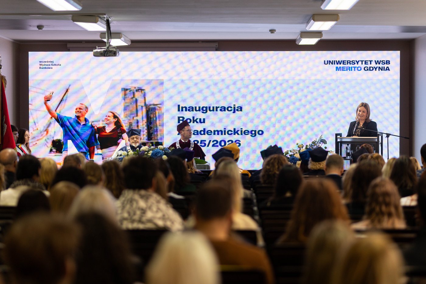 11 października na Uniwersytecie WSB Merito Gdynia wybrzmiało „Gaudeamus igitur”. To może oznaczać tylko jedno: uroczyste rozpoczęcie roku akademickiego 2025/2026. W wydarzeniu uczestniczyli m.in. wiceprezydentka Gdyni Oktawia Gorzeńska, przedstawiciele władz uczelni, kadry naukowej, reprezentanci środowiska biznesowego oraz nowo przyjęci studenci. 11 października na Uniwersytecie WSB Merito Gdynia odbyła się uroczysta inauguracja roku akademickiego 2025/2026. Poprowadziła ją Agnieszka Gutowska, która przy dźwiękach „Poloneza” Wojciecha Kilara powitała przedstawicieli senatu, rady akademickiej oraz władz uczelni.Po odśpiewaniu hymnu i powitaniu gości głos zabrał rektor Uniwersytetu WSB Merito w Gdańsku dr hab. Jan Wiśniewski, prof. UWSB Merito. Podkreślił znaczenie współpracy nauki i praktyki oraz odpowiedzialności akademickiej w kształtowaniu przyszłych liderów.Oktawia Gorzeńska, wiceprezydentka Gdyni, złożyła studentom i władzom uczelni życzenia w imieniu prezydent Gdyni Aleksandry Kosiorek oraz swoim.Oktawia Gorzeńska, wiceprezydentka Gdyni przemawia podczas uroczystości (fot. materiały Uniwersytetu WSB Merito Gdynia) Wszystkim studentkom i studentom życzę, by ten rok był czasem odwagi, ciekawości i świadomego rozwoju. Niech przynosi wam doświadczenia, które pozwolą kształtować przyszłość, a nie tylko się do niej dostosowywać – życzyła studentom i studentkom Oktawia Gorzeńska, wiceprezydentka Gdyni. Podczas uroczystości wręczono nagrody dla partnerów uczelni. Tytuł Partnera Biznesowego Roku otrzymała firma Amazon, natomiast Praktykodawcą Roku została firma Langowski Logistics – wyróżniona za zaangażowanie w rozwój praktycznego kształcenia studentów.W imieniu społeczności studenckiej przemówiła Yulia Myroshnychenko, przedstawicielka samorządu studentów. Podkreśliła rolę wspólnoty akademickiej oraz znaczenie współpracy i wzajemnego wsparcia w trakcie studiów.Ważnym punktem wydarzenia była immatrykulacja studentów pierwszego roku, symbolicznie wprowadzająca nowych członków do społeczności akademickiej. W ich imieniu słowa ślubowania powtórzyli nowo przyjęci studenci pod przewodnictwem prorektora ds. nauki i współpracy z zagranicą dr. hab. Artura Kozłowskiego, prof. UWSB Merito.Część naukową uroczystości stanowił wykład inauguracyjny psychologa dr. hab. Piotra Olafa Żylicza, prof. UWSB Merito, zatytułowany „Mapa bez kompasu: Jak planować życie i karierę w epoce BANI”, poświęcony wyzwaniom stojącym przed młodymi ludźmi w dynamicznie zmieniającym się świecie.Zwieńczeniem wydarzenia było wspólne odśpiewanie pieśni „Gaudeamus igitur” oraz oficjalne zakończenie roku akademickiego przez rektora.Żródło: UWSB Merito Galeria zdjęć Pobierz galerię Inauguracja roku akademickiego 2025/2026 na Uniwersytecie WSB Merito Gdynia (fot. materiały Uniwersytetu WSB Merito Gdynia) Pobierz zdjęcie Inauguracja roku akademickiego 2025/2026 na Uniwersytecie WSB Merito Gdynia (fot. materiały Uniwersytetu WSB Merito Gdynia) Pobierz zdjęcie Na zdj. wiceprezydentka Gdyni Oktawia Gorzeńska podczas przemówienia (fot. materiały Uniwersytetu WSB Merito Gdynia) Pobierz zdjęcie Tytuł Partnera Biznesowego Roku uczelni otrzymała firma Amazon (fot. materiały Uniwersytetu WSB Merito Gdynia) Pobierz zdjęcie Inauguracja roku akademickiego 2025/2026 na Uniwersytecie WSB Merito Gdynia (fot. materiały Uniwersytetu WSB Merito Gdynia) Pobierz zdjęcie Warunki pobierania Wszelkie prawa do zdjęć lub grafik prezentowanych w ramach portalu, należą do Prowadzącego portal lub do podmiotów z nim współpracujących i podlegają ochronie prawnej. Prowadzący portal zezwala na kopiowanie i przedstawianie utworów jedynie w celach niekomercyjnych oraz pod warunkiem zachowania go w oryginalnej postaci i zachowaniem kontekstu tematu, do którego zostało wykorzystaneprzez redakcję gdynia.pl. Opublikowane materiały powinny zawsze zawierać źródło, czyli adres strony www.gdynia.pl. Na publikowanie utworów w innych celach wymagana jest zgoda właściciela strony czyli Prowadzącego portal. Opublikowano: 13.10.2025 10:55 Autor: Magdalena Śliżewska (magdalena.slizewska@gdynia.pl) Zmodyfikowano: 13.10.2025 16:00 Zmodyfikował: Jakub Winiewski