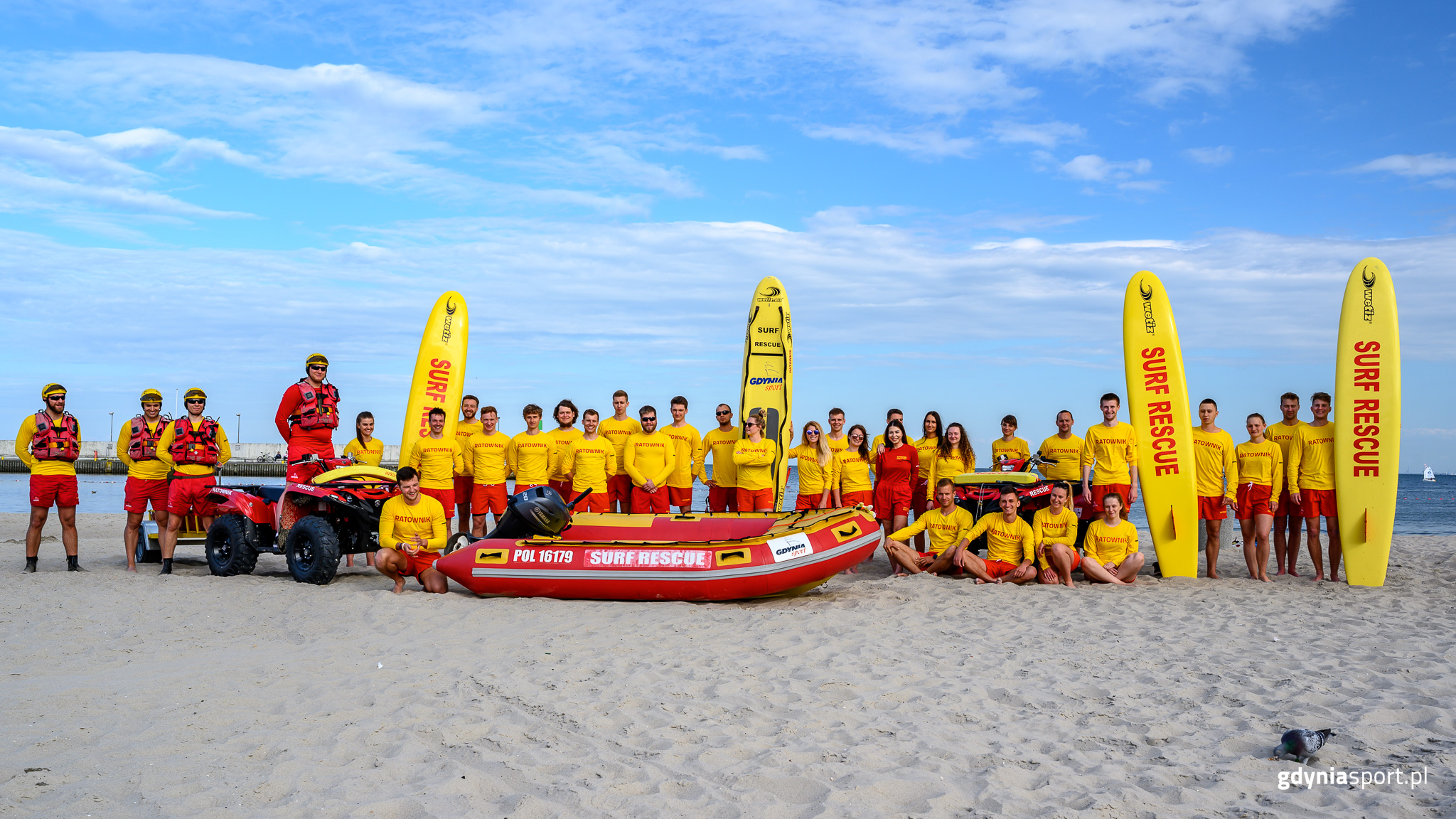 Wystartowała rekrutacja ratowników, którzy w sezonie letnim 2022 strzec będą odpoczywających na kąpieliskach w Gdyni. – Gdyńskie kąpieliska należą do jednych z najbezpieczniejszych w Polsce. Rokrocznie nad spokojem nad wodą czuwa sztab specjalnie wyszkolonych do tego ratowników tworzących zgrany zespół. Zatrudniamy najlepszych ludzi, stąd od ponad 20 lat możemy cieszyć się skutecznością w podejmowanych interwencjach – mówi wiceprezydent Gdyni Marek Łucyk. Gdyńskie Centrum Sportu od 1998 roku organizuje kąpieliska w 4 dzielnicach miasta. Są to Babie Doły (100 m), Śródmieście (200 m), Redłowo (200 m) i Orłowo (100 m). Funkcjonują one każdego dnia sezonu letniego w godzinach od 9.30 do 17.30. Tegoroczny trwać będzie od 1 lipca i zakończy się 31 sierpnia. Dla kąpieliska Gdynia Śródmieście start przewidziany jest tydzień szybciej – 24 czerwca. – Każdy ratownik przejdzie specjalny proces kwalifikacyjny i otrzyma od wysoko wykwalifikowanej kadry instruktorskiej profesjonalne szkolenie stanowiskowe uwzględniające specyfikę działań na gdyńskich kąpieliskach morskich. Praca w sezonie odbywać się będzie w rotacyjnym systemie uwzględniającym indywidualne potrzeby – komentuje Przemysław Dalecki, dyrektor Gdyńskiego Centrum Sportu. – Ludziom dbającym o bezpieczeństwo wypoczywających zapewniamy możliwie najlepszy sprzęt, a także odpowiednie warunki finansowe i socjalne. Ratownicy otrzymają kompletny ubiór dostosowany do panujących na plaży warunków atmosferycznych – dodaje dyrektor GCS. Na 4 gdyńskie kąpieliska poszukiwanych będzie 32 ratowników. Dodatkowo 3 osoby zasilić mają Grupę Interwencyjną Ratownictwa Wodnego GCS. – To trzyosobowy zespół najbardziej doświadczonych ratowników, który w razie wystąpienia nieszczęśliwego zdarzenia może dotrzeć do poszkodowanego i udzielić mu kwalifikowanej pierwszej pomocy w ciągu kilkunastu minut. Ten zastęp do dyspozycji ma szybką łódź motorową, skuter ratowniczy z platformą oraz pojazd ATV z przyczepą do ewakuacji osób poszkodowanych z trudno dostępnych miejsc – komentuje Paweł Brutel, wicedyrektor GCS. Gdyńscy ratownicy wodni nie tylko zajmują się patrolowaniem plaż i udzielania pierwszej pomocy poszkodowanym w wypadkach. To również utytułowany zespół, który regularnie bierze udział z powodzeniem w ogólnopolskich zawodach w tym tych najwyższej rangi, Mistrzostwach Polski w Ratownictwie Wodnym, regularnie plasując się w nich na czołowych lokatach.Od 1998 roku, czyli od początku ratowników działania pod egidą GCS, na gdyńskich kąpieliskach morskich nie utonęła żadna osoba, co świadczy o profesjonalizmie ratowników zatrudnianych w Gdyni.To nie jedyna prowadzona obecnie rekrutacja. Gdyńskie Centrum Sportu poszukuje również bosmana, który pracować będzie w Marinie Gdynia. Wszystkie ogłoszenia o pracę dostępne są TUTAJ. Opublikowano: 22.04.2022 12:33 Autor: Marek Urbaniak (m.urbaniak@gdyniasport.pl) Zmodyfikowano: 27.04.2022 11:02 Zmodyfikował: Karolina Szypelt