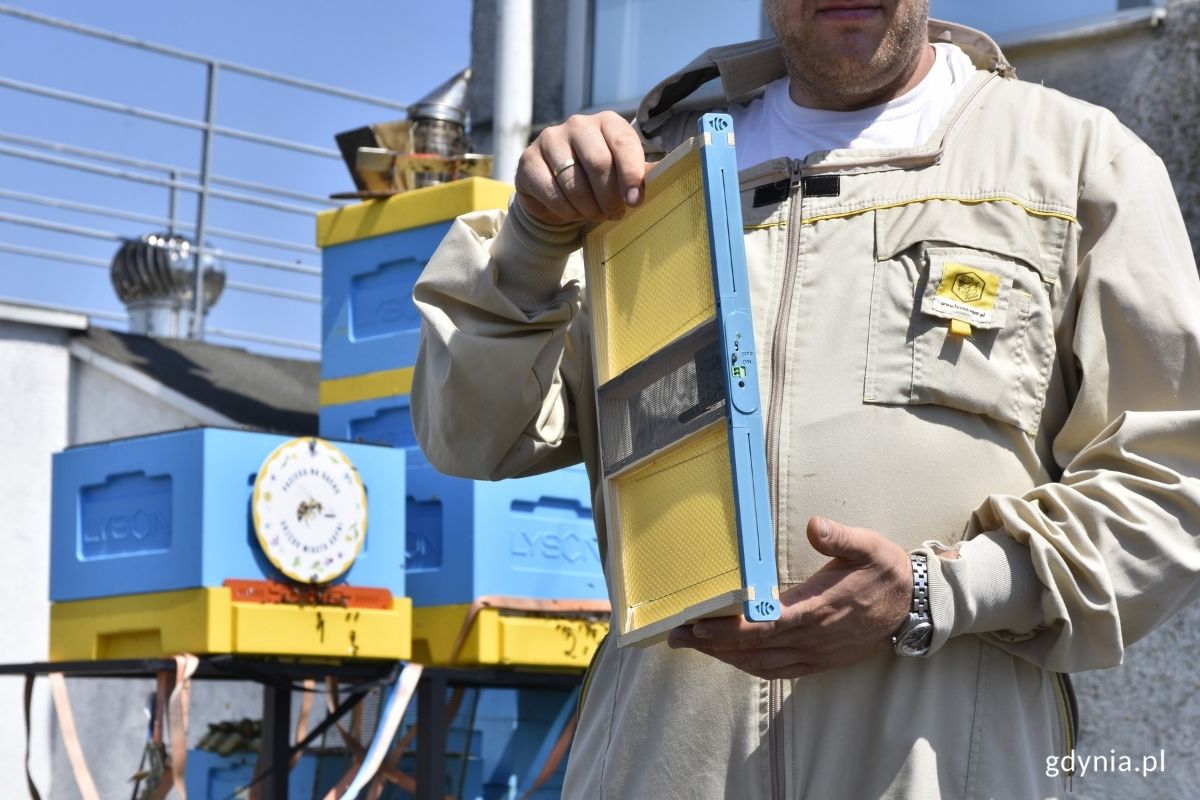 – Za nami pierwsze miodobranie. Nasze gdyńskie, urzędowe pszczoły dały tym razem ponad 50 litrów miodu, a więc mają się świetnie. Warto jednak wspomnieć, że będą miały się jeszcze lepiej. We współpracy z innowacyjną firmą wdrażamy rozwiązanie o nazwie Smartula. To pomysł na to, w jaki sposób monitorować dobrostan pszczół. Pomyślany przede wszystkim jako wsparcie dla dużych pasiek, dla miejsc, gdzie miód jest produkowany w dużej skali, ale jako Urząd Miasta również postanowiliśmy wesprzeć wynalazców i testujemy to rozwiązanie w Gdyni – mówi Michał Guć, wiceprezydent Gdyni ds. innowacji