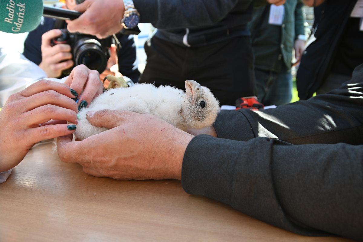 Kwiecień i maj to w Gdyni czas dla sokołów. Para, która od lat mieszka na kominie gdyńskiej elektrociepłowni, doczekała się w tym roku kolejnych piskląt. Młode zostały już zaobrączkowane. Spędzą jeszcze jakiś czas w gnieździe, z rodzicami, a potem polecą w świat! Przypomnijmy: w Gdyni od lat mieszka para sokołów. Bryza, samiczka, która przed dekadą przybyła do nas z niemieckiego Neustrelitz oraz Bosman, rodowity wrocławianin, stworzyli parkę i zorganizowali sobie wspólne życie w gnieździe założonym na kominie gdyńskiej elektrociepłowni PGE Energia Ciepła. Te piękne, drapieżne ptaki swoim sokolim wzrokiem omiatają zarówno całe nasze miasto, jak i spory obszar Pomorza – a przed ich czujnym okiem ciężko się ukryć małym zwierzakom czy gryzoniom, stanowiącym ich pokarm. Bryza bądź Bosman i ich matecznik, komin PGE Energia Ciepła w Gdyni. Fot. Zygmunt Gołąb Kolejny sezon sokolej rodzinki Kulminacja rodzinnego szczęścia u naszych sokołów następuje co roku wiosną. Wówczas w gnieździe pojawiają się jaja, a wkrótce potem wykluwają się z nich pisklęta. Warto wiedzieć, że samica sokoła wędrownego składa jaja właśnie wiosnę. To 3, czasem 4 sztuki. Ich inkubacja trwa ponad miesiąc. Pisklaki spędzają w gnieździe 5 – 6 tygodni. Po jego opuszczeniu przez jeszcze miesiąc są dokarmiane przez rodziców. W międzyczasie są obrączkowane, by dzięki temu można śledzić ich dalsze losy. Na takie właśnie obrączkowanie zaprosili nas przedstawiciele elektrociepłowni PGE Energia Ciepła, spółki, która od lata angażuje się w ochronę tego gatunku ptaków oraz Stowarzyszenia Na Rzecz Dzikich Zwierząt "Sokół". Piklęta wyjęto z gniazda i woreczkach bezpiecznie przetransportowano na zaobrączkowanie i pobranie krwi. Fot. Zygmunt Gołąb W rodzinnym gnieździe Bryzy i Bosmana O tym, co działo się w gnieździe gdyńskich sokołów wędrownych na kominie elektrociepłowni, mogli naocznie przekonać się internauci, podglądając życie tych pięknych ptaków za pomocą kamery internetowej na stronie peregrinus.pl. Szczegóły w rozmowie z gdynia.pl zdradza Daria Podobajew ze Stowarzyszenia "Sokół": - Trzy pisklęta, które dziś obrączkujemy, wykluły się 23 kwietnia. Lęgi są raz w roku, Bryza zniosła łącznie 4 jaja, jednak jedno się nie wykluło. Powodem jest to, że zniosła je wcześniej niż pozostałe i zaczęła inkubować dopiero po pewnym czasie. Wiemy już, że z tego czwartego jaja nie wykluje się pisklę – mówi Podobajew. Trójka rodzeństwa: chłopak najodważniejszy, z ciekawością patrzył na ludzi. Fot. Zygmunt Gołąb Po co obrączkuje się pisklęta sokołów wędrownych? - Żebyśmy mieli wiedze, gdzie nasze ptaki lecą, z jakim powodzeniem wyprowadzają lęgi. Staramy się obrączkować wszystkie sokoły, o których istnieniu mamy wiedzę. Przeprowadzamy tę czynność u piskląt między drugim a trzecim tygodniem życia – mówi Daria Podobajew. Pisklęta cierpliwie znosiły zabieg obrączkowania. Fot. Zygmunt Gołąb Obrączkowanie to nie wszystko – od ptaków pobierana jest również krew. Jak mówi przedstawicielka Stowarzyszenia "Sokół", dzięki temu badaniu możliwe jest określenie płci ptaka oraz sprawdzenie genetycznych powiazań między innymi sokołami, które nie są znakowane obrączkami. Warto tu podkreślić, że takie badanie dla piskląt jest bezbolesne, natomiast Bryza i Bosman są przyzwyczajeni do tego typu akcji, związanych z krótkotrwałą nieobecnością ich potomstwa w gnieździe. Wiemy już, że te piękne pisklęta, które widzicie na zdjęciach i materiale video, to jeden chłopak i dwie dziewczny. Chłopak, jak na przyszłego drapieżnego samca przystało, nie wydawał się być skrępowany obecnością mediów i zerkał na nas z ciekawością. Jego dwie siostry zachowały trochę większą powściągliwość - z wiekiem na pewno im to minie. Pobieranie krwi pisklęcia. Fot. Zygmunt Gołąb Dobrze, że jest winda By zaobrączkować sokoły z gdyńskiego komina, należy je znieść na dół. Wtedy zaprasza się media, które mogą relacjonować to wydarzenie (zobaczcie nasze rolki i zdjęcia z tej akcji na naszych mediach społecznościowych: Twitter, Facebook i Instagram). O technicznych szczegółach zniesienia ptaków opowiedział nam Sławomir Sielicki ze Stowarzyszenia "Sokół": - Tu, w Gdyni, mamy bardzo komfortową sytuację, bo w kominie jest winda. Wjechaliśmy więc windą prawie pod gniazdo, jedynie dwa metry do samego gniazda musieliśmy podejść po drabinie. Dzięki windzie mogliśmy z pisklętami zejść na dół i w towarzystwie tutaj zaobrączkować je, pokazać jak to wygląda – opowiada Sielicki. Dodaje, że większość kominów, na których sokoły wędrowne założyły gniazda, nie posiada windy. Wówczas trzeba wspiąć się 100 czy 120 metrów po drabinie i obrączkować pisklęta w gnieździe, na miejscu. Dzięki tym obrączkom prześledzimy, co się będzie z nimi działo. Fot. Zygmunt Gołąb Sokół lubi wysokość Generalnie sokoły wędrowne lubią duże wysokości. Prawie na całym świecie gniazdują w górach, na półkach skalnych. Z kolei w miastach podobają im się wysokie budowle: kominy czy drapacze chmur. Ewenementem na skalę światową jest ekotyp, czyli populacja, która gniazduje na drzewach, zajmuje gniazda innych dużych ptaków. Znajdziemy ją we wschodnich Niemczech, Polsce i Rosji. Pisklęta sokoła wędrownego z komina PGE Energia Ciepła w Gdyni. Fot. Zygmunt Gołab Sokół wędrowny, jak mówi Sławomir Sielicki, jest gatunkiem kosmopolitycznym. Występował i występuje prawie na całym świecie. - Niestety w połowie ubiegłego wieku ze względu na działalność człowieka, na większości swojego areału wyginął, głównie przez DDT, środek ochrony roślin. Ostatnie gniazda sokoła wędrownego znaleziono w Polsce na początku lat 60-tych, potem przez kilkadziesiąt lat tych ptaków w Polsce, ja