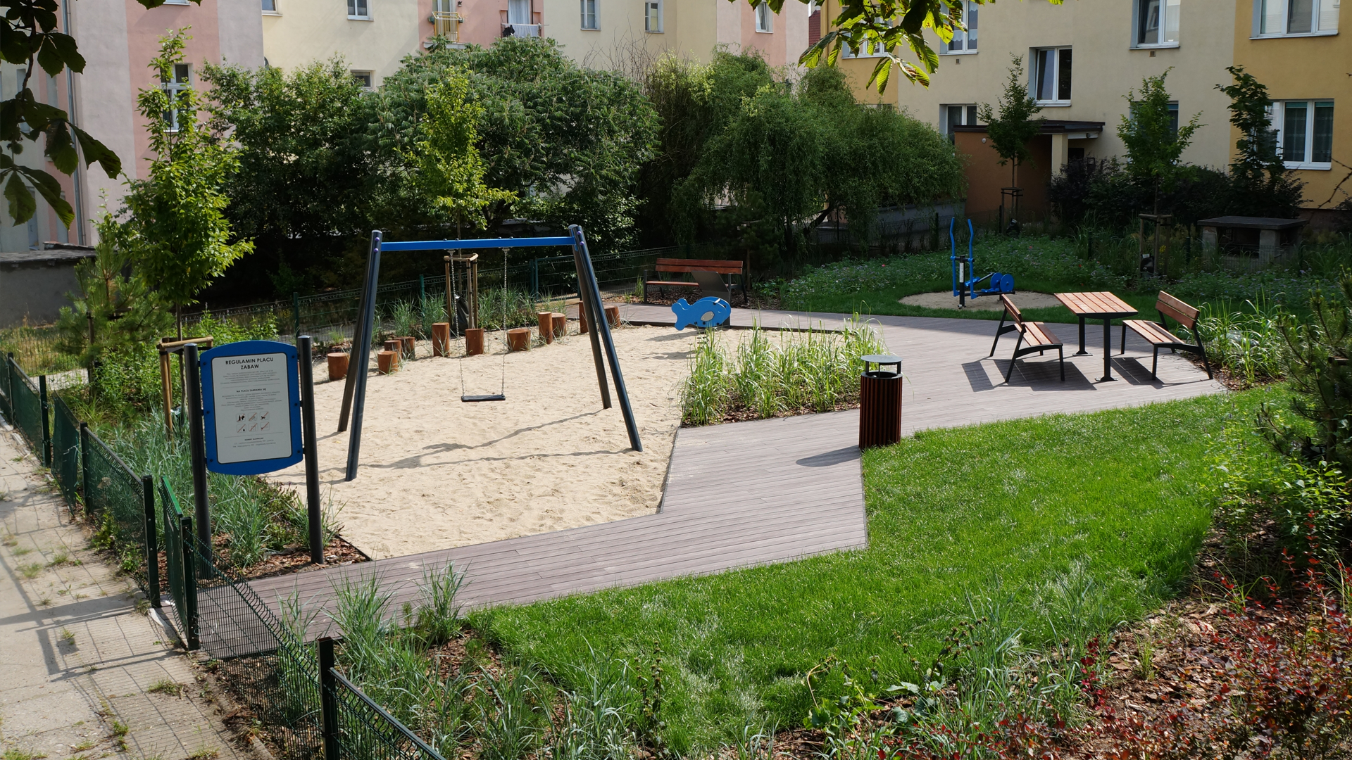Park Kieszonkowy „Kieszonka Kapitana” powstał przy ul. Kapitańskiej w Gdyni. Tym samym Grabówek zyskał kolejną estetyczną i funkcjonalną przestrzeń.„Kieszonka Kapitana” powstała w bliskim sąsiedztwie ul. Morskiej, a więc najdłuższej z gdyńskich ulic. - Parki kieszonkowe to element zielonej strategii miasta. Każdy z projektów jest wyjątkowy i w pozytywnym sensie zaskakujący. Inspiracją do powstania „Kieszonki Kapitana” były nazwy pobliskich ulic, które w naturalny sposób kojarzą się z morzem i jego nieodłącznymi atrybutami. Dlatego w parku znajdują się elementy nawiązujące do nadmorskich klimatów – wyjaśnia Marek Łucyk, wiceprezydent Gdyni ds. rozwoju. Jednym ze wspomnianych elementów jest ścieżka wykonana z deski kompozytowej, swoim wyglądem przypominająca pokład statku lub pomost. Otaczają ją: z jednej strony „spienione morskie wody” z niskiego trawnika i wysokiej trawy ozdobnej – miskanta chińskiego Memory, zaś z drugiej – powierzchnia wysypana piaskiem kojarząca się z plażą. Na „pokładzie” znajdują się dwie ławki ze stołem, idealne do sąsiedzkich spotkań. Wyposażenie terenu uwzględnia potrzeby różnych grup wiekowych – jest więc tu zarówno huśtawka oraz bujak dla najmłodszych, pieńki mogące służyć do zabawy starszym dzieciom oraz orbitrek zewnętrznej siłowni dla dorosłych. - Dopełnieniem kompozycji jest zieleń: sosny czarne oraz graby pospolite Franse Fontaine, sosny kosodrzewiny, kwitnące szałwie omszone, kłosowce, żeleźniak bulwiasty oraz ozdobne trawy: proso rózgowate w odmianie Heavy Metal, miskanty chińskie: Herman Mussel i Gracillimus oraz feria barw łąki kwietnej. Dodatkowego uroku dodadzą czosnki ozdobne, których cebule zostaną posadzone jesienią - opisuje Tadeusz Schenk, naczelnik Wydziału Ogrodnika Miasta. - Parki kieszonkowe w gdyńskich dzielnicach realizowane są w ramach Budżetu Obywatelskiego. Prace nad ich projektem rozwijały się ze spotkania na spotkanie, a zaangażowanych było wiele osób, w tym radni miejscy i radni dzielnicowi. Wspólnie udało się wypracować koncepcje, dzięki którym na terenie Gdyni powstają różnorodne parki i ogrody, które z pewnością staną się miejscami integracji oraz spotkań sąsiedzkich. Efekty zachwycają - mówi Anna Myszka, radna miasta. Autorką projektu „Kieszonki Kapitana” jest Karolina Zamkowska z Wydziału Ogrodnika Miasta. Opublikowano: 20.07.2021 13:30 Autor: Paweł Marszałkowski (pawel.marszalkowski@gdyniasport.pl) Zmodyfikowano: 20.07.2021 16:04 Zmodyfikował: Karolina Szypelt