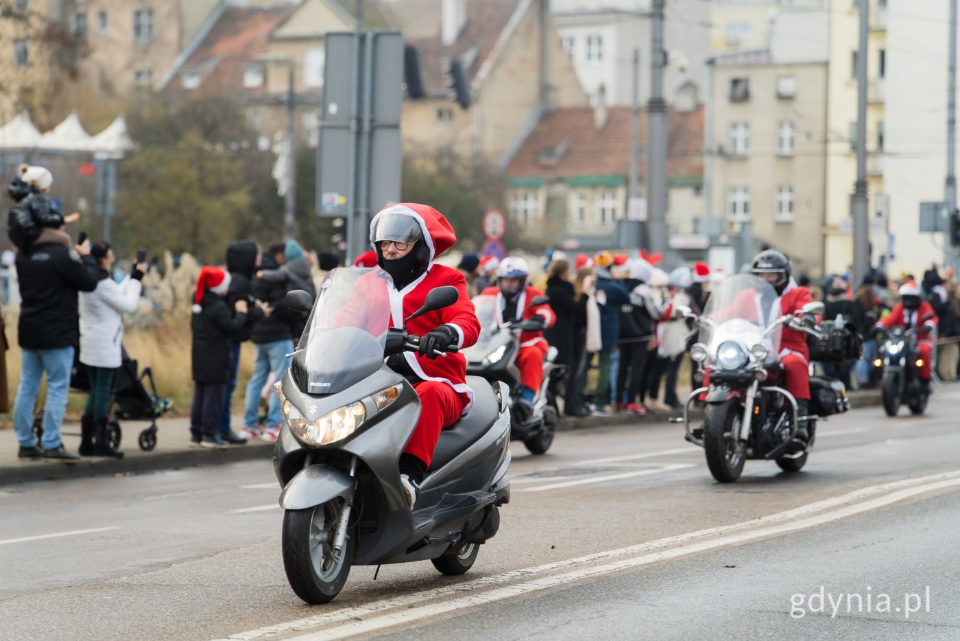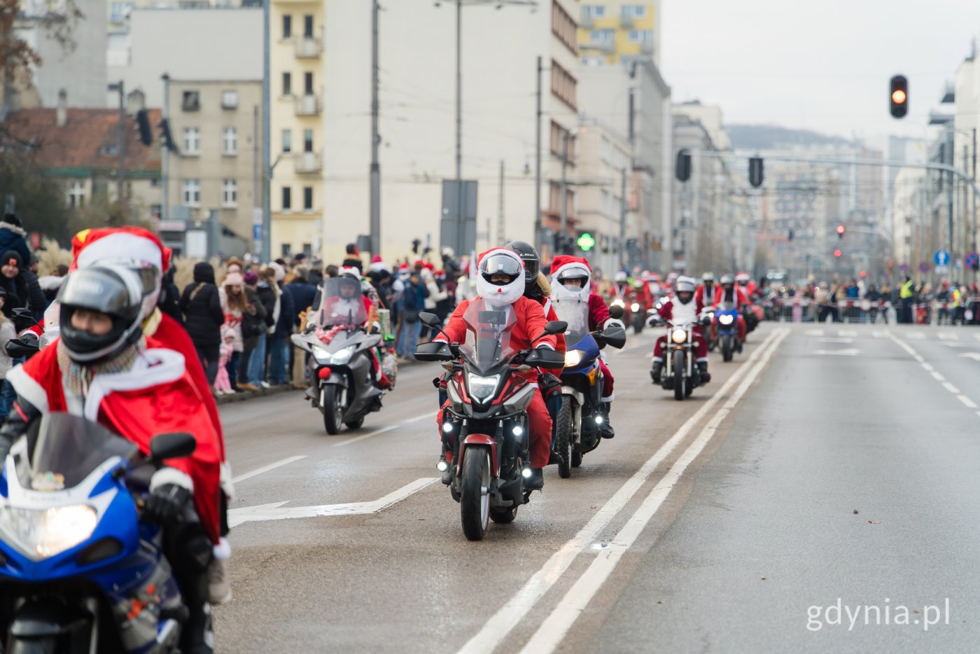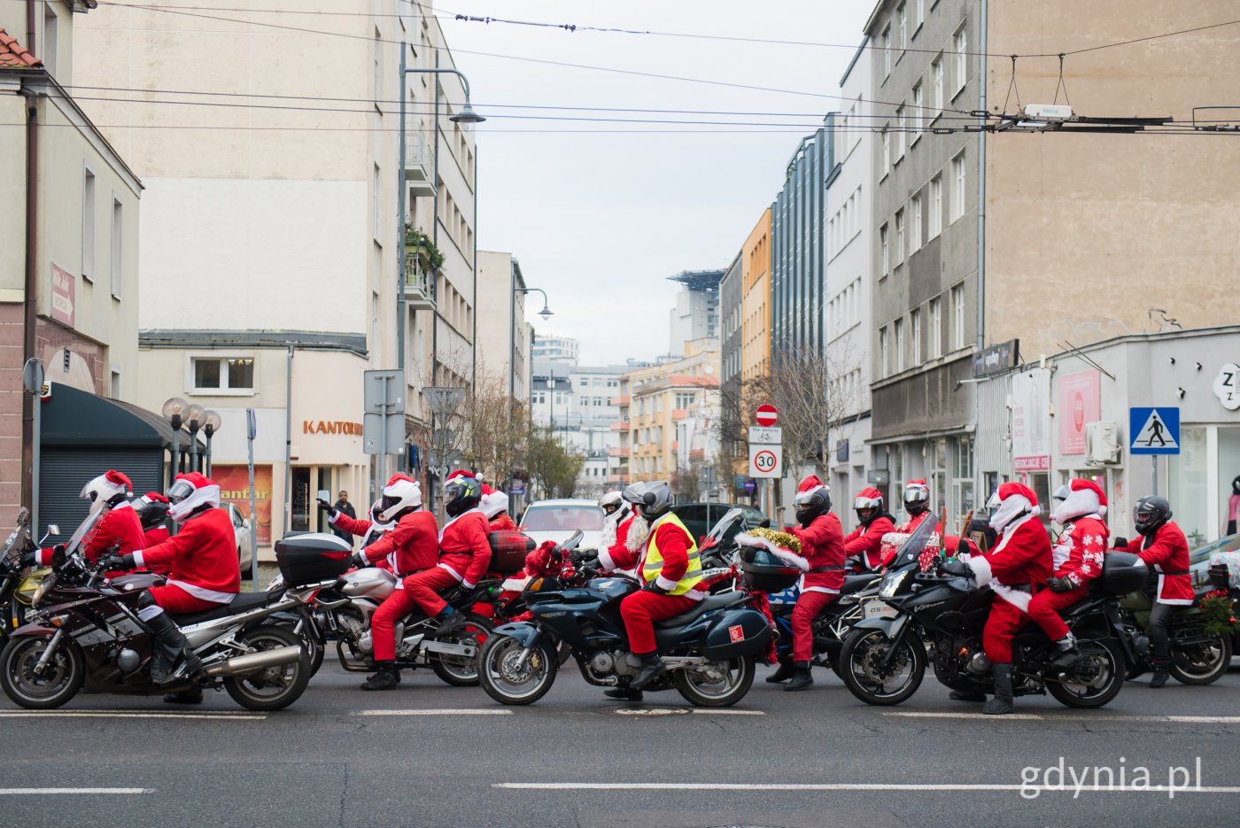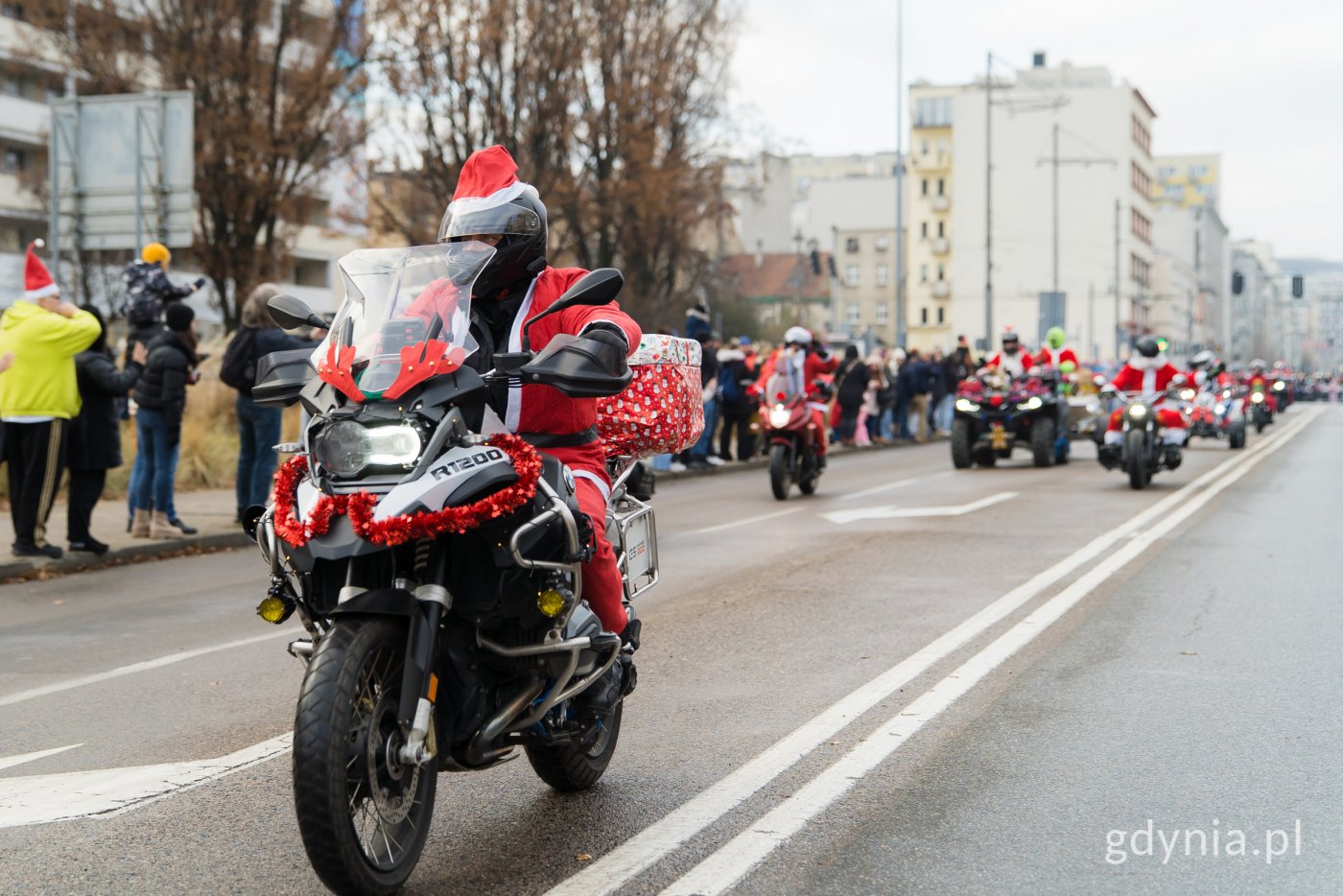 To jeden ze świątecznych akcentów, na który co roku czekają setki mieszkańców. Ponad 1400 motocyklistów w przebraniach przejechało w niedzielę ulicami Trójmiasta w ramach akcji „Mikołaje na motocyklach”. Pasjonaci dwóch kółek w ten sposób co roku, już od 23 lat, zbierają środki m.in. na wsparcie dla dzieci w trudnej sytuacji materialnej. W tym roku to ponad 152 tysiące złotych. Setki maszyn i jeszcze więcej mikołajów Motocykle i nie tylko. Setki mieszkańców podziwiały przejazd W tym roku czerwona parada motocyklistów przebranych za mikołajów (i nie tylko) pokonała w niedzielę, 7 grudnia trasę z Gdańska do Gdyni. Finał przejazdu „Mikołajów na motocyklach” to gdyńskie molo Południowe, a setki mieszkańców obserwowały długi korowód pojazdów między innymi wzdłuż ulicy Świętojańskiej. Zdjęcia i montaż: Przemysław Dopke Setki maszyn i jeszcze więcej mikołajów Organizatorzy tym razem wprawdzie nie pobili rekordu, ale maszyny liczono w setkach, a przejazd wszystkich uczestników trwał kilkadziesiąt minut. Po starcie spod gdańskiej Polsat Plus Areny, przejeżdżając głównymi arteriami Trójmiasta, do Gdyni przejazd dotarł około południa, udając się w kierunku kończącej akcję plenerowej sceny. Bardzo dobra frekwencja, tysiąc czterysta pięć pojazdów, jak nam naliczyły osoby, które to weryfikowały, tak że jest to bardzo dobry wynik. To oczywiście przekłada się też i na środki finansowe, które zgromadzimy. Dwadzieścia trzy lata temu dziewięciu motocyklistów wpadło na pomysł, żeby pokazać, że ludzie na motocyklach też mają serca, są mikołajami i przejechali wówczas właśnie z Gdyni do Gdańska. My po prostu kultywujemy ten świetny trend, który rozlał się już na całą Polskę – mówił o akcji jej organizator, Tomasz Bocian z Trójmiejskiego Stowarzyszenia Motocyklowego. Każdy z zarejestrowanych moto-mikołajów opłacał wcześniej cegiełkę, której kwotę organizatorzy – Trójmiejskie Stowarzyszenie Motycyklowe – przekazywali na cele charytatywne. Oprócz tego na miejscu finału „Mikołajów na motocyklach” zbierano datki do puszek, które także zasiliły konto zbiórki. Przede wszystkim jest to zbiórka na obiady dla dzieci do świetlic oraz do miejsc, gdzie placówki nie posiadają wystarczającego finansowania bądź nie posiadają go wcale, żeby zapewnić dzieciom ciepły posiłek. To jest podstawa. Oczywiście jeździmy też do szpitali z paczkami. Jest wyznaczonych kilka brygad, które zaraz po tej imprezie jadą odwiedzić szpitale, dać dzieciom ten uśmiech mikołaja. Większość przyglądających się też dokłada swój grosik do tej akcji, nie tylko motocykliści, nie tylko my, zebrani tutaj jako cała grupa – mówił Przemysław Krauza-Dobrochowski, jeden ze współorganizatorów akcji, członek zespołu Bimbrownicy. AKTUALIZACJA (9 GRUDNIA):Jak poinformowali w mediach społecznościowych organizatorzy przejazdu, tegoroczna akcja przyniosła kwotę łącznie 152 tysięcy 847 złotych i 78 groszy. Większość wpływów odnotowano z tzw. cegiełek, które opłacali uczestnicy, ale także ze zbiórkowych puszek, internetowej zrzutki, przelewów BLIK, licytacji charytatywnych oraz wpływów od przyjaciół akcji i sponsorów. Internetowa zrzutka będzie prowadzona jeszcze do 24 grudnia (wigilia) – wówczas organizatorzy „Mikołajów na motocyklach” podadzą ostateczną, tegoroczną kwotę. Motocykle i nie tylko. Setki mieszkańców podziwiały przejazd Jakie pojazdy można było zobaczyć podczas przejazdu? To nie tylko klasyczne motocykle różnych marek, na których pojedynczo przemieszczali się motocykliści-mikołaje, ale też trójkołowce, zabytkowe pojazdy z charakterystycznymi wózkami bocznymi, quady i inne związane ze środowiskiem motocyklistów. W jednym z nich razem z uczestnikami przejechała też prezydent Gdyni Aleksandra Kosiorek, która w tym roku przyłączyła się do charytatywnej akcji.Prezydent Gdyni Aleksandra Kosiorek (na zdjęciu w błękitnym stroju) wzięła udział w przejeździe (fot. Paweł Budziński) Motocykliści nie tylko z całego Trójmiasta i z całej Polski, ale również z zagranicy przyjechali, żeby wesprzeć tę akcję. Dzisiaj pierwszy raz ja też uczestniczyłam w tym przejeździe. Muszę powiedzieć, że wrażenia są niesamowite i nie wiem, kto się bardziej cieszy na widok mikołajów – czy były to dzieci, czy dorośli – ale wszystkim w całym Trójmieście na pewno dzisiaj dostarczyliśmy dużo radości. W zasadzie cała trasa przejazdu była obstawiona rodzinami z dziećmi, które machały wesoło do przejeżdżających mikołajów i widać już, że wszyscy czekają na ten moment, kiedy poczujemy magię świąt – mówiła Aleksandra Kosiorek, prezydent Gdyni. Organizatorem 23. edycji przejazdu „Mikołaje na motocyklach” było Trójmiejskie Stowarzyszenie Motocyklowe. Imprezę swoimi honorowymi patronatami objęli: prezydent Gdyni, prezydent Gdańska, prezydentka Sopotu i marszałek województwa pomorskiego. Wydarzenie wsparli też liczni sponsorzy.Wkrótce organizatorzy opublikują ostateczne wyniki tegorocznej zbiórki środków. Więcej informacji m.in. na stronie internetowej www.mikolaje.gda.pl. Galeria zdjęć Pobierz galerię Przejazd przez Gdynię w ramach 23. edycji akcji „Mikołaje na motocyklach” (fot. Paweł Budziński) Pobierz zdjęcie Przejazd przez Gdynię w ramach 23. edycji akcji „Mikołaje na motocyklach” (fot. Paweł Budziński) Pobierz zdjęcie Przejazd przez Gdynię w ramach 23. edycji akcji „Mikołaje na motocyklach” (fot. Paweł Budziński) Pobierz zdjęcie Przejazd przez Gdynię w ramach 23. edycji akcji „Mikołaje na motocyklach” (fot. Paweł Budziński) Pobierz zdjęcie Przejazd przez Gdynię w ramach 23. edycji akcji „Mikołaje na motocyklach” (fot. Paweł Budziński) Pobierz zdjęcie Przejazd przez Gdynię w ramach 23. edycji akcji „Mikołaje na 