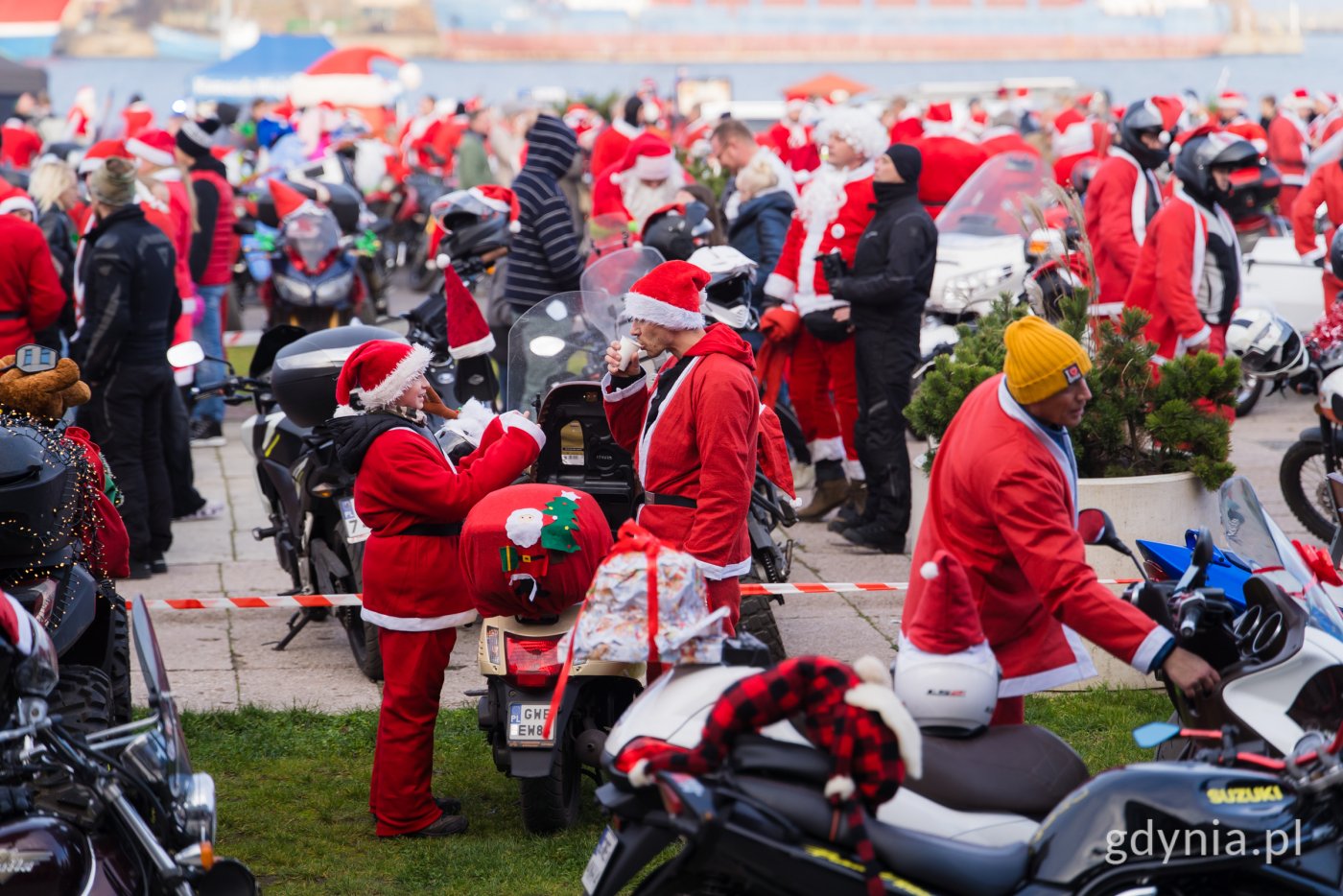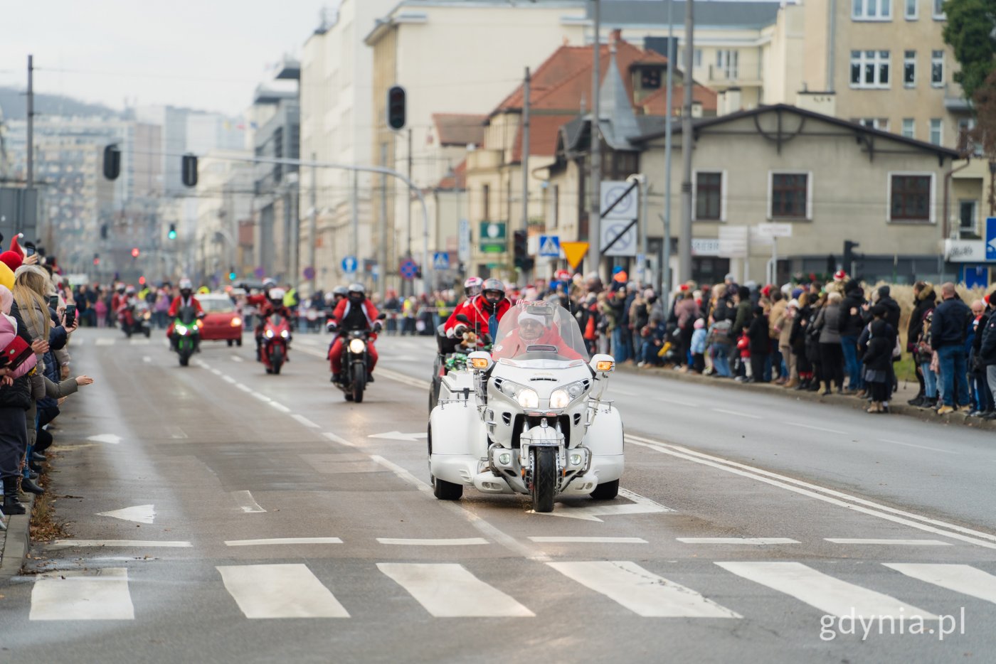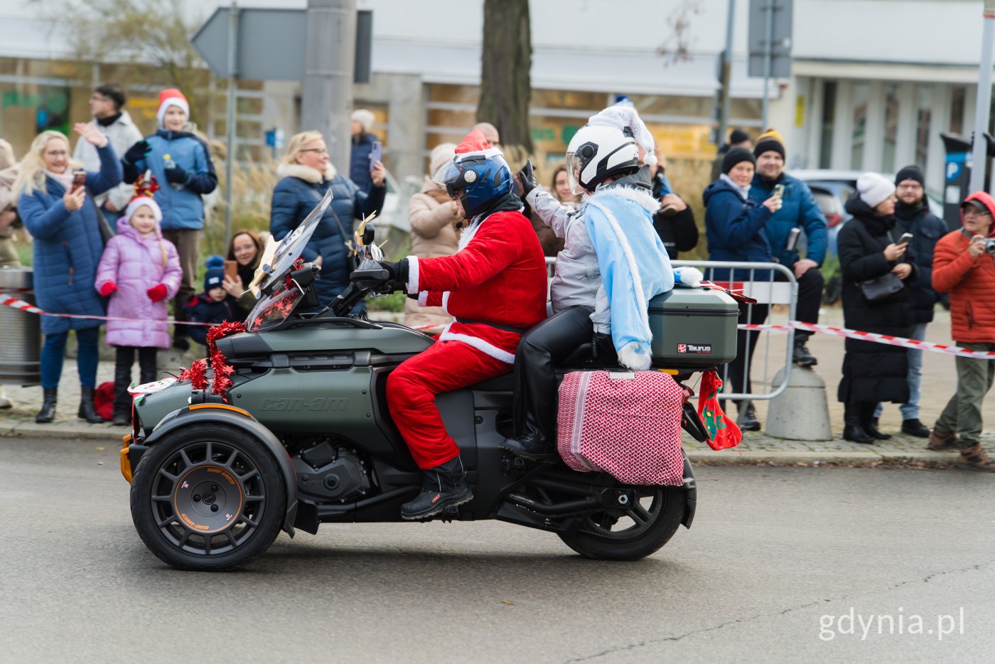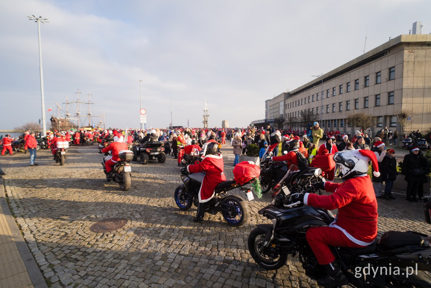To jeden ze świątecznych akcentów, na który co roku czekają setki mieszkańców. Ponad 1400 motocyklistów w przebraniach przejechało w niedzielę ulicami Trójmiasta w ramach akcji „Mikołaje na motocyklach”. Pasjonaci dwóch kółek w ten sposób co roku, już od 23 lat, zbierają środki m.in. na wsparcie dla dzieci w trudnej sytuacji materialnej. W tym roku to ponad 152 tysiące złotych. Setki maszyn i jeszcze więcej mikołajów Motocykle i nie tylko. Setki mieszkańców podziwiały przejazd W tym roku czerwona parada motocyklistów przebranych za mikołajów (i nie tylko) pokonała w niedzielę, 7 grudnia trasę z Gdańska do Gdyni. Finał przejazdu „Mikołajów na motocyklach” to gdyńskie molo Południowe, a setki mieszkańców obserwowały długi korowód pojazdów między innymi wzdłuż ulicy Świętojańskiej. Zdjęcia i montaż: Przemysław Dopke Setki maszyn i jeszcze więcej mikołajów Organizatorzy tym razem wprawdzie nie pobili rekordu, ale maszyny liczono w setkach, a przejazd wszystkich uczestników trwał kilkadziesiąt minut. Po starcie spod gdańskiej Polsat Plus Areny, przejeżdżając głównymi arteriami Trójmiasta, do Gdyni przejazd dotarł około południa, udając się w kierunku kończącej akcję plenerowej sceny. Bardzo dobra frekwencja, tysiąc czterysta pięć pojazdów, jak nam naliczyły osoby, które to weryfikowały, tak że jest to bardzo dobry wynik. To oczywiście przekłada się też i na środki finansowe, które zgromadzimy. Dwadzieścia trzy lata temu dziewięciu motocyklistów wpadło na pomysł, żeby pokazać, że ludzie na motocyklach też mają serca, są mikołajami i przejechali wówczas właśnie z Gdyni do Gdańska. My po prostu kultywujemy ten świetny trend, który rozlał się już na całą Polskę – mówił o akcji jej organizator, Tomasz Bocian z Trójmiejskiego Stowarzyszenia Motocyklowego. Każdy z zarejestrowanych moto-mikołajów opłacał wcześniej cegiełkę, której kwotę organizatorzy – Trójmiejskie Stowarzyszenie Motycyklowe – przekazywali na cele charytatywne. Oprócz tego na miejscu finału „Mikołajów na motocyklach” zbierano datki do puszek, które także zasiliły konto zbiórki. Przede wszystkim jest to zbiórka na obiady dla dzieci do świetlic oraz do miejsc, gdzie placówki nie posiadają wystarczającego finansowania bądź nie posiadają go wcale, żeby zapewnić dzieciom ciepły posiłek. To jest podstawa. Oczywiście jeździmy też do szpitali z paczkami. Jest wyznaczonych kilka brygad, które zaraz po tej imprezie jadą odwiedzić szpitale, dać dzieciom ten uśmiech mikołaja. Większość przyglądających się też dokłada swój grosik do tej akcji, nie tylko motocykliści, nie tylko my, zebrani tutaj jako cała grupa – mówił Przemysław Krauza-Dobrochowski, jeden ze współorganizatorów akcji, członek zespołu Bimbrownicy. AKTUALIZACJA (9 GRUDNIA):Jak poinformowali w mediach społecznościowych organizatorzy przejazdu, tegoroczna akcja przyniosła kwotę łącznie 152 tysięcy 847 złotych i 78 groszy. Większość wpływów odnotowano z tzw. cegiełek, które opłacali uczestnicy, ale także ze zbiórkowych puszek, internetowej zrzutki, przelewów BLIK, licytacji charytatywnych oraz wpływów od przyjaciół akcji i sponsorów. Internetowa zrzutka będzie prowadzona jeszcze do 24 grudnia (wigilia) – wówczas organizatorzy „Mikołajów na motocyklach” podadzą ostateczną, tegoroczną kwotę. Motocykle i nie tylko. Setki mieszkańców podziwiały przejazd Jakie pojazdy można było zobaczyć podczas przejazdu? To nie tylko klasyczne motocykle różnych marek, na których pojedynczo przemieszczali się motocykliści-mikołaje, ale też trójkołowce, zabytkowe pojazdy z charakterystycznymi wózkami bocznymi, quady i inne związane ze środowiskiem motocyklistów. W jednym z nich razem z uczestnikami przejechała też prezydent Gdyni Aleksandra Kosiorek, która w tym roku przyłączyła się do charytatywnej akcji.Prezydent Gdyni Aleksandra Kosiorek (na zdjęciu w błękitnym stroju) wzięła udział w przejeździe (fot. Paweł Budziński) Motocykliści nie tylko z całego Trójmiasta i z całej Polski, ale również z zagranicy przyjechali, żeby wesprzeć tę akcję. Dzisiaj pierwszy raz ja też uczestniczyłam w tym przejeździe. Muszę powiedzieć, że wrażenia są niesamowite i nie wiem, kto się bardziej cieszy na widok mikołajów – czy były to dzieci, czy dorośli – ale wszystkim w całym Trójmieście na pewno dzisiaj dostarczyliśmy dużo radości. W zasadzie cała trasa przejazdu była obstawiona rodzinami z dziećmi, które machały wesoło do przejeżdżających mikołajów i widać już, że wszyscy czekają na ten moment, kiedy poczujemy magię świąt – mówiła Aleksandra Kosiorek, prezydent Gdyni. Organizatorem 23. edycji przejazdu „Mikołaje na motocyklach” było Trójmiejskie Stowarzyszenie Motocyklowe. Imprezę swoimi honorowymi patronatami objęli: prezydent Gdyni, prezydent Gdańska, prezydentka Sopotu i marszałek województwa pomorskiego. Wydarzenie wsparli też liczni sponsorzy.Wkrótce organizatorzy opublikują ostateczne wyniki tegorocznej zbiórki środków. Więcej informacji m.in. na stronie internetowej www.mikolaje.gda.pl. Galeria zdjęć Pobierz galerię Przejazd przez Gdynię w ramach 23. edycji akcji „Mikołaje na motocyklach” (fot. Paweł Budziński) Pobierz zdjęcie Przejazd przez Gdynię w ramach 23. edycji akcji „Mikołaje na motocyklach” (fot. Paweł Budziński) Pobierz zdjęcie Przejazd przez Gdynię w ramach 23. edycji akcji „Mikołaje na motocyklach” (fot. Paweł Budziński) Pobierz zdjęcie Przejazd przez Gdynię w ramach 23. edycji akcji „Mikołaje na motocyklach” (fot. Paweł Budziński) Pobierz zdjęcie Przejazd przez Gdynię w ramach 23. edycji akcji „Mikołaje na motocyklach” (fot. Paweł Budziński) Pobierz zdjęcie Przejazd przez Gdynię w ramach 23. edycji akcji „Mikołaje na 