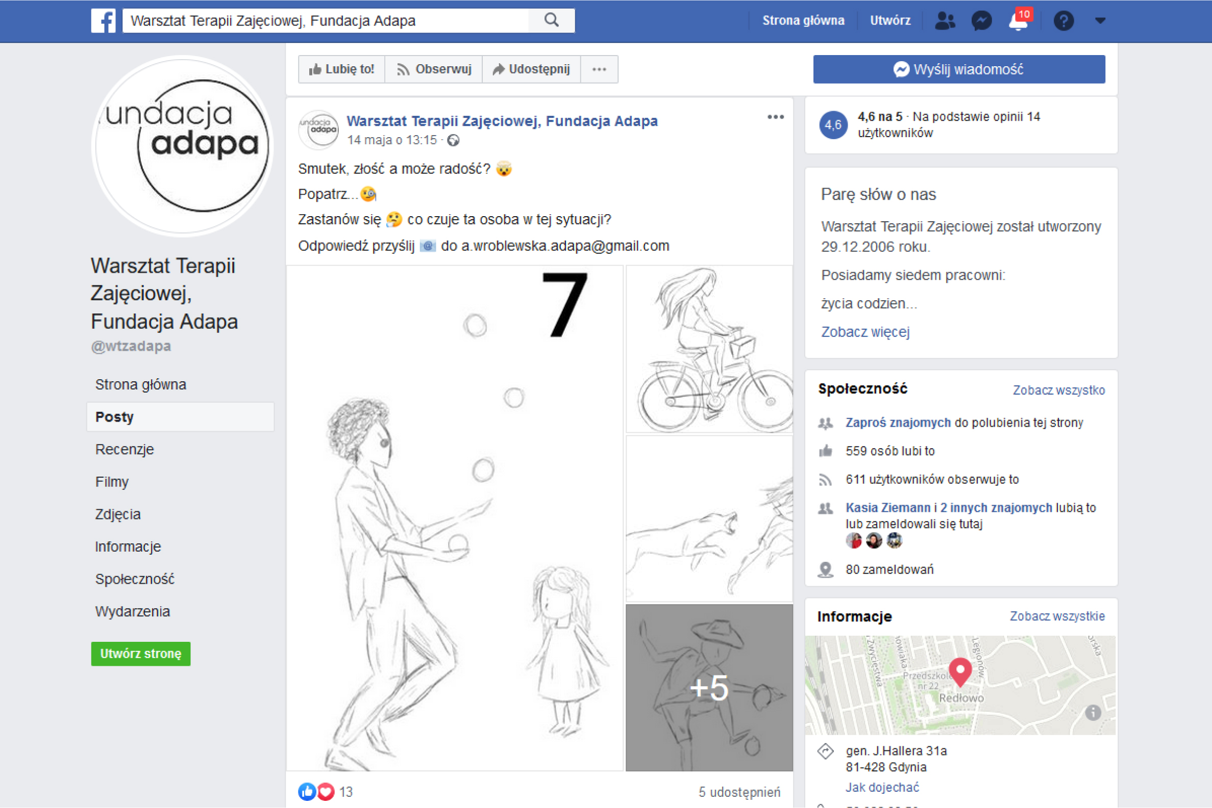 Cztery gdyńskie Warsztaty Terapii Zajęciowej wciąż pracują w trybie zdalnym. Choć powoli staje się on codziennością, to wciąż pozostaje wyzwaniem. Od prowadzących zajęcia wymaga bowiem większej niż zwykle kreatywności, a od uczestników – dyscypliny. Telefon, maile, portale społecznościowe, komunikatory internetowe – to za ich pomocą od drugiej połowy marca terapeuci i instruktorzy Warsztatów Terapii Zajęciowej prowadzą zajęcia dla swoich uczestników. Nie ukrywają, że to utrudnienie, bo w relacjach z osobami z różnego rodzaju niepełnosprawnościami kluczowy jest kontakt osobisty: obserwacja zachowań, reakcji, spontaniczne okazywanie uczuć, wspólny śmiech czy refleksja. - Ważne, żeby mimo warunków, w jakich przyszło nam żyć i pracować, nie stracić kontaktu, nie przerwać działań terapeutycznych tak potrzebnych osobom z niepełnosprawnościami. Przez lata wspólnej pracy terapeuci i uczestnicy Warsztatów Terapii Zajęciowej nawiązali z sobą bliskie więzi, osiągnęli wiele sukcesów. To kapitał z którego dziś, mimo trudności, korzystają gdyńskie placówki – podkreśla Michał Guć, wiceprezydent Gdyni ds. innowacji. – Wiem, że uczestnicy tęsknią za sobą, za swoimi instruktorami i terapeutami, za atmosferą wspólnoty; że odliczają dni do ponownego spotkania. Póki jednak pozostajemy w domach zachęcam do pełnego korzystania z tych wszystkich zajęć, które zdalnie przygotowują instruktorzy i terapeuci. Katarzyna Stec, zastępca dyrektora Miejskiego Ośrodka Pomocy Społecznej w Gdyni mówi, że z oferty czterech gdyńskich Warsztatów Terapii Zajęciowej korzysta 138 uczestników. To osoby dorosłe, zmagające się z różnymi niepełnosprawnościami. Zajęcia, w których uczestniczą, pomagają w usamodzielnianiu, rozwijaniu umiejętności, nabyciu nowych kompetencji, ale też w nawiązaniu relacji i nauczeniu się pracy w grupie. - Dziś te wszystkie cele realizowane są inaczej, bo na odległość – dodaje Katarzyna Stec. - Ale jak zauważają instruktorzy czy terapeuci, wzajemne relacje są pełne zaangażowania. Rodzice czy opiekunowie czują, że mają opiekę, że jest ktoś do kogo mogą się zwrócić. Zauważają też, że ich dzieci chętniej niż kiedyś włączają się w domowe obowiązki. To taka wartość dodana tej sytuacji.Terapeuci prowadzący grupy zajęciowe Warsztatów Terapii Zajęciowej Fundacji Adapa przygotowują zadania odpowiadające specyfice pracy własnej pracowni. Najczęściej to krótkie filmy instruktażowe kręcone specjalnie pod tym kątem. To równocześnie forma kontaktu - można zobaczyć osoby, z którymi na co dzień pracowało się w Warsztacie. Na facebookowym profilu Fundacji Adapa zadania pojawiają się dwa razy dziennie: o godz. 9.00 (o tej godzinie w Warsztacie zaczynają się zajęcia w pracowni) oraz o 13.15 (o tej godzinie zaczynają się zajęcia po przerwie obiadowej). Wszystkie filmy i zadania są również umieszczanie na stronie www.fundacja-adapa.blogspot.com, by umożliwić do nich dostęp osobom, które nie korzystają z fb. Uczestnicy robią zdjęcia swoich prac i przesyłają je do terapeutów lub bezpośrednio na profil fb. Każdy z uczestników założył swój „dziennik pracy” – według wzoru podanego na fb.W pierwszej części dnia terapeuci kontaktują się telefonicznie z uczestnikami zajęć grupy, którą prowadzą. Odbierają telefony i rozmawiają. Po południu uczestnicy zajęć mogą zadzwonić i porozmawiać z psychologiem lub terapeutą prowadzącym inna grupę. Działają też, oczywiście zdalnie, popołudniowe kluby zainteresowań, które prowadzi fundacja. Dostępne są dla wszystkich zainteresowanych. W poniedziałki profilu fb Fundacji Adapa oraz blogspocie odbywa się joga (instruktor zamieszcza film, a terapeuta wspomagający zajęcia w ich trakcie, w godz. 15 - 16 pozostaje w kontakcie z uczestnikami grupy), wtorki to zajęcia klubu bębniarzy, środy - klubu dramy, piątki - klubu piłki koszykowej. Warsztat Terapii Zajęciowej przy Centrum Pomocowym Caritas im. św. Ojca Pio, po wstępnym okresie poznawania możliwości pracy zdalnej z uczestnikami, wykorzystuje do tych celów - podobnie jak inne warsztaty – komunikatory i telefon. Instruktorzy, wspierani przez psychologa, codziennie prowadzą rozmowy o planowanych do wykonania zadaniach - np. porządkowych i plastycznych, o prostych ćwiczeniach fizycznych, przypominają o wietrzeniu pokoju, rozmawiają o sprawach bieżących. Motywują do przygotowywania fotorelacji na temat „Co robię w czasie wolnym”. Przygotowują też ścieżki dźwiękowe wraz z pracami ilustratorskimi i zdjęciami uczestników do wierszy Juliana Tuwima i innych polskich poetów. Uczestnicy pracowni plastycznej przygotowują teraz szablony, które będą mogli wykorzystać w pracy z ceramiką. Wykonują też rysunki i szkice, które mogą być inspiracją i początkiem większych prac, np. na konkurs plastyczny PFRON. W czasie pracy zdalnej pracownicy warsztatu dostarczają uczestnikom różnego rodzaju materiały plastyczne, by możliwe było zachowanie ciągłości działań w warunkach domowych, oraz służą pomocą rodzicom i opiekunom w wypełnianiu wniosków dotyczących wsparcia finansowego z powodu sytuacji związanej z koronawirusem. W WTZ przy Stowarzyszeniu Osób z Wadą Słuchu Cisza w Gdyni działają pracownie: gospodarstwa domowego, krawiecko-papiernicza, uspołeczniająco-rehabilitacyjna, plastyczno-psychologiczna i sprawne ręce. Uczestnicy pracowni gospodarstwa domowego, realizujący trzy programy: nauka dokładności, nauka wykonywania poleceń i nauka samodzielności, każdego dnia otrzymują zadania opisane w dzienniku zajęć. W razie pytań mogą zadzwonić lub wysłać sms. Potwierdzeniem wykonania zadania jest przesłane zdjęcia lub rozmowa prowadzącego zajęcia z rodzicami. Podczas tych rozmów jest też okazja do zapytania o kondycję uczestników, sytuację rodziny, 