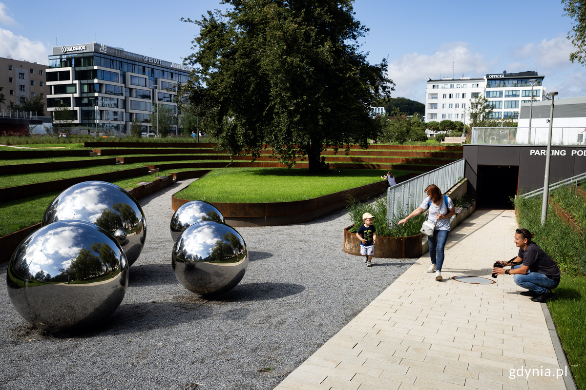 Tutaj będzie można odpoczywać, spędzać czas z bliskimi i przyjaciółmi oraz podziwiać przyrodę o każdej porze roku – Park Centralny jest już projektem kompletnym. We wtorek, 29 sierpnia oficjalnie oddano do użytku ostatni, trzeci etap inwestycji i tym samym zakończono wszystkie prace. Centrum Gdyni zyskało nie tylko nową, zieloną przestrzeń z różnymi strefami aktywności. Pod ziemią zaparkuje także 270 samochodów. Nowe, zielone płuca Gdyni oddychają już w pełni! Domykamy jedną z największych inwestycji ostatnich lat w Gdyni, Park Centralny – miejsce rekreacji, odpoczynku i aktywności na świeżym powietrzu w samym centrum miasta, rzut beretem od najważniejszych usług i nadmorskiego bulwaru.We wtorek, 29 sierpnia oficjalne otwarcie trzeciego etapu zwieńczyło kilkuletni proces powstawania parku. Przypomnijmy, że pierwsze koncepcje i konsultacje społeczne, w których gdynianie wskazywali na oczekiwane funkcje i wyposażenie odbyły się jeszcze w 2017 roku; w 2019 do użytku oddano etap pierwszy, a rok później – etap drugi. Najbardziej kosztowna i wyczekiwania, główne ze względu na dodatkowe funkcje była właśnie część trzecia, która teraz jest już do dyspozycji gdynian.Teren, na którym powstał trzeci, ostatni etap Parku Centralnego w Gdyni, fot. Konrad Maćkowiak Idea, która powstała dzięki gdynianom Mieszkańców, którzy pomimo niesprzyjającej pogody pojawili się w Parku Centralnym powitał i zaprosił do świętowania prezydent Gdyni, Wojciech Szczurek. Prezydent Gdyni, Wojciech Szczurek (na zdjęciu, przy mikrofonie) powitał mieszkańców i zaprosił ich do aktywności na terenie ostatniego etapu Parku Centralnego, fot. Kamil ZłochNa znak premiery ostatniego etapu na sadzawkę, która zimą zamieni się w miejską ślizgawkę wypłynęły małe łódki z rąk najmłodszych gdynian, a w tle – woda trysnęła po raz pierwszy w nowej fontannie. - Właśnie w rozmowie z mieszkańcami, właśnie słuchając tego, o czym marzą gdynianie zrodziła się idea, aby w centrum miasta powstał jeden z największych tego typu parków. (…) Jeszcze nie tak dawno, parę lat temu, w planach zagospodarowania przestrzennego miało tu powstać wielkie centrum handlowe, nowa siedziba urzędu miasta i wielki plac miejski, rynek, ale świat się zmienia. W rozmowach z mieszkańcami o tym, jak ukształtować tę przestrzeń zrodziła się idea powstania parku. (…) To, że ten park powstawał w konsultacji sprawia, że przestrzeń parku, funkcje, one odpowiadają na potrzeby różnych grup. To bardzo ważne w życiu miasta, żebyśmy patrzyli zarówno na osoby młode, które chcą aktywnie spędzać czas, stąd ścieżka do biegania, ścieżka dla osób, które chcą jeździć na rolkach, ale także strefy seniorów, strefy dedykowane osobom z niepełnosprawnościami, dostępność tego obiektu – mówił podczas otwarcia Wojciech Szczurek, prezydent Gdyni. Po symbolicznej inauguracji jednych z wielu atrakcji trzeciej – ostatniej – części Parku Centralnego przyszła pora na spacer. Tłum mieszkańców przemierzał nowe alejki i ścieżki, aby przyglądać się kolejnym strefom i infrastrukturze, która tworzy parkową przestrzeń. Jest w czym wybierać, dla osób w każdym wieku i o każdym poziomie sprawności ruchowej – w myśl zasad uniwersalnego projektowania.Trzeci etap Parku Centralnego, fot. Przemysław Kozłowski Sprawdź parkowe strefy i wybierz aktywność dla siebie Co znajdziemy na terenie rozciągającym się od skrzyżowania ulicy Świętojańskiej i alei Piłsudskiego aż do rozbudowanego skateparku, czyli w ramach trzeciego etapu? To mnogość zieleni, miejsc do wypoczynku i wydzielonych stref, w których znajdziemy propozycje konkretnych aktywności.Trzeci etap Parku Centralnego w Gdyni z lotu ptaka, fot. Konrad MaćkowiakKażdą z nich przedstawili przy okazji otwarcia reprezentanci miasta, którzy w roli gospodarzy oprowadzili gości po terenie inwestycji: wiceprezydenci Katarzyna Gruszecka-Spychała, Michał Guć, Marek Łucyk i Bartosz Bartoszewicz, sekretarz i dyrektor Urzędu Miasta Gdyni Rafał Klajnert, przewodnicząca Rady Miasta Gdyni Joanna Zielińska i Ogrodnik Miasta Gdyni, Tadeusz Schenk.Mieszkańcy przeszli się po Parku Centralnym w towarzystwie przedstawicieli miasta - na zdjęciu o zieleni w parku opowiada Tadeusz Schenk, Ogrodnik Miasta Gdyni, fot. Kamil ZłochTo elementy, które złożyły się na trzeci etap Parku Centralnego w Gdyni: polana piknikowa; siedziska terenowe; staw biologiczny; zimowa ślizgawka, w którą będzie można przekształcić wodną sadzawkę (wraz z m.in. wypożyczalnią łyżew); fontanna; tor wrotkarski/rolkarski i trasa biegowa (domknięcie pętli z drugim etapem); pawilon gastronomiczny; parking podziemny dla 270 aut z kilkoma wejściami/wyjściami; pomieszczenia techniczne parku. Parking, czyli rozwiązanie komunikacyjnych wyzwań Jednym z kluczowych elementów, które odpowiadają nie tylko potrzebom mieszkańców oczekujących nowej, zielonej przestrzeni, ale i tych, którzy chcą odwiedzić Śródmieście w celu załatwienia spraw czy skorzystania z lokalnych usług jest wspomniany podziemny parking.Parking podziemny na 270 samochodów pod Parkiem Centralnym, fot. Kamil ZłochPod „frontową” częścią parku, na terenie dawnego skweru Plymouth poniżej nowych nasadzeń skrył się duży, podziemny obiekt, który zawiera aż 270 miejsc parkingowych dla aut. Mieszkańcy (i wszyscy, który będą mieć taką potrzebę) będą mogli zaparkować tutaj taniej, niż w Śródmiejskiej Strefie Płatnego Parkowania, a estetyka otoczenia oczyści się z zaparkowanych przy ulicach pojazdów. Co ważne, z okazji zakończenia prac i otwarcia trzeciego etapu najbliższe dni postoju będą darmowe. - Parking dzisiaj, i do niedzieli włącznie, będzie dla mieszkańców naszego miasta bezpłatny – zapowiedział podczas otwarcia Marek Łucyk, wiceprezydent Gdyni ds. rozwoju. Zie