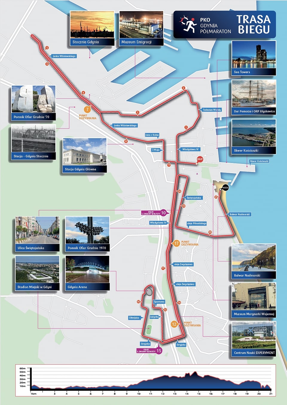 Przyszłoroczny PKO Gdynia Półmaraton będzie miał szczególny charakter – to część obchodów stulecia miasta. Biegaczy czeka szczególna oprawa i powrót na trasę z metą na środku plaży. Zawody odbędą się 25 kwietnia 2026 roku. Na trasie PKO Gdynia Półmaratonu biegacze będą mijali miejsca i budynki ważne w historii Gdyni. 10 tysięcy osób, bo na tylu zawodników liczą organizatorzy, wystartuje ze Skweru Kościuszki. Biegacze zmierzający na start PKO Gdynia Półmaratonu 2025. W tle „Dar Pomorza" i ORP „Błyskawica" (fot. Przemek Świderski / Sport Evolution)Jeśli biegacze będą chcieli myśleć o medalach Mistrzostw Polski, będą musieli jak najszybciej pobiec w kierunku ulicy Władysława IV i dalej Tadeusza Wendy. Po dwóch kilometrach biegu, półmaratończycy miną Muzeum Emigracji. 4. kilometr Pod koniec 4. kilometra trasy biegacze pobiegną obok Pomnika Ofiar Grudnia '70. Biegacze na alei Zwycięstwa (fot. Łukasz Recki / Sport Evolution) Trasa PKO Gdynia Półmaratonu prowadzi przez miasto, które ma swoją stuletnią już historię. I my chcemy tę historię pokazać światu. To miejsca, które były świadkami wydarzeń tragicznych, ale także sporo budynków i instytucji, które kształtują dzisiejszy charakter Gdyni jako miasta dynamicznego i nowoczesnego – mówi Maciej Stroiński, rzecznik prasowy PKO Gdynia Półmaratonu. Kolejne trzy kilometry to szybki bieg ulicą Janka Wiśniewskiego, z nawrotem w kierunku centrum miasta. Na siódmym kilometrze, na wysokości dworca kolejowego Gdynia Stocznia, zostanie zlokalizowany pierwszy punkt odżywiania. 8. kilometr – Gdynia Główna Kilometr dalej zawodnicy będą mijali stację kolejową Gdynia Główna. Trasa biegu prowadzi następnie ulicami Jana z Kolna, 3 Maja i ponownie Władysława IV. Tam, w okolicach półmetka trasy, na biegaczy czeka delikatny, ale dość długi podbieg, po którego pokonaniu będą mogli skorzystać z kolejnego punktu odżywiania (na 12 km trasy).Biegacze na trasie PKO Gdynia Półmaratonu 2025. (fot. Łukasz Recki / Sport Evolution) „Sportowe" kilometry Najbardziej „sportowe" kilometry trasy prowadzą obok Polsat Plus Areny Gdynia, siedziby Gdyńskiego Centrum Sportu oraz Stadionu Miejskiego. Gdy zawodnicy skończą kluczenie ulicami Sportową, Olimpijską i Stryjską, trasa biegu poprowadzi ich aleją Zwycięstwa. Najbardziej charakterystyczne miejsce na tym odcinku to Centrum Nauki EXPERYMENT (na 16. kilometrze).Punkt odżywiania na trasie PKO Gdynia Półmaratonu (fot. Łukasz Recki / Sport Evolution) Ostatnia „piątka", czyli wszystko co najlepsze Po minięciu 16. kilometra trasy, rozpoczyna się ok. 2-kilometrowy zbieg. To doskonałe miejsce, by nabrać sił na mocny finisz - zwłaszcza, że w połowie zbiegu czeka jeszcze trzeci, ostatni punkt odżywiania. Ostatnie trzu kilometry to „crème de la crème" PKO Gdynia Półmaratonu. Najpierw ulica Świętojańska, gdzie mimo krótkiego podbiegu biegaczy poniesie doping kibiców. PKO Gdynia Półmaraton 2025 na ulicy Świętojańskiej. (fot. Łukasz Recki / Sport Evolution)Tuż przy Urzędzie Miasta Gdyni biegacze skręcą w aleję Marsz. J. Piłsudskiego i znów pobiegną w dół, aż do Bulwaru Nadmorskiego im. Feliksa Nowowiejskiego. Trasa PKO Gdynia Półmaratonu 2026Meta PKO Gdynia Półmaratonu 2026 to gwarantowane emocje i niezapomniane przeżycia. Muzyka, konferansjerzy, światła i... plaża. Nie ma w Gdyni lepszego i bardziej symbolicznego miejsca do zakończenia rywalizacji od Plaży Miejskiej. Na piasku stanie cała infrastruktura, ale biegacze te ostatnie metry pokonają na specjalnych matach ułożonych na plaży. To w tym miejscu w 2020 roku finiszowali mistrzowie świata, a Kenijka Peres Jepchirchir łamała rekord świata kobiet w półmaratonie. Wśród mężczyzn zwyciężył wówczas Jacob Kiplimo, do którego należy z kolei aktualny rekord świata w półmaratonie. Przez wiele lat na Plaży Miejskiej finiszowali także uczestnicy legendarnych zawodów triathlonowych spod znaku IRONMAN. Mistrzostwa Polski na urodziny PKO Gdynia Półmaraton będzie w roku 2026 miał dodatkowy wymiar. Po raz pierwszy w historii w Gdyni odbędą się oficjalne 35. PZLA Mistrzostwa Polski w Półmaratonie, z dodatkowymi klasyfikacjami w kategoriach wiekowych. Polski Związek Lekkiej Atletyki postanowił, że rozda medale aż w sześciu grupach wiekowych: kobiety i mężczyźni 20-29 lat, kobiety i mężczyźni 30-39 lat, kobiety i mężczyźni 40-49 lat, kobiety i mężczyźni 50-59 lat, kobiety i mężczyźni 60-69 lat, kobiety i mężczyźni 70 lat i więcej. Każda osoba, która będzie chciała być kwalifikowana w mistrzostwach, będzie musiała przy rejestracji wyrazić zgodę na sklasyfikowanie w ramach czempionatu.Bezpłatna rejestracja będzie przepustką do podwójnego zapisania się w historii polskich biegów - z jednej strony możliwość zdobycia tytułu mistrza kraju, a z drugiej pojawienia się w oficjalnych statystykach prowadzonych przez Polski Związek Lekkiej Atletyki. Procedura będzie całkowicie bezpłatna i dobrowolna, a wiązać się z nią będą niedostępne wcześniej benefity. Od lat obserwujemy wydarzenia biegowe w Gdyni i cieszymy się, że w przyszłym roku zyskają one rangę mistrzostw kraju. Jestem przekonany, że PKO Gdynia Półmaraton w randze Mistrzostw Polski to jeszcze jeden świetny powód, by stanąć na starcie tej wyjątkowej imprezy - zauważa Marek Plawgo, wiceprezes Polskiego Związku Lekkiej Atletyki. Team Karolina vs. Team Krystian Na starcie pojawi się Krystian Zalewski - jeden z najlepszych polskich biegaczy długodystansowych ostatnich lat, wielokrotny zdobywca złotych medali mistrzostw Polski, srebrny medalista mistrzostw Europy na 3000 metrów z przeszkodami. Pod znakiem zapytania jest start Karoliny Nadolskiej - dwukrotnej olimpijki, rekordzistki Polski w półmaratonie i na 10 kilometrów. Karolina Nadolska (fot. Sport Evolution)Karolina i Krystian