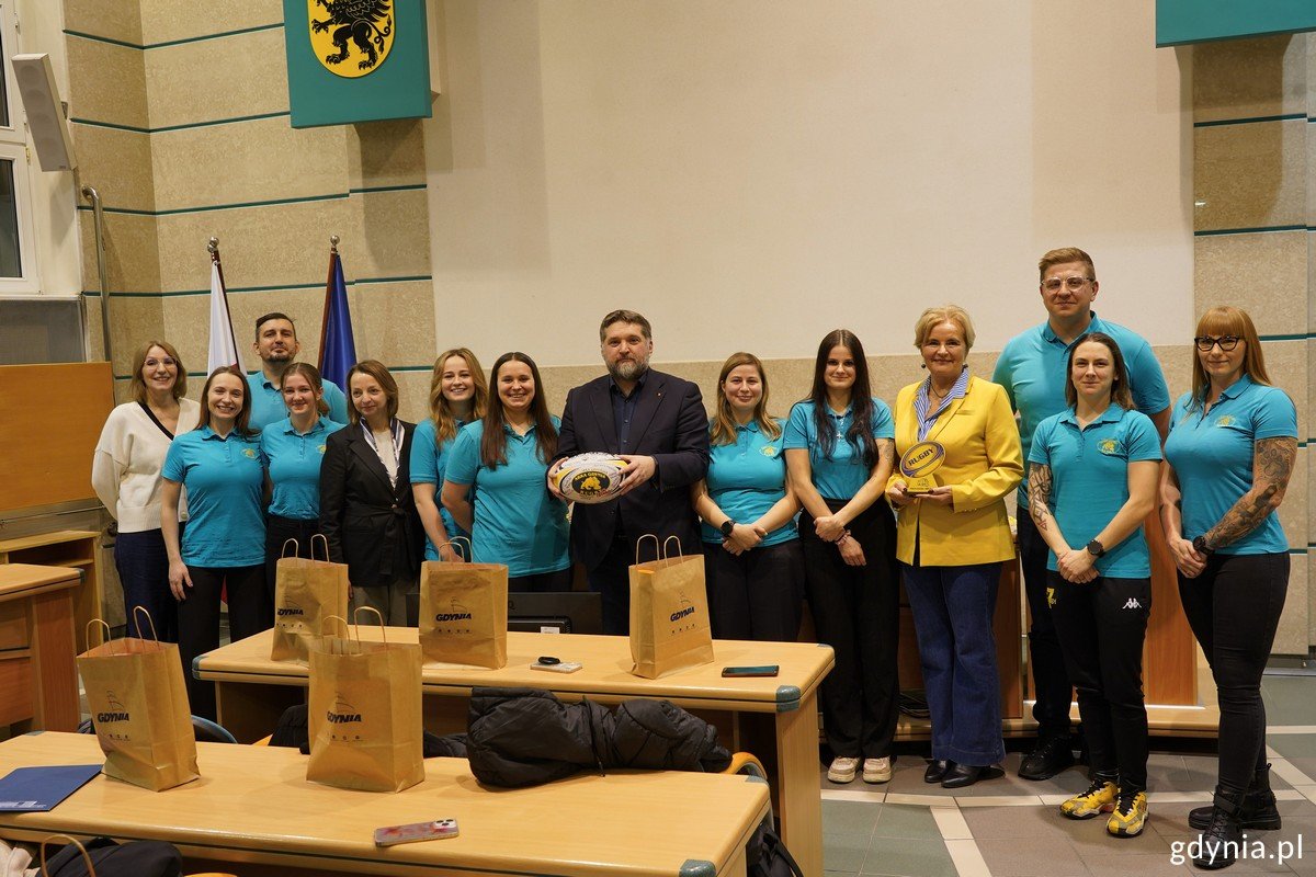 Rugby Arka Gdynia sekcja damska to drużyna reaktywowana w 2022 roku, po 13 latach przerwy. Klub jest jednym z nielicznych w Polsce, który może się pochwalić tak dużą liczbą trenującej młodzieży. W ciągu zaledwie dwóch lat drużyna awansowała do ekstraligi rugby 7 kobiet w Polsce i zajmuje obecnie pewne czwarte miejsce w klasyfikacji generalnej w Polsce. Do reaktywacji sekcji damskiej Rugby Arka Gdynia doszło dzięki zaangażowaniu trenera Marka Skindela oraz Sary Kamińskiej, zawodniczki i kierowniczki drużyny. Potem do zespołu dołączył trener Mateusz Moroz i tak powstała sekcja damska czynnie trenująca rugby w Gdyni.W piątek, 12 grudnia zawodniczki z trenerami odwiedziły gdyński magistrat, gdzie spotkały się z przewodniczącym Rady Miasta Gdyni Tadeuszem Szemiotem, radnymi Larysą Kramin i Teresą Bysewską oraz Jagną Ogonowską z Gdyńskiego Centrum Sportu. Rozmawiano o sukcesach klubu oraz możliwościach podjęcia wspólnych działań. Wideo: Przemysław Dopke i klub Rugby Arka Gdynia, montaż: Przemysław Dopke Bardzo się cieszę, ponieważ to są silne, zdeterminowane kobiety, z niesamowitą pasją do sportu wcale niełatwego, mocno zdominowanego przez mężczyzn, dlatego bardzo je wspieram, cieszę się, że udało nam się spotkać w takim gronie – mówi Larysa Kramin, radna Gdyni. Reaktywacja po 13 latach Drużyna Rugby Arka Gdynia sekcja damska została reaktywowana po 13 latach przerwy – w 2022 roku. Nasza sekcja damska działa od blisko czterech lat. Dlaczego wybrałyśmy rugby? Bo to jest dość rodzinny sport i przede wszystkim uczy dyscypliny – opowiada Sara Kamińska, zawodniczka klubu Rugby Arka Gdynia.Aktualnie mamy w drużynie 25 zawodniczek, ale sekcja stale się rozwija. Dlatego serdecznie zapraszamy na nasze treningi kobiety i dziewczyny w każdym wieku – dodaje trener Rugby Arki Gdynia Mateusz Moroz. W ciągu zaledwie dwóch lat sekcja damska awansowała do ekstraligi rugby 7 kobiet w Polsce i zajmuje pewne czwarte miejsce w klasyfikacji generalnej w kraju. Przynajmniej raz w roku organizujemy turniej klasy mistrzostw Polski kobiet rugby 7, który cieszy się ogromnym zainteresowaniem i jest chwalony nie tylko w Gdyni, ale w całej Polsce. Nasze zawodniczki reprezentują zarówno kadry młodzieżowe, gdzie są czołowymi zawodniczkami, jak i kadry seniorskie, gdzie zdobywają medale – tłumaczy trener Rugby Arki Gdynia Marek Skindel. Dwie zawodniczki z gdyńskiego klubu były powołane do kadry Polski rugby plażowego, jedna z nich czynnie przyczyniła się do zdobycia mistrzostwa Europy w tym sporcie. Plany na przyszłość Klub planuje założyć sekcję u-16, ale potrzebuje wsparcia w postaci boiska treningowego. W przyszłym sezonie do drużyny ma też dołączyć zawodniczka ze światowej czołówki rugby, aby wesprzeć dziewczyny w zdobywaniu medali dla Gdyni.Cele na sezon 2025/26 to m.in.: medal Mistrzostw Polski Kobiet Rugby 7, budowanie młodzieżowych grup u-16 oraz wystawienie dwóch drużyn, które pokażą potęgę i mocny rozwój damskiej sekcji w Gdyni.Więcej informacji o drużynie Rugby Arka Gdynia sekcja damaska znajdziemy na Facebooku. Galeria zdjęć Pobierz galerię Zawodniczki Rugby Arka Gdynia z wizytą w Urzędzie Miasta Gdyni (fot. Magda Śliżewska) Pobierz zdjęcie Od prawej stoją: radna Teresa Bysewska, przewodniczący Rady Miasta Gdyni Tadeusz Szemiot, radna Larysa Kramin i Jagna Ogonowska z Gdyńskiego Centrum Sportu (fot. Magda Śliżewska) Pobierz zdjęcie Trenerzy sekcji damskiej (od prawej): Marek Skindel i Mateusz Moroz (fot. Magda Śliżewska) Pobierz zdjęcie Od prawej stoją: radna Larysa Kramin, przewodniczący Rady Miasta Gdyni Tadeusz Szemiot, radna Teresa Bysewska i Jagna Ogonowska z Gdyńskiego Centrum Sportu (fot. Magda Śliżewska) Pobierz zdjęcie Zawodniczki Rugby Arka Gdynia z wizytą w Urzędzie Miasta Gdyni (fot. Magda Śliżewska) Pobierz zdjęcie Zawodniczki Rugby Arka Gdynia z wizytą w Urzędzie Miasta Gdyni (fot. Magda Śliżewska) Pobierz zdjęcie Przewodniczący Rady Miasta Gdyni Tadeusz Szemiot, radne Larysa Kramin i Teresa Bysewska oraz Jagna Ogonowska z Gdyńskiego Centrum Sportu w towarzystwie zawodniczek i trenerów (fot. Magda Śliżewska) Pobierz zdjęcie Warunki pobierania Wszelkie prawa do zdjęć lub grafik prezentowanych w ramach portalu, należą do Prowadzącego portal lub do podmiotów z nim współpracujących i podlegają ochronie prawnej. Prowadzący portal zezwala na kopiowanie i przedstawianie utworów jedynie w celach niekomercyjnych oraz pod warunkiem zachowania go w oryginalnej postaci i zachowaniem kontekstu tematu, do którego zostało wykorzystaneprzez redakcję gdynia.pl. Opublikowane materiały powinny zawsze zawierać źródło, czyli adres strony www.gdynia.pl. Na publikowanie utworów w innych celach wymagana jest zgoda właściciela strony czyli Prowadzącego portal. Opublikowano: 15.12.2025 14:45 Autor: Magdalena Śliżewska (magdalena.slizewska@gdynia.pl) Zmodyfikowano: 15.12.2025 15:45 Zmodyfikował: Jakub Winiewski
