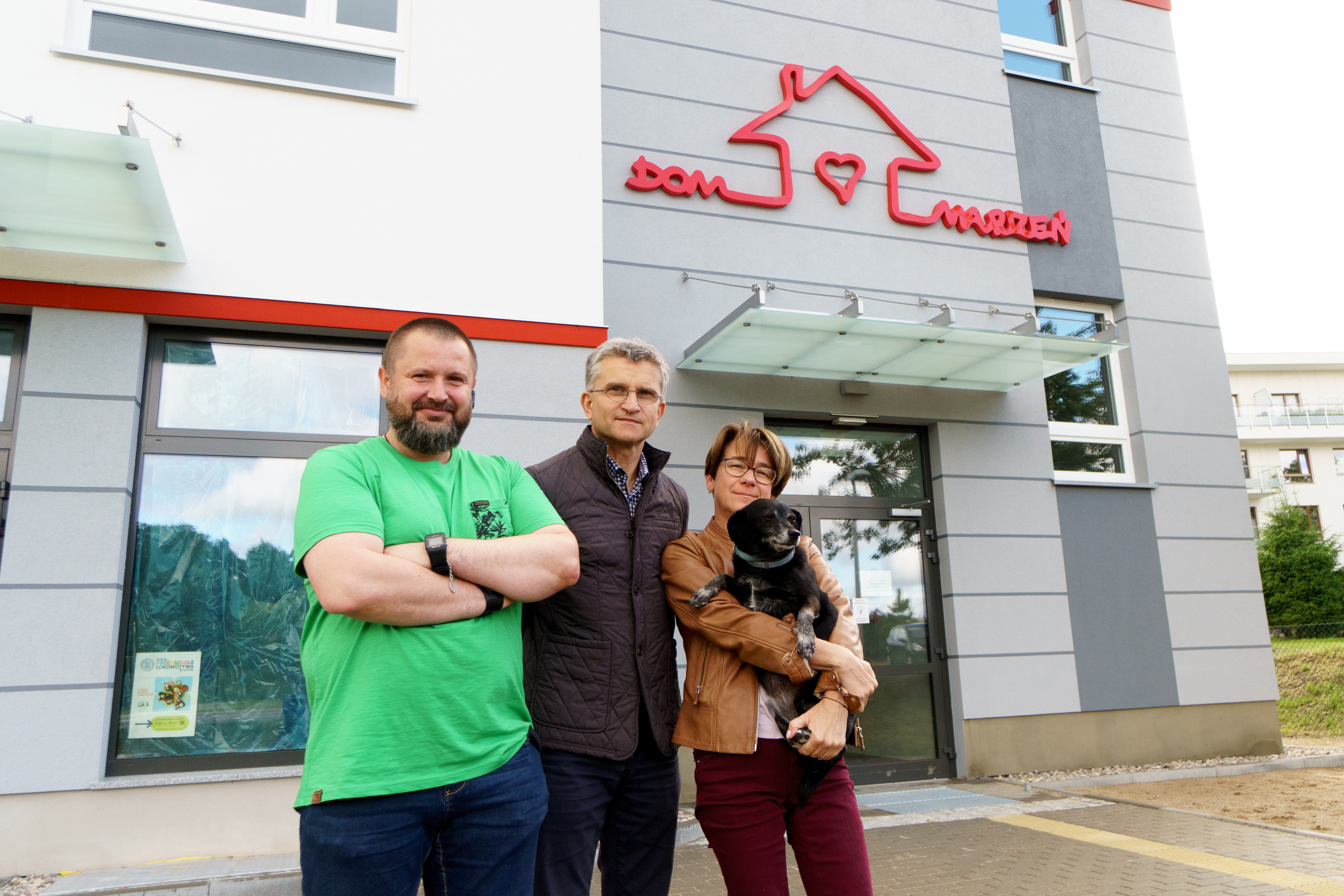 Mówią, że gdyby nie ich córka, nie byłoby Domu Marzeń. Katarzyna i Marek Karczewscy, rodzice 27-letniej dziś Marty, najpierw postanowili zawalczyć o jej szczęście. Później, z innymi rodzicami dzieci z niepełnosprawnościami, założyli stowarzyszenie, by z czasem przekształcić je w Gdyńską Fundację „Dom Marzeń”. W roku 2020 przy ul. Strzelców stanął – wybudowany przez nią - Dom Marzeń: miejsce, w którym dorosłe osoby z niepełnosprawnościami mogą uczyć się samodzielności, mogą się spełniać, mogą po prostu być sobą. Dziś z cyklem „Twarze Pomagania” gościmy w Małym Kacku. Kilkanaście lat temu do Katarzyny Karczewskiej zadzwonił znajomy – po radę, po pomoc. Chodziło o jego znajomą, matkę dorosłej córki z niepełnosprawnością. Kobieta niepokoiła się o to gdzie jej dziecko zamieszka, gdy zabraknie matki. - Moja Marta, również z niepełnosprawnością, miała wówczas kilkanaście lat. Martwiły mnie kwestie związane z jej dorastaniem: integracja, samodzielność, seksualność. Angażowałam się w sprawy osób z niepełnosprawnościami, ale mieszkalnictwem w jakiś szczególny sposób się nie zajmowałam – przyznaje Katarzyna Karczewska. – Tak czy inaczej, umówiłam się na spotkanie z wiceprezydentem Michałem Guciem by zapytać, jak miasto może pomóc osobom takim jak pani, o której mówił znajomy. Pan prezydent skontaktował mnie z panią Alicją Gontarz, kierownik Biura Pełnomocnika ds. Osób z Niepełnosprawnością. Zorganizowała spotkanie rodziców dzieci z niepełnosprawnościami, przyszło ponad sto osób! Ktoś zaproponował zawiązanie stowarzyszenia. Zostałam wybrana na prezesa. I tak to się zaczęło…. Katarzyna i Marek Karczewscy są rodzicami czterech córek. Marta urodziła się z niepełnosprawnością. Od pierwszych wspólnych dni myśleli co mogą robić, żeby żyła zwyczajnie, żeby się rozwijała. Momentem przełomowym stał się kryzys, jaki Marta przeszła w szkole integracyjnej. - Dzieci bardzo Martę lubiły, bo jest wesoła i pogodna. Ale kiedyś uciekła ze szkoły, co jest absolutnie wbrew jej naturze – wspomina pani Katarzyna. - Przestała jeść. Cały czas mówiła że jest głupia i pisze bazgroły. Błąd systemu: ktoś założył, że osoba z umiarkowaną niepełnosprawnością nie będzie zdawała sobie sprawy z tego, że ma inne książki niż koleżanka z ławki, że nie napisze tak ładnie jak ona. W przypadku Marty integracja kompletnie się nie sprawdziła a ja, jak wielu rodziców, poczułam się przepracowana i zmęczona. Płakałam, biłam się z myślami: czy chcę na siłę utrzymać dziecko w klasie integracyjnej, czy może jednak chcę, żeby moja córka była szczęśliwa. Zdecydowaliśmy z mężem, że ma być szczęśliwa. Gdy powiedziałam Marcie, że nie pójdzie więcej do szkoły, puścił cały stres. Zrozumiałam, że moje dziecko doskonale czuje i wie, że jest inne, że nie osiągnie pewnych rzeczy i że nie jest jej dobrze w środowisku, w którym sobie nie radzi. Katarzyna Karczewska z córką Martą na gali konkursu "Gdynia bez barier", rok 2019 // mat. prasowe Marek Karczewski: - Swego czasu Marta chodziła w Sopocie na zajęcia pozalekcyjne. Warunki nie najlepsze, ale osoby z niepełnosprawnościami, w swoim gronie, były tam szczęśliwe. To był ich czas, ich szczęście. Nie liczyły się mury czy wystrój tylko to, że mogą być ze sobą. Katarzyna Karczewska mówi, że matce takiej jak ona - bezwarunkowo wspieranej przez najbliższych nie pozostaje nic innego, jak tylko walczyć o swoje dziecko. A że i ona, i jej mąż czują wielką potrzebę pomagania, chcą robić coś dla innych – to dlaczego mieliby zamknąć się w swoich czterech ścianach?Stąd już tylko krok do współdziałania z innymi rodzicami. Wspólne rozmowy dają pomysły i siłę do działania. Pikniki, wycieczki, wyjścia do teatru, kina czy na mecze, bale karnawałowe, wspólne świętowanie urodzin… Katarzyna: - Gdy zaczęliśmy chodzić na mecze koszykówki, na trybunie siedziała nasza grupa, obok były puste krzesełka i dopiero gdzieś dalej reszta kibiców. Dziś, po tych wszystkich latach, siedzimy obok siebie, przybijamy sobie piątki.Marek: - Bardzo ważne jest to, że rodzice się uaktywnili. Wcześniej, skupieni na opiece nad dzieckiem, popadali w marazm, stawali się apatyczni. A tu się nagle okazało, że można wyjść razem na miasto, obejrzeć wspólnie spektakl, wziąć udział w ciekawym projekcie. Matki, które wcześniej były zwyczajnie zmęczone, dzięki miejscom takim jak „Dom Marzeń”, dzięki opiece wytchnieniowej wreszcie mają czas dla siebie. Mogą pomyśleć o urlopie, o pracy. Od lewej: Grzegorz Jażdżewski, Marek Karczewski i Katarzyna Karczewska przed Domem Marzeń // fot. Aleksander TrafasW głowach rodziców cały czas była myśl o stworzeniu dla dorosłych osób z niepełnosprawnościami miejsca, które będzie ich, za które będą odpowiedzialni, w którym będą się czuli u siebie. W którym będą bezpieczni, gdy zabraknie rodziców. Z czasem, gdy idea budowy domu nabrała realnych kształtów, powstała Gdyńska Fundacja „Dom Marzeń” – z Katarzyną Karczewską jako prezesem i Markiem Karczewskim jako członkiem zarządu. - Chcieliśmy stworzyć miejsce wśród ludzi, z łatwym dojazdem, żeby nasi dorośli niepełnosprawni mogli być aktywni, samodzielni – mówi Katarzyna Karczewska. A Marek Karczewski dodaje: - Nabyliśmy działkę przy ul. Strzelców w Małym Kacku, w centrum osiedla mieszkaniowego. Gdy trwała budowa, z pytaniem o możliwość współpracy zgłosiło się do nas przedszkole – i dziś działa na parterze budynku, na zasadach komercyjnych. Z kolei gmina Gdynia zasygnalizowała potrzebę uruchomienia środowiskowego domu samopomocy. I ŚDS „Dom Marzeń” działa na pierwszym piętrze. Dwie górne kondygnacje przeznaczyliśmy na mieszkania wspierane dla osób z niepełnosprawnościami.