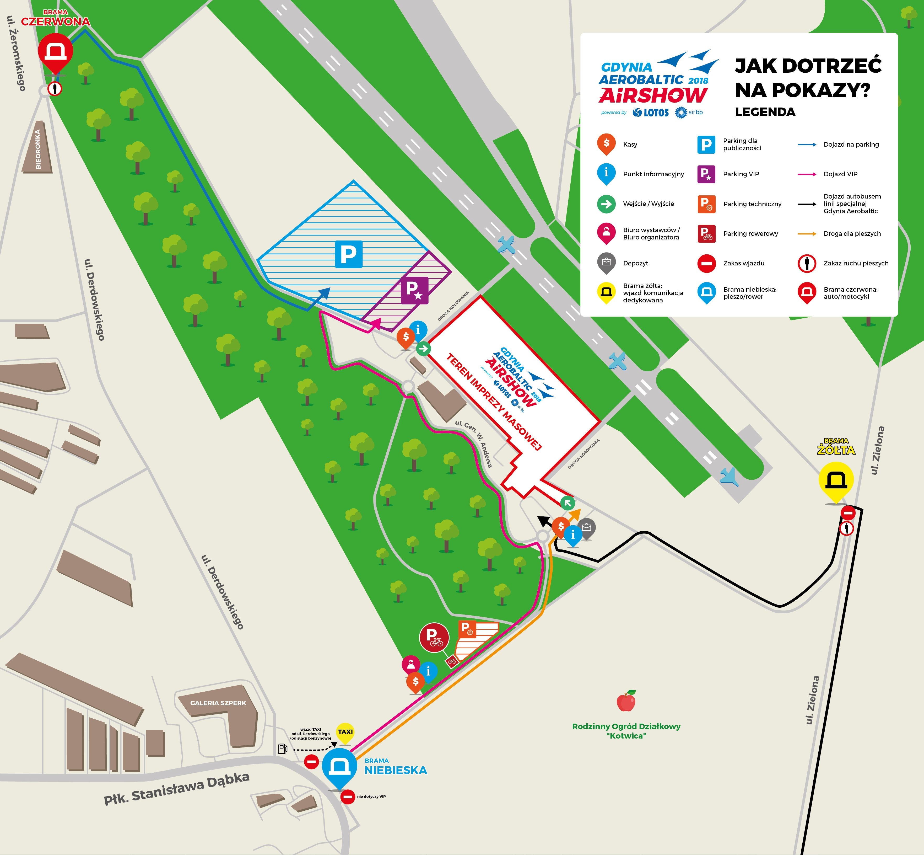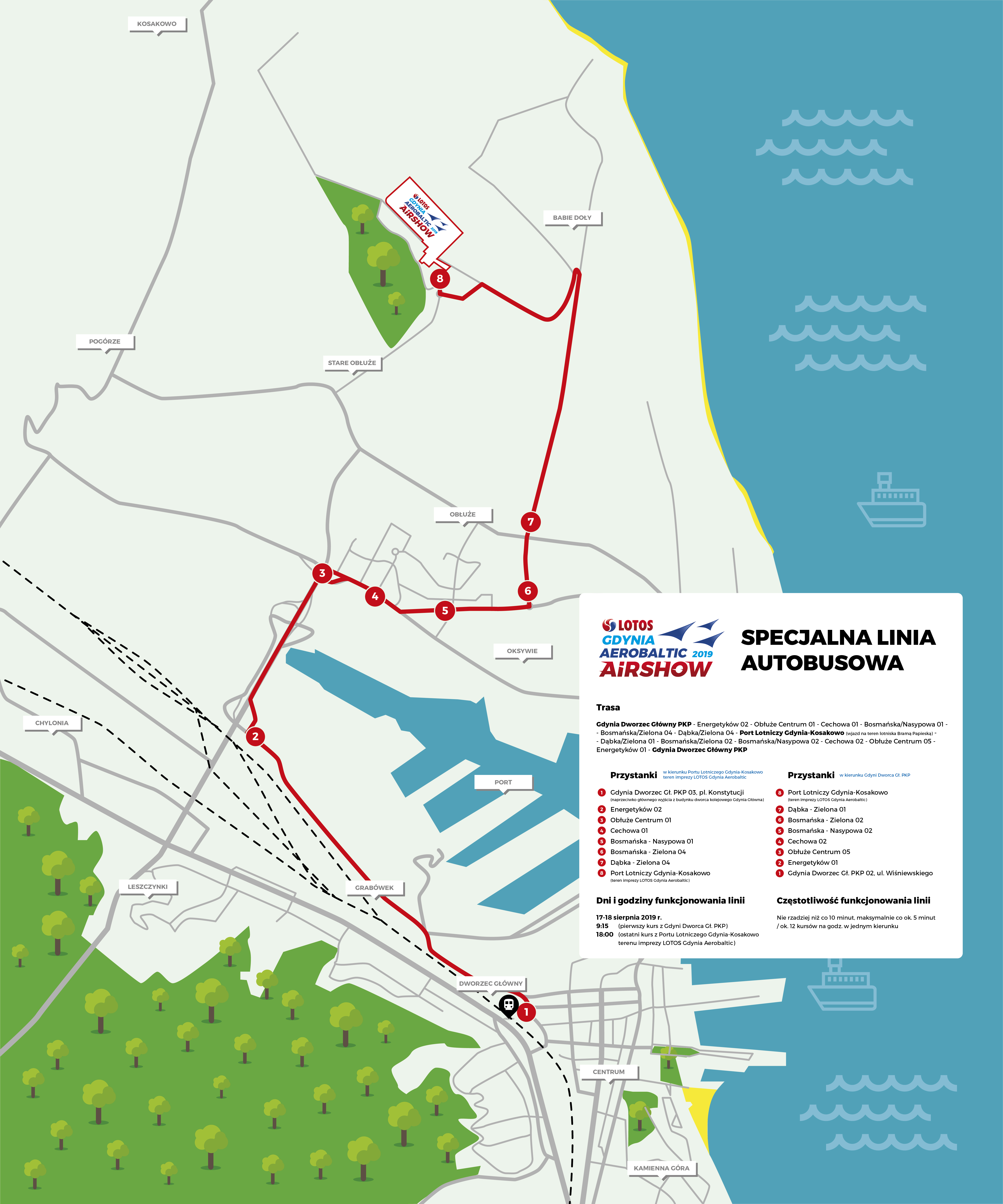 W ciągu trzech dni na gdyńskiej Plaży Śródmieście i na lotnisku Gdynia-Kosakowo zaprezentuje się ponad 100 samolotów oraz śmigłowców. Wśród nich maszyny m.in. z: USA, Arabii Saudyjskiej, Ukrainy i Szwecji. Ogromną reprezentację statków powietrznych szykuje również Wojsko Polskie. Tegoroczna edycja pokazów lotniczych LOTOS Gdynia Aerobaltic to największe pokazy lotnicze w Polsce i jedne z największych w tej części Europy. Poprzednia edycja imprezy zgromadziła ponad 300 tysięcy widzów. W tym roku widowisko zapowiada się jeszcze bardziej okazale.- Gdynia Aerobaltic to fascynujące widowisko. Czeka nas podniebny spektakl, w którym w role głównych bohaterów wcielą się piloci światowego formatu. Ich umiejętności, doświadczenie i odwaga są gwarancją brawurowych lotów i niezapomnianych wrażeń. To wydarzenie dla całych rodzin. Wierzę, że po raz kolejny przeżyjemy w Gdyni fantastyczne emocje - mówi Wojciech Szczurek, prezydent Gdyni. Na piątek (16.08) i sobotę (17.08), w godzinach od 19:30 do 22:30, zaplanowano bezpłatne pokazy wieczorno-nocne na Plaży Śródmieście, podczas których widzowie będą obserwować skoczków spadochronowych, motoparalotniarzy i samoloty z przymocowaną do skrzydeł pirotechniką. W sobotę i niedzielę (18.08) warto odwiedzić lotnisko Gdynia-Kosakowo, gdzie od 10:00 do 17:00 czekać będzie cała masa atrakcji. Wśród największych gwiazd LOTOS Gdynia Aerobaltic są ukraiński Su-27, szwedzki Viggen i występująca po raz pierwszy w Polsce grupa z Arabii Saudyjskiej – Saudi Hawks. Na widzów czekać będą nie tylko atrakcje lotnicze. Jedną z nowych stref będzie Aerolandia, a więc rozbudowana strefa rozrywki, skierowana do rodzin z dziećmi, w której będzie można skorzystać z przygotowanych atrakcji, warsztatów, Akademii Młodego Pilota, namiotu chillout dla rodziców, gier i zabaw sportowych. Szczegółowy program LOTOS Gdynia Aerobaltic 2019 można znaleźć na stronie aerobaltic.pl. Tam również znajdują się informacje o biletach, które uprawnią do wejścia na lotnisko. Bezpłatny autobus na lotnisko Przy lotnisku przygotowano strefy parkingowe, jednak najlepszym rozwiązaniem powinien być dojazd bezpłatnym autobusem, regularnie kursującym z okolic dworca PKP Gdynia Główna. Przystanki na trasie linii Lotos Gdynia AerobalticKierunek LOTOS Gdynia Aerobaltic· Gdynia Dworzec Gł. PKP 03· Energetyków 02· Obłuże Centrum 01· Cechowa 01· Bosmańska - Nasypowa 01· Bosmańska - Zielona 04· Dąbka - Zielona 04· Lotos Gdynia Aerobaltic 01Kierunek Gdynia Dworzec Gł. PKP· Lotos Gdynia Aerobaltic 01· Dąbka - Zielona 01· Bosmańska - Zielona 02· Bosmańska - Nasypowa 02· Cechowa 02· Obłuże Centrum 05· Energetyków 01· Gdynia Dworzec Gł. PKP 02 Pierwszy kurs o 9:15, ostatni o 18:00. Autobus będzie kursował co około 5 minut. Infolinia Organizatorzy uruchomili na czas pokazów specjalną infolinię, pod którą można uzyskać dodatkowe informacje na temat LOTOS Gdynia Aerobaltic 2019. Opublikowano: 14.08.2019 15:13 Autor: Paweł Marszałkowski (pawel.marszalkowski@gdyniasport.pl) Zmodyfikowano: 14.08.2019 15:57 Zmodyfikował: Agnieszka Janowicz