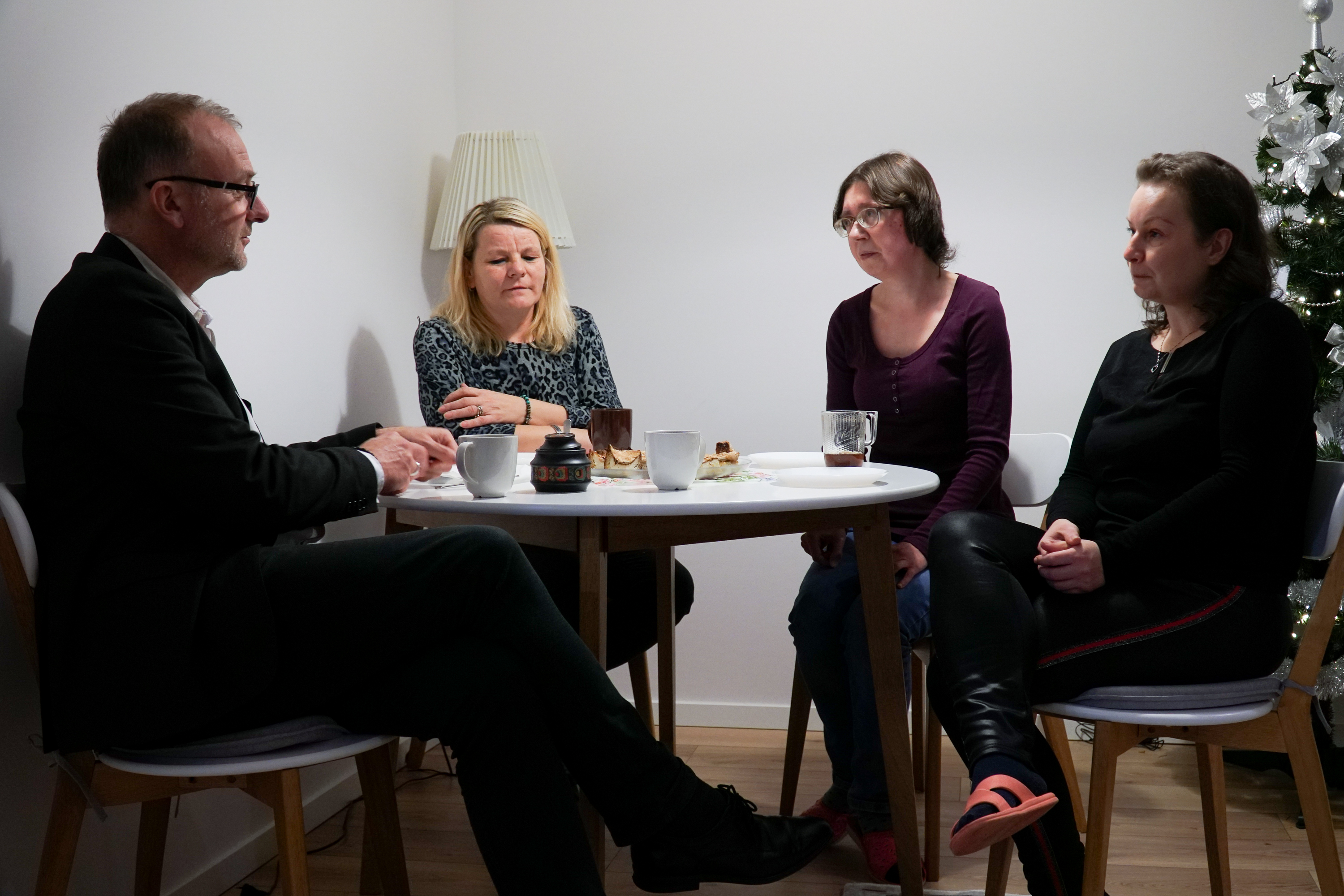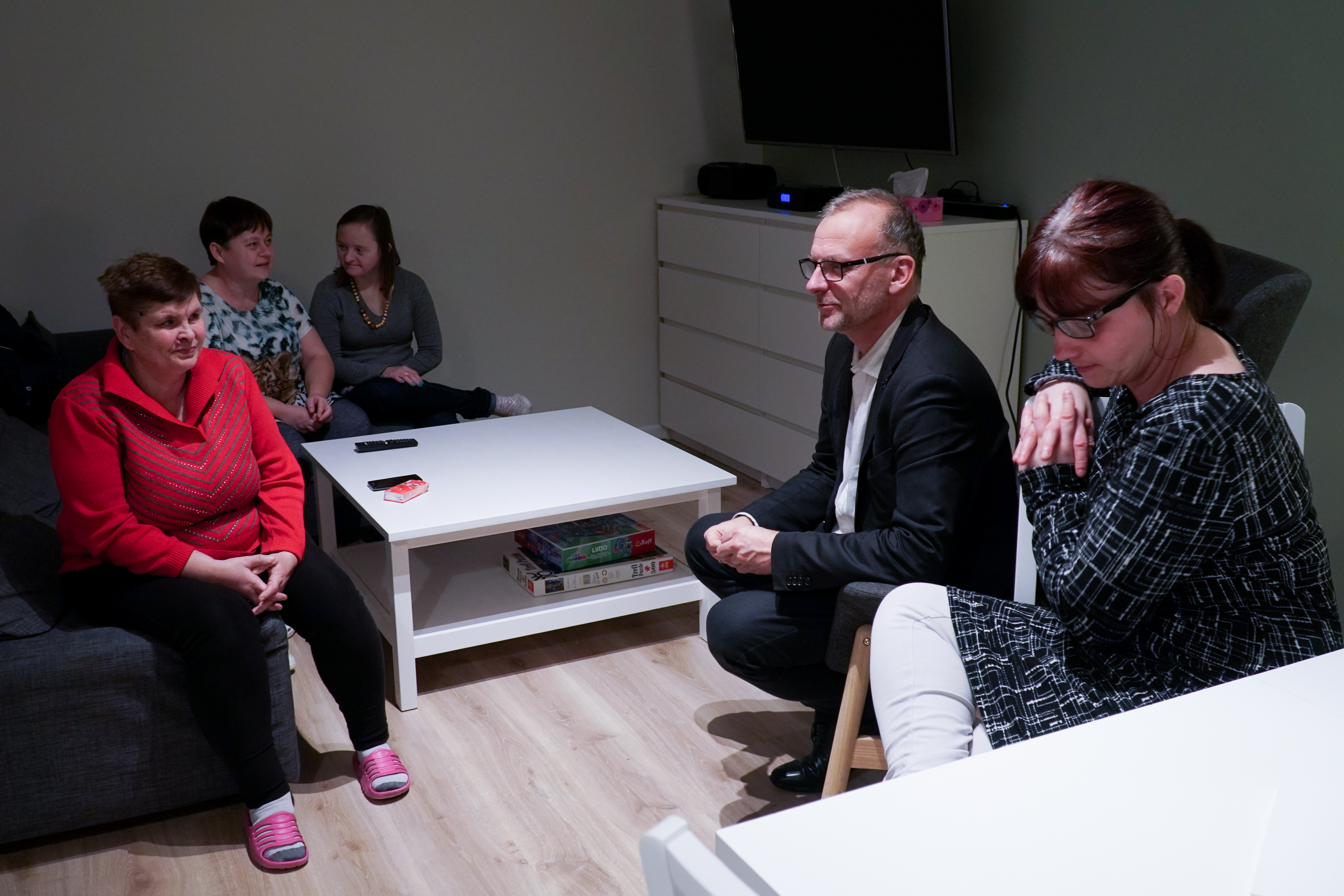 Michał Guć, wiceprezydent Gdyni ds. innowacji, z wizytą w jednym z gdyńskich mieszkań chronionych u pań: Oli, Marzeny, Eli i Ani // fot. Aleksander Trafas