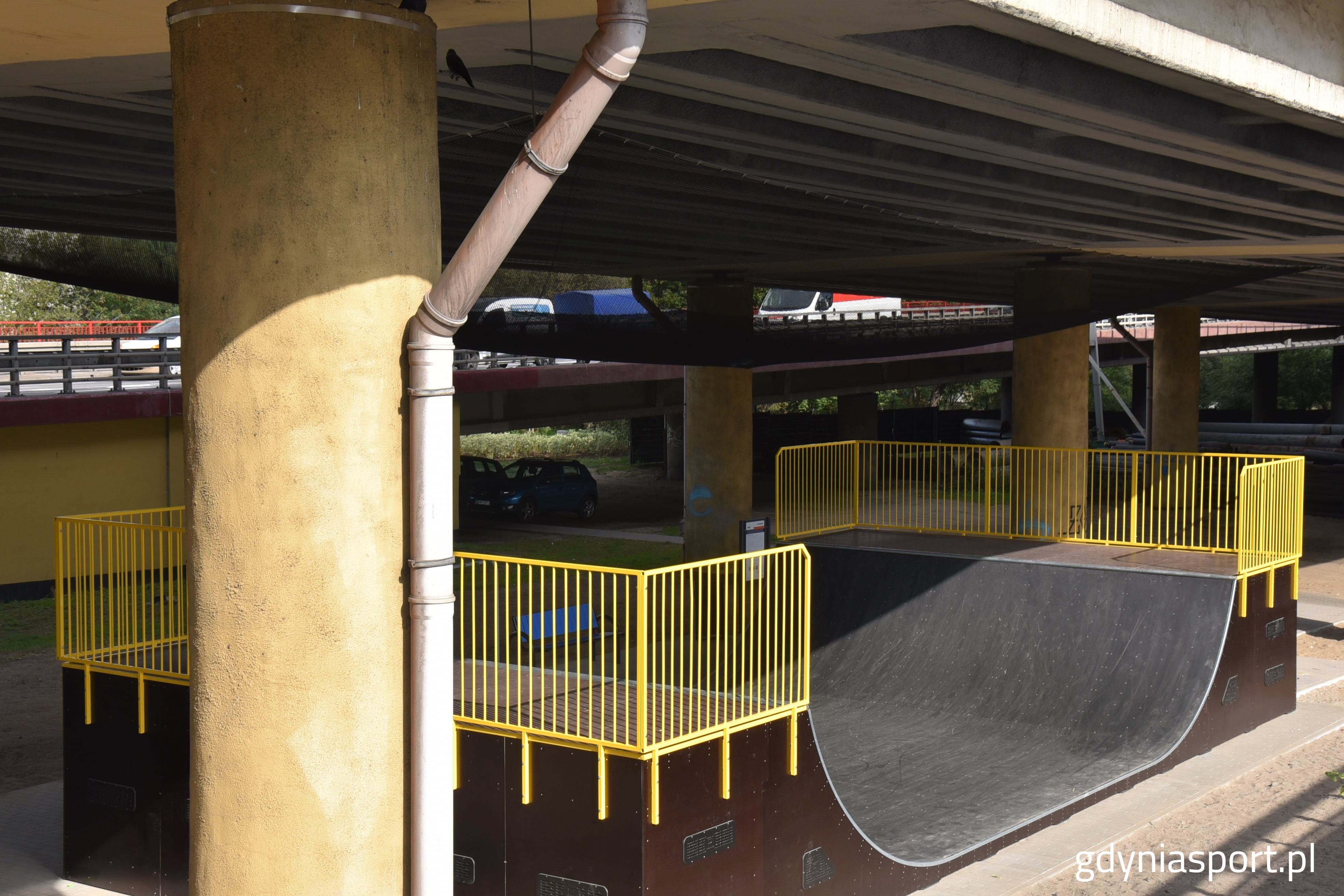 W Gdyni powstała nowa miejscówka dla fanów jazdy na desce, rolkach czy BMX. Mowa o klimatycznym skateparku wklejonym między filary Estakady Kwiatkowskiego, naprzeciwko przystanku autobusowego Morska-Estakada. To zwycięska inwestycja z Budżetu Obywatelskiego 2017, której autorem są Paweł Musiał oraz Łukasz Strzałkowski.- W maju tego roku oddaliśmy w ręce mieszkańców park przy ul. Dantyszka, a od kilku dni gdynianie mogą korzystać ze wspaniałego skateparku. W okolicy można więc spędzić czas na wiele sposobów, również aktywnie. To miejsce, które znakomicie wpisuje się w otoczenie i mam nadzieję, że cieszyć się będzie dużą popularnością, przede wszystkim wśród młodych mieszkańców naszego miasta – przekonuje Marek Łucyk, wiceprezydent Gdyni ds. rozwoju.To kolejny tego typu obiekt w Gdyni – mieście, które w ciągu ostatnich kilkunastu miesięcy gościło finały mistrzostw Polski w jeździe na deskorolce oraz rolkach agresywnych. Tym razem wielbiciele flipów, grabów czy grindów otrzymali do dyspozycji obiekt o powierzchni około 137 metrów kwadratowych.- Najważniejszym elementem skateparku jest rampa tzw. half pipe o wymiarach 13,05 na 6,10 metrów i wysokości 180 cm - mówi dyrektor Gdyńskiego Centrum Sportu Przemysław Dalecki. I dodaje: - Aby użytkownicy czuli się pewnie na górnych pomostach, otoczyliśmy je z trzech stron stalowymi barierkami.Elementy jezdne są wykonane ze sklejki laminowanej wyłożone matą HPL o gr. 6 mm o nieśliskiej i wygłuszającej powierzchni. Przy rampie znajdują się elementy tzw. małej architektury: ławki, stojaki na rowery i ubrania, tablica informacyjna z regulaminem oraz kosz na śmieci.Inwestycja została realizowana w ramach Budżetu Obywatelskiego 2017. Jej koszt wyniósł prawie 305 tysięcy złotych.- Zgłaszając projekt wspólnie z Łukaszem Strzałkowskim chcieliśmy, aby w Gdyni zbudowano skatepark, który będzie można użytkować przez cały rok, niezależnie od warunków pogodowych - zauważa autor projektu Paweł Musiał. I dodaje: - W toku postępowania zmodyfikowaliśmy pierwotne założenia i zdecydowaliśmy się postawić na jedną, dużą konstrukcję zamiast kilku mniejszych. Teraz z rampy będą mogli korzystać reprezentanci kilku „zajawek": deskorolki, rolek czy rowerów.Zgodnie z regulaminem obiektu osoby do 18. roku życia mogą korzystać z niego tylko pod opieką rodziców, opiekunów, bądź innych przedstawicieli ustawowych. Każdy z użytkowników zobowiązany jest do używania kasku ochronnego oraz ochraniaczy. Opublikowano: 16.09.2020 09:30 Autor: Michał Kozłowski (m.kozlowski@gdynia.pl)