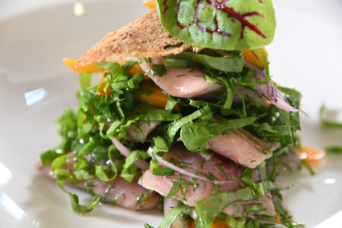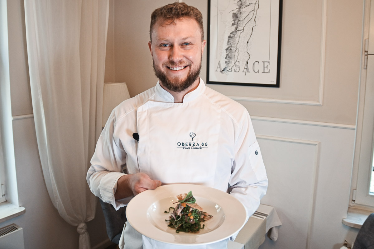 Rozsmakuj się #wGdyni* – wraz ze Szlakiem Kulinarnym Centrum Gdyni zapraszamy na cykl wędrówek po gdyńskich konceptach kulinarnych. Lato, urlop, wakacje – to idealna okazja, by skosztować tego, co mają do zaoferowania restauratorzy w mieście z morza i marzeń. Kulinarny szlak naszego miasta zachęca, by się w nim rozsmakować. Dołącz i ciesz się prostymi przyjemnościami. Przekonaj się, co, gdzie i jak gotują. Co piątek przedstawiamy kolejną restaurację. Dziś – Oberża 86. Jest takie miejsce w gdyńskim Śródmieściu, który potrafi zaskoczyć w bardzo nieoczywisty sposób. Idąc jedną z głównych ulic, którą zamyka imponująca panorama Sea Towers, mijając mniej lub bardziej modernistyczne kamienice, w pewnym momencie przenosimy się jakby do innego świata. Oto między kamiennymi kanionami ścian otwiera się ciekawa przestrzeń z maleńkim domkiem z czerwonej cegły. Nad całym otoczeniem koronę rozpościera ogromna lipa. "Oberża 86" mieści się w Domku Abrahama, w Śródmieściu Gdyni, w miejscu niezwykłym dla historii miasta. Fot. Zygmunt Gołąb Ten niepozorny budynek to zabytkowy Domek Abrahama, wybudowany na początku XX wieku. Tu właśnie zamieszkał w nim u schyłku życia wielki orędownik polskości Pomorza i działacz kaszubski, Antoni Abraham. Tutaj dziś mieści się restauracja, w której smaki Kaszub mieszają się z polską tradycją kulinarną, a wszystko wykończone jest w najlepszym, francuskim stylu. „Oberżą 86” zawiaduje Piotr Ciomek, szef kuchni i właściciel tej restauracji. Jak mówi o swoim pomyśle kulinarnym, restauracja kumuluje w sobie jego doświadczenia kulinarne, a więc miłość do kuchni polskiej, połączoną z tym, co wyniósł z domu babci, czyli kuchnią kaszubską. Wszystko to spina wieloletnim, mimo młodego wieku, doświadczeniem, nabytym zarówno w Polsce, jak i we Francji, w pracy z najlepszymi, uhonorowanymi gwiazdkami Michelin szefami kuchni. "Oberża 86" zachwyca wysmakowanym, historycznym wnętrzem. Fot. Zygmunt Gołąb - Rdzeniem naszej kuchni jest polska tradycja kulinarna. Do tego wkomponowane są fajne smaki, ciekawostki kaszubskie i to wszystko jest wykończone techniką francuską, w której używamy m.in. dużo masła klarowanego, wszelkiego rodzaju wywarów – opowiada z pasją Piotr Ciomek. - Wszystko praktycznie robimy sami: od bułek, po knedle, kopytka, pyzy, pierogi. To wszystko daje świetny efekt, gdy smaki polskie i kaszubskie, podrasowane francuską techniką, lądują na talerzu. Wyglądają pięknie i mają świetny smak – podkreśla. Miks smaków i tradycji kulinarnych Dań łączących tradycję polską i kaszubską jest w menu wiele. Jednym z nich są pyzy z gęsiną. - Pyzy to typowo wielkopolskie danie, do tego kaszubska gęsina i sos na bazie demi glace, czyli na zredukowanym winie francuskim, a więc jest to już kuchnia francuska. To wszystko podajemy na sałatce z ogórka kiszonego – opowiada Piotr Ciomek. - Tych przykładów jest więcej. Jeśli chodzi o połączenie kuchni polskiej i francuskiej, to mamy np. kaszankę z borowikami w cieście francuskim z sosem na bazie musztardy francuskiej, która od lat jest naszym hitem – dodaje. Jednym z hitów "Oberży 86", daniem zamawianym niezwykle często, jest kaszanka z borowikami w cieście francuskim, podana z sosem na bazie musztardy francuskiej. Fot. arch. prywatne. W menu „Oberży 86” znajdziemy również m.in. bogatą ofertę przystawek, również sezonowych, jak np. podsmażone na maśle kurki, podane z musem z homara; z zup – m.in. zabielaną zupę rybną aromatyzowaną koprem. Z dań mięsnych: schabowy z kością z puree ziemniaczanym i młodą kapustą czy pół perliczki ze smażonymi ziemniakami oraz młodą marchwią. Menu uzupełniają również dania rybne oraz desery, a to, na co uwagę zwrócą koneserzy win, to rekomendacja konkretnego, wyselekcjonowanego wina przy każdym daniu. Restauracja oferuje ponad 50 etykiet, więc wybór jest spory, a rekomendacja przy konkretnym daniu zdecydowanie ułatwia wybór. Z rodziny o gastronomicznych tradycjach Piotr Ciomek profesjonalnie gotuje od 18 lat. Ukończył technikum gastronomiczne w Gdyni. Dzięki szkolnemu programowi w 2004 roku zakwalifikował się do wyjazdu na staż do restauracji Auberge de Glazics we Francji (miasteczko Plomodiern w Bretani). Tam szkolił się pod okiem szefa kuchni, Oliviera Bellin’a, który posiada 2 gwiazdki Michelin. Później wyjechał do Grecji, do 5-gwiazdkowego hotelu, gdzie miał okazję pracować z executive chefem słynnego francuskiego szefa kuchni Jacques’a Chibiois’a. W Polsce nadal szkolił się z francuskiej sztuki gotowania w restauracji Petit Paris, początkowo w Gdyni, później w Sopocie u Philipe Abrahama, z którym do tej pory się przyjaźni. - Od dziecka lubiłem spędzać czas w kuchni – mówi w rozmowie z portalem gdynia.pl - Tak naprawdę od pokoleń w mojej rodzinie jest tradycja gotowania. Mój pradziadek, jeszcze za czasów zaboru pruskiego, służył na pierwszych okrętach podwodnych jako kucharz. Moja babcia skończyła technikum gospodyń wiejskich w gdańskim Wrzeszczu i była świetną kucharką. Z kolei od strony mojego taty w każdym pokoleniu było dwóch rzeźników. Kto jest z Orłowa, to na pewno kojarzy zakład masarniczy mojego wujka. Więc cały czas to gotowanie w mojej rodzinie było – przyznaje szef „Oberży 86”. Mając takie tradycje rodzinne wybór kierunku zawodowego wydawał się prosty. Po latach okazało się, że była to słuszna decyzja. Jak mówi Piotr Ciomek, wspólnie z żoną udało im się wdrożyć pomysł na restaurację, mocno osadzoną w kaszubskich tradycjach, kaszubskiej tożsamości. Ogródek w "Oberzy 86" to niezwykle klimatyczne miejsce, zarówno w dzień, jak i po zmroku. Fot. arch. prywatne. - Mamy dużo stałych gości. To jest bardzo ważne, jeśli chodzi o gdyński rynek, bo nie możemy tu liczyć na taką liczbę turystów, jak Sopot cz