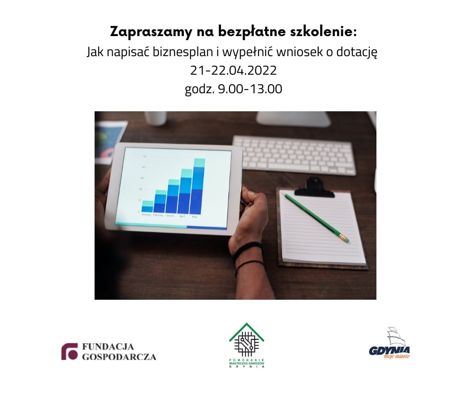 Masz problem z napisaniem biznesplanu? Chcesz starać się o dofinansowanie na założenie działalności gospodarczej? To bezpłatne szkolenie jest dla Ciebie! Zapisy na stronie TUTAJ lub telefonicznie pod nr: 58 622 60 17, 58 622 20 52. Serdecznie zapraszamy !Fundacja Gospodarcza zaprasza w kwietniu do skorzystania z naszych usług z zakresu: doradztwo zawodowe, doradztwo biznesowe, program Symfonia, biznes plan. Sprawdź nasz program i ofertę: https://www.pomorskiemiasteczkozawodow.pl/ Opublikowano: 12.04.2022 13:01 Autor: Magdalena Śliżewska (magdalena.slizewska@gdynia.pl) Zmodyfikowano: 12.04.2022 13:20 Zmodyfikował: Magdalena Śliżewska