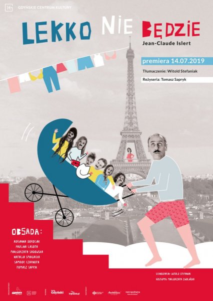 „Lekko nie będzie” autorstwa Jean-Claude Islert’a to klasyka francuskiej komedii. Opowieść o miłości i szukaniu szczęścia na przekór konwenansom, ale też o tolerancji dla własnych wybryków i hipokryzji w ocenianiu innych. Stateczny wykładowca matematyki i rozwodnik Édouard romansuje ze swoją studentką Sarah, jego była żona Marion jest zakochana w młodszym partnerze, a córka Julie przedstawia rodzicom „troszkę starszego” narzeczonego Marco. Ten wąsaty „artysta” okazuje się prawdziwym lekkoduchem. Tak zaczyna się prawdziwa lawina omyłek i absurdalnych sytuacji, komplikacji i rozwiązań, które kierują uwagę wszystkich w stronę… elektryka – imigranta ze wschodu, na którego można zrzucić wszystkie winy. Ta sytuacja prędzej czy później może przytrafić się również Tobie! Czas trwania: 120 min z przerwąBilety: 80 zł / 70 zł Preferencje wiekowe: 15+REALIZATORZYAutor: Jean-Claude IslertReżyseria, opracowanie muzyczne: Tomasz SaprykScenografia i tłumaczenie: Witold StefaniakKostiumy: Małgorzata ZwolińskaRuch sceniczny: Tomasz BorkowskiOBSADA:Édouard: Tomasz SaprykMarion: Małgorzata SadowskaSarah: Adrianna Dorociak / Paulina Lasota Julie: Paulina Lasota / Natalia Smagacka Marco: Sambor CzarnotaDominik, inżynier elektryk: Jarosław WojciechowskiKobieta w zaawansowanej ciąży: Agnieszka SkibickaWięcej informacji na stronie gck.gdynia.pl. Opublikowano: 08.06.2020 11:11 Autor: Paweł Jałoszewski (pawel.jaloszewski@gdynia.pl) Zmodyfikowano: 14.03.2022 15:46 Zmodyfikował: Paweł Jałoszewski