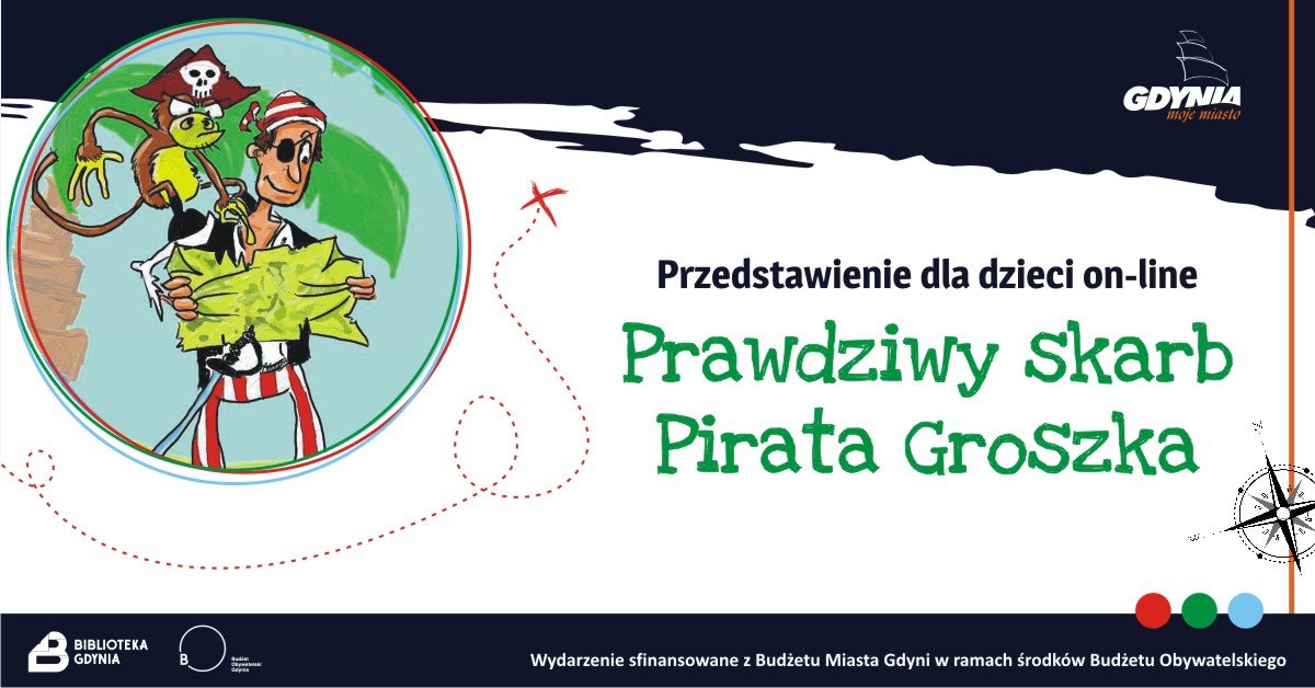 Biblioteka Chylonia zaprasza na pełną przygód opowieść w wykonaniu Teatru Wędrownego Włóczykij o tym, że dobroć jest cenniejsza od monet. Przedstawienie teatralne odbędzie się w Bibliotece Chylonia przy ul. Opata Hackiego 33, bez udziału publiczności. Transmisja na żywo na FB Biblioteki Gdynia. "Prawdziwy skarb Pirata Groszka" Groszek jest dobrym chłopakiem z nadmorskiej wioski. Pech chciał, że jego rodzinne strony zostały splądrowane przez piratów, a najbliżsi porwani przez nich w niewiadomym kierunku. Piraci żądają horrendalnego okupu, na który Groszka nie stać.Z pomocą przedszkolaków postanawia przebrać się za pirata i udając morskiego nikczemnika, “najgroźniejszego ze wszystkich”, dołączyć do załogi, odnaleźć bliskich i po cichu ich uwolnić. Niestety - stare morskie wygi szybko orientują się, że Groszek ich oszukuje. Ma za dobre serce, żeby być piratem. Wyśmiewają więc go i nabijają się z niego, a kiedy Groszek nie wypełnia ważnego rozkazu, kapitan statku, złowrogi Rudofutry, pozostawia go za karę na wyspie, na której żyją jedynie zazdrośnie strzegący swych tajemnic Indianie.Groszek jest załamany. Niedługo, bo niebawem wpada na trop pirackiego skarbu, dzięki któremu będzie mógł zapłacić okup. Niestety! Okazuje się, że na skarb ma też chrapkę kapitan Rudofutry, który okazuje się być niesłychanie wredną i złą małpą (to żadna inwektywa - kapitan naprawdę jest małpą).Oczywiście, nie ma strachu! Dzięki dzieciom wszystko skończy się dobrze. Groszek zdobędzie skarb i choć rychło straci go w dobrej sprawie, odzyska swoich najbliższych. Kapitan, choć zapadnie w wywołaną indiańską trucizną śpiączkę, obudzi się dzięki dzieciom i dobroci Groszka, przeżywając prawdziwą przemianę.Dobro zatriumfuje i okaże się, że piraci niesłusznie śmiali się z inności Groszka.Niejednego bowiem się od niego nauczą.Teatr Wędrowny “Włóczykij” tworzy spektakle kameralne, wciągające, mądre, tętniące emocjami i, co ważne dla małego widza, prawdziwie śmieszne.Bartosz Marciniak, który prezentuje przed dziećmi nasze opowieści, jest aktorem, komikiem, improwizatorem i mimem z kilkunastoletnim doświadczeniem. Od 2010 roku zajmuje się pracą z najmłodszą widownią. Ma na swoim koncie setki występów przed tą, jakże wymagającą, publicznością.Wydarzenie sfinansowane z projektu BO 2020 Biblioteka Chylonia. Opublikowano: 29.03.2021 10:52 Autor: Paweł Jałoszewski (pawel.jaloszewski@gdynia.pl) Zmodyfikowano: 29.03.2021 10:54 Zmodyfikował: Paweł Jałoszewski