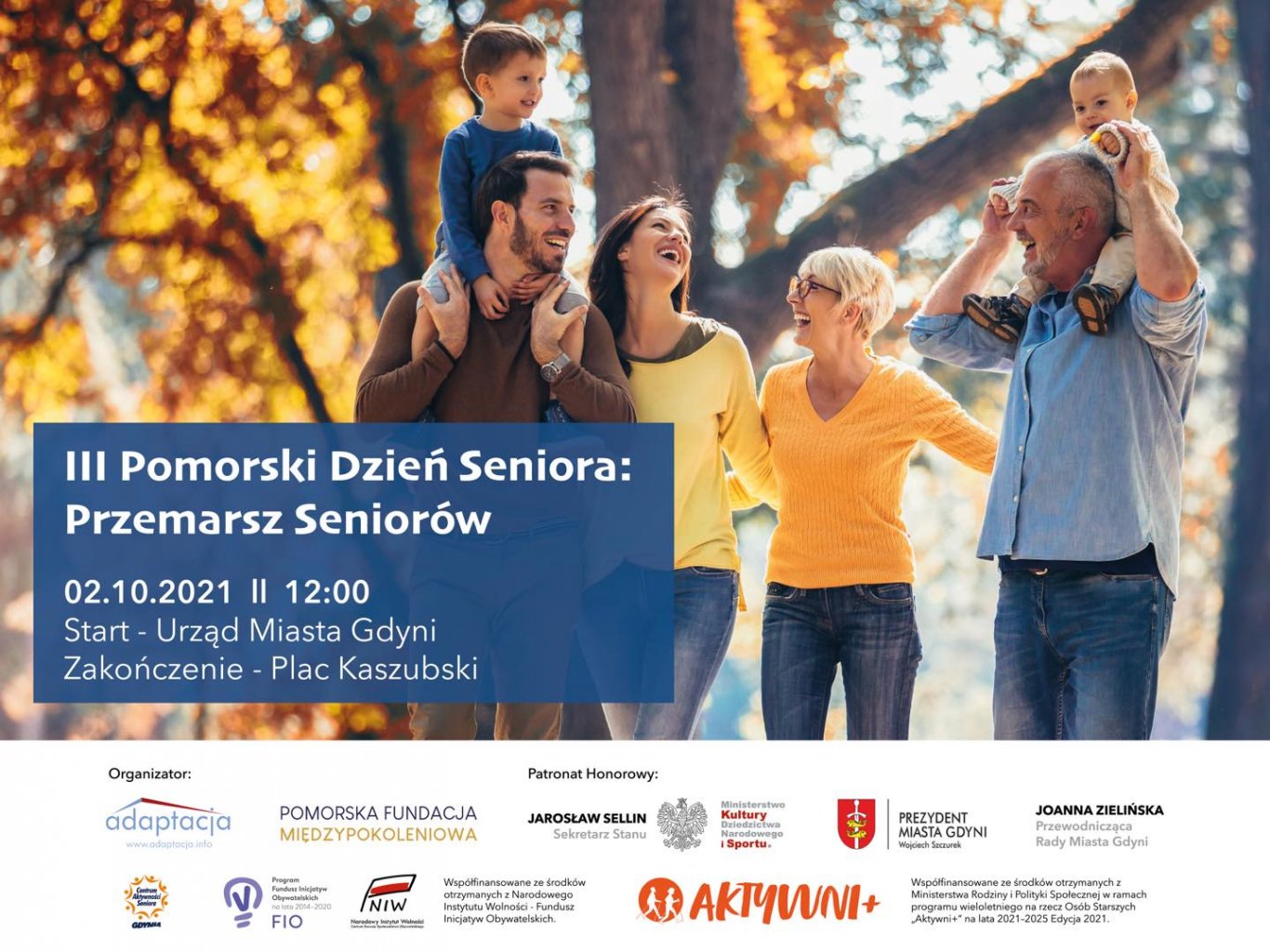 Pochód ulicami miasta będzie główną częścią organizowanych przez Fundację Adaptacja obchodów III Pomorskich Dni Seniora w Gdyni. Przemarsz odbędzie się 2 października 2021 o godzinie 12:00. Pochód wyruszy spod Urzędu Miasta Gdyni (al. Piłsudskiego 52/54) i w akompaniamencie orkiestry będzie się kierował na Plac Kaszubski. Organizatorzy zachęcają do przyjścia na miejsce startu 15 minut wcześniej - na miejscu rozdawane będą kolorowe balony oraz chorągiewki.Do udziału w marszu zaproszeni są nie tylko seniorzy, ale także przedstawicieli młodszych pokoleń. Mile widziani są wszyscy, którzy uważają, że działania na rzecz seniorów są w naszym kraju konieczne. Pamiętajmy, że bez względu na wiek - każdy z nas stanie się kiedyś seniorem!Wydarzenie odbywa się pod patronatem honorowym patronatem Prezydenta Miasta Gdyni Wojciecha Szczurka oraz Przewodniczacej Rady Miasta Joanny Zielińskiej. Opublikowano: 27.09.2021 15:02 Autor: Paweł Jałoszewski (pawel.jaloszewski@gdynia.pl) Zmodyfikowano: 27.09.2021 15:17 Zmodyfikował: Paweł Jałoszewski