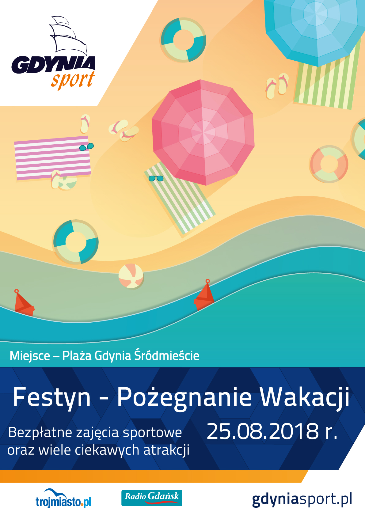 „Aktywne Lato 2018” powoli dobiega końca. Tradycyjnie zwieńczeniem sezonu letniego w Gdyni będzie sportowy festyn „Pożegnanie wakacji”, przygotowany specjalnie dla mieszkańców i turystów. Impreza rozpocznie się w sobotę, 25 sierpnia, o godzinie 10:00, na plaży w Śródmieściu. Wstęp wolny.W programie festynu Gdyńskie Centrum Sportu przygotowało mnóstwo atrakcji. Tory przeszkód, strefę pneumatycznych zjeżdżalni, symulator deski surfingowej, tor skimboardingowy, megapiłkarzyki czy megaklocki – to tylko niektóre ze stanowisk z grami i zabawami zorganizowanymi dla najmłodszych. Co więcej, miłośnicy kreatywnego spędzania wolnego czasu będą mogli skorzystać z atrakcji przygotowanych przez Centrum Nauki Experyment. Tradycyjnie już podczas festynu nie zabraknie turniejów sportowych. Do udziału zapraszamy miłośników siatkówki plażowej (OPEN oraz młodzież) oraz beach soccera (OPEN), którzy chcieliby stanąć w szranki i sprawdzić się na tle rywali. Dodatkowo, chętni będą mogli uczestniczyć w zajęciach zumby i fitnessu. Nowością podczas tegorocznej imprezy będzie stanowisko „Lata z Radiem”. Tzw. strefa relaksu otwarta będzie od godziny 10 do 19. Prowadzone będą w niej gry i animacje, przygrywać będzie DJ, a wszyscy chętni będą mogli zajrzeć do sklepu, w którym będzie można kupić wydawnictwa Agencji Muzycznej Polskiego Radia i NCK. Spore grono zainteresowanych powinna przyciągnąć również strefa atrakcji Multimedia. – Festyn „Pożegnanie wakacji” to prawdziwa kumulacja plażowych atrakcji – mówi Marek Łucyk, dyrektor Gdyńskiego Centrum Sportu. – Akcja „Aktywne Lato” na dobre przyjęła się wśród mieszkańców Gdyni i turystów. Zainteresowanie naszymi letnimi propozycjami było ogromne. Myślę, że podczas wakacji w Gdyni nikt nie może narzekać na nudę. Zbliżające się wydarzenie będzie idealnym podsumowaniem kolejnego, niezwykle udanego sezonu – dodaje.W czasie trwania festynu, na plaży w Śródmieściu toczyć się będą zmagania pływaków w Gdynia Baltic Challenge.Rodzinny festyn „Pożegnanie wakacji” jest zwieńczeniem cyklu zajęć sportowych „Aktywne Lato”, który odbywa się przez cały sezon letni od 16 czerwca aż do 2 września na plaży Śródmieście w Gdyni. Każdego dnia wykwalifikowani instruktorzy organizowali turnieje siatkówki dla miłośników sportów plażowych. Na najmłodszych czekały atrakcyjne zajęcia w specjalnej strefie z animatorami. Opublikowano: 21.08.2018 09:00 Autor: Michał Kozłowski (m.kozlowski@gdynia.pl) Zmodyfikowano: 24.08.2018 13:37 Zmodyfikował: Dorota Nelke