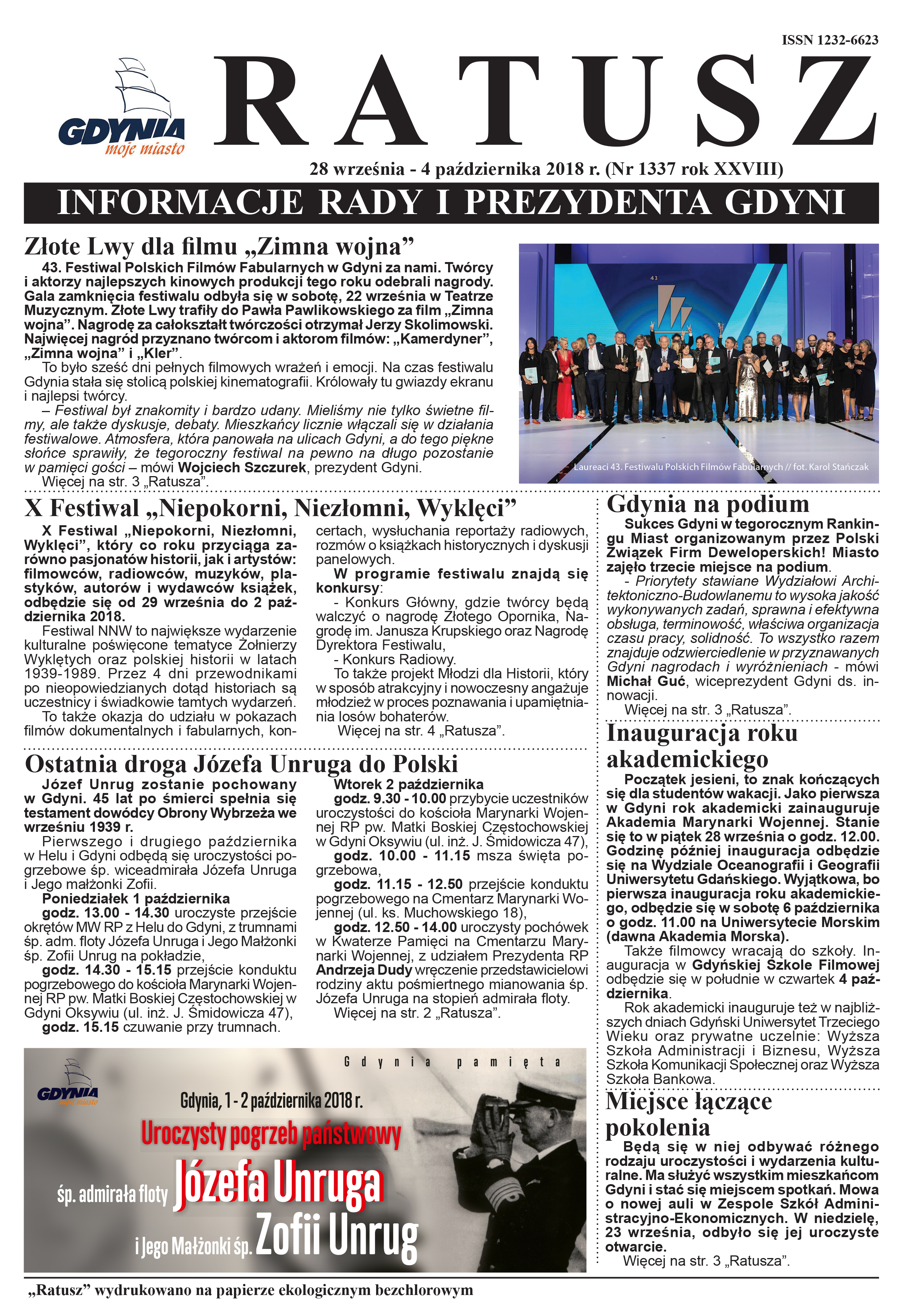 Zapraszamy do lektury nowego "Ratusza" on line. Opublikowano: 27.09.2018 14:28 Autor: _Agnieszka Wołowicz-Bińkowska (a.wolowicz@gdynia.pl) Zmodyfikowano: 27.09.2018 14:30 Zmodyfikował: Agnieszka Wołowicz-Bińkowska