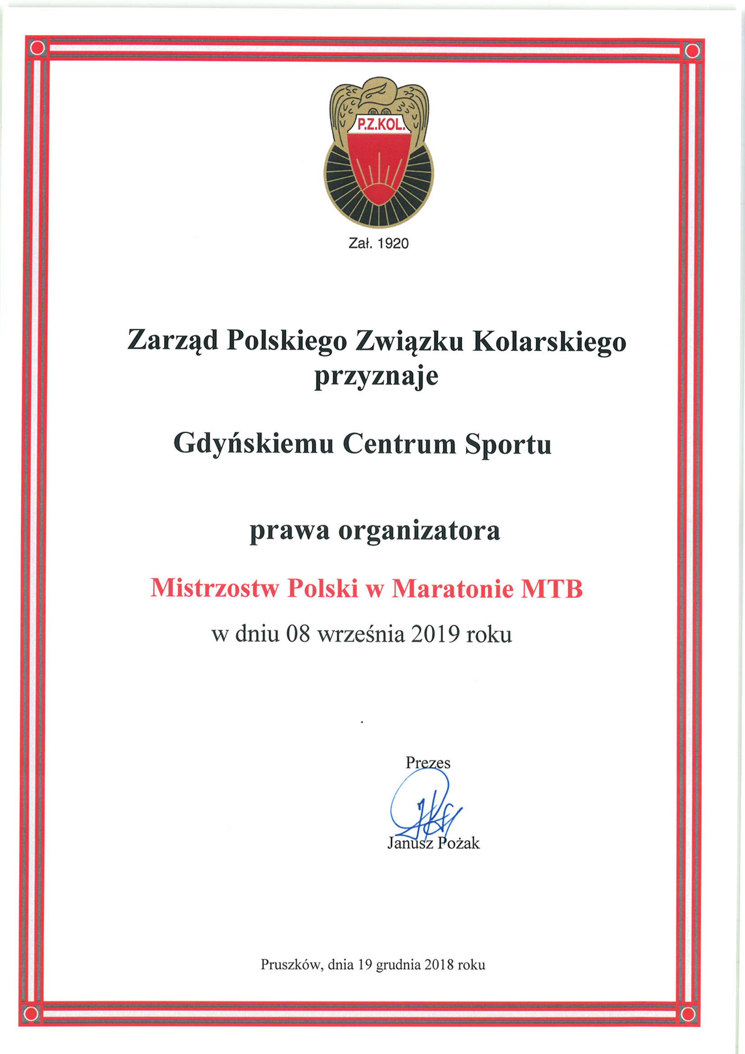Malownicze i niezwykle wymagające trasy Trójmiejskiego Parku Krajobrazowego, fantastyczny nadmorski klimat oraz wielkie doświadczenie w organizacji imprez najwyższego szczebla. Polski Związek Kolarski zdecydował, że kolejna odsłona mistrzostw Polski w maratonie MTB zagości w mieście z morza i marzeń! Wydarzenie zaplanowane na 7 i 8 września 2019 roku odbędzie się w ramach 14. edycji 7R CST MTB Gdynia Maraton.Koszykarska stolica Polski, żeglarskie eldorado, najważniejsze miejsce na biegowej mapie Pomorza. Podobne określenia można mnożyć w nieskończoność, ponieważ Gdynia od lat uważana jest za miejsce oddychające sportem, gdzie szeroko rozumiana aktywność fizyczna funkcjonuje nie tylko w wielkich arenach, ale również przestrzeni miejskiej. Do długiej listy dyscyplin, które pokochały nasze miasto od niedawna można zaliczyć również kolarstwo.W czerwcu 2017 roku nad morzem pojawiły się największe gwiazdy krajowego peletonu z Rafałem Majką na czele. Wszystko po to, aby rozstrzygnąć kwestie mistrzostwa Polski w kolarstwie szosowym. Bój o medale rozegrał na ulicach Gdyni, a ze złotych krążków cieszyli się wówczas Karolina Karasiewicz oraz Adrian Kurek.Dwa lata później mieszkańcy ponownie będą mogli z zapartym tchem śledzić losy rywalizacji mistrzów dwóch kółek. W tym razem w nadmorskiej scenerii zaprezentują się specjaliści MTB.- Wizyta najlepszych „górali” w kraju to jedno z najważniejszych wydarzeń w kolarskim kalendarzu. Cieszę się, że w 2019 roku ich gospodarzem będzie Gdynia. Jesteśmy gotowi, by sprostać kolejnemu wyzwaniu - mówi prezydent Gdyni Wojciech Szczurek.W ramach zmagań rozegrane zostaną wyścigi mistrzowskie elity, kolarzy do lat 23 (80 km) oraz juniorów (60 km). A to wszystko pod szyldem 14. edycji 7R CST MTB Gdynia Maraton, który co roku cieszy się olbrzymim zainteresowaniem mieszkańców regionu, a na starcie oprócz profesjonalnych zawodników można spotkać amatorów w każdym wieku.- Organizacja najważniejszych imprez sportowych w kraju i nie tylko tak mocno weszła nam w krew, że nie możemy się zatrzymać – zauważa wiceprezydent Gdyni ds. rozwoju Marek Łucyk. I dodaje: - Każde kolejne wydarzenie stanowi dla nas niezwykły zastrzyk energii. Jestem przekonany, że doświadczenie zdobyte przez ostatnie lata pozwoli nam wznieść tę imprezę na wyższy szczebel. To będzie prawdziwe kolarskie święto! Co ciekawe, poprzednia odsłona gdyńskiej rywalizacji padła łupem Rity Malinkiewicz oraz, aktualnego mistrza Polski w maratonie MTB, Dariusza Batka. Kolarze grupy 7R CST MTB Team z pewnością i tym razem będą należeli do grona głównych faworytów wyścigu.- Ostatnie dwa lata mistrzostwa Polski w maratonie MTB gościły na południu Polski. Najwyższy czas przenieść się na północ. I niech nikogo nie zwiedzie że to Gdynia, morze i plaże. W roku 2018 startowałem w tym wyścigu na naprawdę ciężkiej trasie i na pewno lekko nie będzie. Organizacyjnie wszystko było dopięte na ostatni guzik, a samo miejsce gdzie start i meta zlokalizowane są przy Stadionie Miejskim robi wrażenie – mówi Dariusz Batek. - Termin też nie jest przypadkowy, ponieważ chwile później rozegrane zostaną mistrzostwa świata w maratonie MTB i będzie to ostatni sprawdzian polskiej czołówki przed światowym czempionatem – dodaje.Trasa ponownie zlokalizowana zostanie w Trójmiejskim Parku Krajobrazowym i – jak zapewniają organizatorzy – będzie niezwykle urozmaicona. Można liczyć na wiele stromych zjazdów oraz podjazdy wymagające niesamowitego wysiłku.- Wielkie wydarzenie, za jakie bez wątpienia, można uznać mistrzostwa Polski zasługują na fantastyczną oprawę. Już teraz mogę zapewnić, że zrobimy wszystko, aby kolarze poczuli się na gdyńskiej ziemi jak w górach – deklaruje dyrektor Gdyńskiego Centrum Sportu Rafał Klajnert. Pierwsze mistrzostwa Polski w maratonie MTB odbyły się w 2003 roku w Świeradowie-Zdroju. Następnie impreza rozgrywana była m. in. w Wałbrzychu, Jeleniej Górze czy Obiszowie, a w 2018 gospodarzem zmagań była Wisła. Opublikowano: 03.01.2019 10:35 Autor: Michał Kozłowski (m.kozlowski@gdynia.pl) Zmodyfikowano: 03.01.2019 10:38 Zmodyfikował: Dorota Nelke