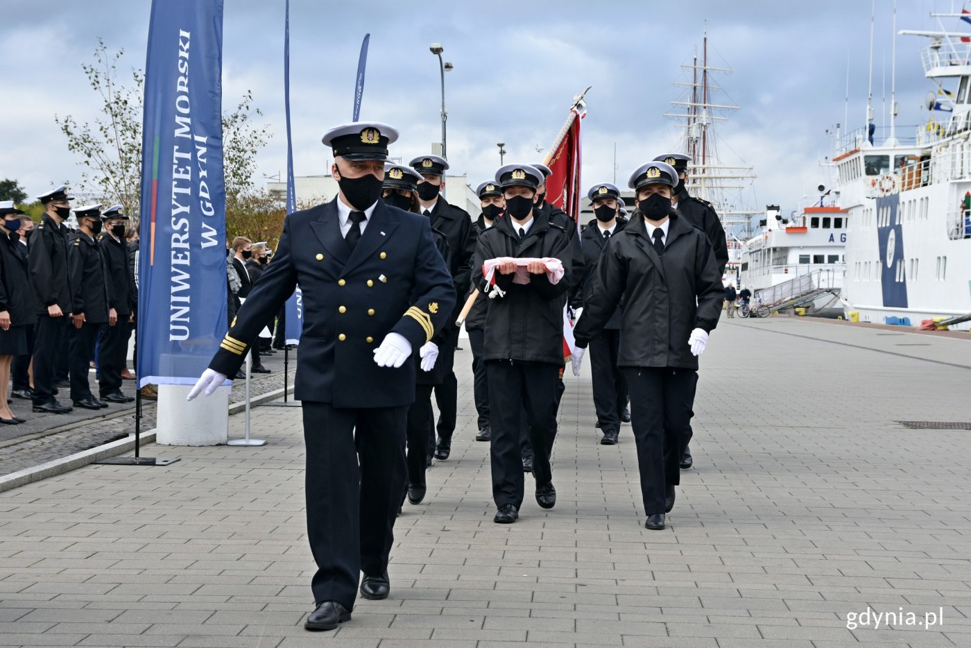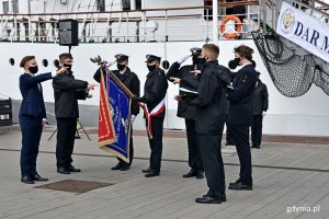 „Gaudeamus igitur” wybrzmiało w Gdyni. Uniwersytet Morski oficjalnie zainaugurował nowy rok akademicki. Uroczystość odbyła się w sobotę, 10 października na „Darze Młodzieży” i przed jego pokładem. Wzięli w niej udział m.in.: parlamentarzyści, samorządowcy, przedstawiciele władz i pracownicy Uniwersytetu Morskiego w Gdyni, studenci oraz mieszkańcy. Nowy rok akademicki na Uniwersytecie Morskim w Gdyni rozpoczęty! Uczelnia zorganizowała uroczystą inaugurację na świeżym powietrzu. Zgodnie z tradycją nie mogło zabraknąć morskich akcentów, dlatego uroczystość odbyła się na żaglowcu „Dar Młodzieży” oraz przed jego pokładem. Oczywiście wszystko z zachowaniem reżimu sanitarnego. Ze względu na trwającą pandemię ograniczono liczbę uczestników uroczystości. Wszyscy chętni mogli też oglądać transmisję online z wydarzenia. – Ten rok jest nietypowy ze względu na wiele okoliczności. Mamy stulecie naszej działalności – kształcić zaczęliśmy dokładnie w 1920 roku. Na to nakłada się scenariusz związany z koronawirusem. Naprawdę do ostatniej chwili rozważaliśmy, czy organizować inaugurację w sposób tradycyjny, czy też zdecydować się wyłącznie na uroczystość online. Jednak zwyczaje, ceremoniał morski u nas odgrywają wielka rolę i te argumenty przeważyły, że robimy to w sposób tradycyjny. Przyjęliśmy 1500 studentów, a dzisiaj w inauguracji uczestniczyli reprezentanci wszystkich wydziałów - po 16 osób z każdego – mówi prof. dr hab. inż. kpt. ż. w. Adam Weintrit, rektor Uniwersytetu Morskiego w Gdyni. Wśród zaproszonych gości nie zabrakło parlamentarzystów, przedstawicieli Konwentu Morskiego, samorządowców czy przedstawicieli Uniwersytetu Morskiego – w tym byłych rektorów uczelni. W uroczystości wzięli też udział: prezydent Gdyni Wojciech Szczurek oraz Joanna Zielińska – przewodnicząca Rady Miasta. – Uniwersytet Morski to ważna z punktu widzenia funkcjonowania miasta uczelnia, kształcąca nie tylko na kierunkach o profilu morskim, ale także w wielu innych, ważnych dziedzinach dla gospodarki naszego miasta i regionu. Mam nadzieję, że ten nadchodzący rok akademicki to będzie rok, w którym z jednej strony uda się sprostać bardzo ambitnym wyzwaniom i realizować bardzo nowoczesne programy kształcenia, a jednocześnie będzie rokiem, który da studentom poczucie bezpieczeństwa, bo zdrowie i bezpieczeństwo dzisiaj stają się wyznacznikiem właściwie wszystkich naszych aktywności – mówi Wojciech Szczurek, prezydent Gdyni. Uroczysta inauguracja roku akademickiego rozpoczęła się od wprowadzenia sztandaru uczelni i odegrania hymnu państwowego. Następnie przemówienie wygłosił rektor Uniwersytetu Morskiego – prof. dr hab. inż. kpt. ż. w. Adam Weintrit. Kolejnym punktem było ślubowanie oraz immatrykulacja studentów pierwszego roku i doktorantów. Podczas uroczystości odczytano też listy gratulacyjne od przedstawicieli rządu i władz państwowych. Wręczono również nagrody ministra gospodarki morskiej i żeglugi śródlądowej dla studentów i pracowników Uniwersytetu Morskiego. Nauka w formie hybrydowej W tym roku uczelnia zdecydowała się na prowadzenie zajęć w formie hybrydowej. Tylko taki wariant umożliwia kształcenie na najwyższym poziomie. Niektórych zajęć nie można bowiem przeprowadzić online. – Mamy kilka rozwiązań. Plan A to jest wersja mieszana. Większość zajęć online, a te, których nie da się przeprowadzić przy komputerze, będą musiały być zrobione w czasie rzeczywistym w symulatorach czy laboratoriach, które są bogato wyposażone – mówi Weintrit. Uczelnia oferuje studia I i II stopnia na 9 kierunkach i 43 specjalnościach. Na Wydziale Elektrycznym to: elektrotechnika, elektronika i telekomunikacja, informatyka oraz technologie kosmiczne i satelitarne. Z kolei na Wydziale Nawigacyjnym - nawigacja, a także transport. Wydział Mechaniczny to miejsce dla tych, którzy chcą studiować mechanikę i budowę maszyn. Natomiast Wydział Przedsiębiorczości i Towaroznawstwa proponuje dwa kierunki: innowacyjną gospodarkę lub towaroznawstwo. Galeria zdjęć Pobierz galerię Uroczysta inauguracja roku akademickiego Uniwersytetu Morskiego // fot. Magdalena Czernek Pobierz zdjęcie Studenci Uniwersytetu Morskiego w Gdyni podczas inauguracji nowego roku akademickiego // fot. Magdalena Czernek Pobierz zdjęcie Uroczystość rozpoczęło odegranie hymnu narodowego i wciągnięcie biało-czerwonej flagi na maszt // fot. Magdalena Czernek Pobierz zdjęcie W uroczystej inauguracji roku akademickiego Uniwersytetu Morskiego wzięli udział: prezydent Gdyni Wojciech Szczurek oraz Joanna Zielińska - przewodnicząca Rady Miasta Gdyni // fot. Magdalena Czernek Pobierz zdjęcie Przemówienie inauguracyjne wygłosił prof. dr hab. inż. kpt. ż. w. Adam Weintrit - rektor Uniwersytetu Morskiego w Gdyni // fot. Magdalena Czernek Pobierz zdjęcie Uroczysta inauguracja roku akademickiego Uniwersytetu Morskiego // fot. Magdalena Czernek Pobierz zdjęcie Uroczystość uświetnił występ akademickiego Chóru Uniwersytetu Morskiego // fot. Magdalena Czernek Pobierz zdjęcie W uroczystej inauguracji nowego roku akademickiego Uniwersytetu Morskiego wzięli udział: prezydent Gdyni Wojciech Szczurek oraz Joanna Zielińska - przewodnicząca Rady Miasta Gdyni // fot. Magdalena Czernek Pobierz zdjęcie Uroczysta inauguracja roku akademickiego Uniwersytetu Morskiego // fot. Magdalena Czernek Pobierz zdjęcie Studenci Uniwersytetu Morskiego w Gdyni podczas inauguracji nowego roku akademickiego // fot. Magdalena Czernek Pobierz zdjęcie Studenci Uniwersytetu Morskiego podczas ślubowania // fot. Magdalena Czernek Pobierz zdjęcie Studenci Uniwersytetu Morskiego podczas ślubowania // fot. Magdalena Czernek Pobierz zdjęcie Uroczysta inauguracja roku akademickiego Uniwersytetu Morskiego // fot. Magdalena Czernek Pobierz zdjęcie Warunki pobierania Wszelk