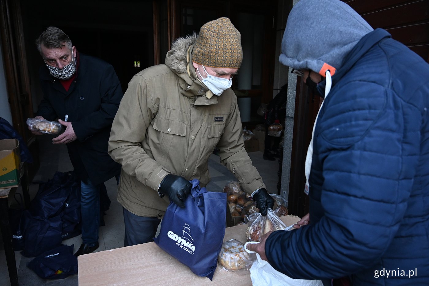 Święta Wielkanocne po raz drugi obchodzimy w cieniu pandemii koronawirusa. Również w tym roku tradycyjne gdyńskie śniadanie dla potrzebujących zastąpiły paczki z tradycyjnymi wielkanocnymi produktami. Tradycja wspólnego spotkania przy gdyńskim wielkanocnym stole sięga ponad 20 lat. Świąteczne śniadania dla samotnych i potrzebujących były organizowane przez miasto, przy wsparciu wolontariuszy, w kościele oo. Franciszkanów. Ten zwyczaj kontynuowano do 2019 roku, ale wybuch pandemii sprawił, że konieczne było zastąpienie spotkania inną formą pomocy. – Sytuacja epidemiologiczna już po raz kolejny uniemożliwiła nam spotkanie się na wielkanocnym śniadaniu. Nie zapomnieliśmy jednak o osobach samotnych, ubogich czy w kryzysie bezdomności. Wspólnie z pracownikami Centrum Aktywności Seniora oraz Miejskiego Ośrodka Pomocy Społecznej w Gdyni przygotowaliśmy wielkanocne paczki, które w świąteczny poranek trafiły do potrzebujących – mówi Michał Guć, wiceprezydent Gdyni ds. innowacji, który w niedzielny świąteczny poranek był wśród osób rozdających paczki. – Chcemy, aby te osoby pamiętały, że nie są same i mogą liczyć na nasze wsparcie w tym trudnym czasie. Osoby samotne i potrzebujące świąteczne paczki otrzymały paczki z tradycyjnymi wielkanocnymi produktami. ok. 60 osób odebrało je w niedziele przy kościele oo. Franciszkanów. Na zdjęciu: Bożena Zglińska, dyrektor Centrum Aktywności Seniora // fot. Michał PuszczewiczI rzeczywiście, w wielkanocny poranek pracownicy CAS, którzy w tym roku kierowali logistyką akcji i pakowali świąteczne paczki, przy wsparciu parafialnego zespołu Caritas w klasztorze oo. Franciszkanów rozdali je mieszkańcom. Wcześniej w rozwożeniu paczek pomagali pracownicy Miejskiego Ośrodka Pomocy Społecznej oraz żołnierze WOT. Akcja zakończyła się w niedzielę ok. 9 rano. Na miejscu pojawiło się ok. 60 osób. – Pomoc osobom starszym, samotnym i potrzebującym to misja Centrum Aktywności Seniora, dlatego cieszę się, że dziś mogliśmy w ten sposób okazać im wsparcie – mówi Bożena Zglińska, dyrektorka CAS, obecna w niedzielny poranek przy kościele oo. Franciszkanów. Dla potrzebujących przygotowano łącznie 500 paczek, w których oprócz tradycyjnych wielkanocnych produktów znalazło się także świeże pieczywo, wypieki i przetwory mleczne, m.in. serki homogenizowane. Galeria zdjęć Pobierz galerię Osoby samotne i potrzebujące otrzymały paczki z tradycyjnymi wielkanocnymi produktami. Ok. 60 osób odebrało je w niedziele przy kościele oo. franciszkanów // fot. Michał Puszczewicz Pobierz zdjęcie Osoby samotne i potrzebujące otrzymały paczki z tradycyjnymi wielkanocnymi produktami. Ok. 60 osób odebrało je w niedziele przy kościele oo. franciszkanów // fot. Michał Puszczewicz Pobierz zdjęcie Osoby samotne i potrzebujące otrzymały paczki z tradycyjnymi wielkanocnymi produktami. Ok. 60 osób odebrało je w niedziele przy kościele oo. franciszkanów // fot. Michał Puszczewicz Pobierz zdjęcie Osoby samotne i potrzebujące otrzymały paczki z tradycyjnymi wielkanocnymi produktami. Ok. 60 osób odebrało je w niedziele przy kościele oo. franciszkanów // fot. Michał Puszczewicz Pobierz zdjęcie Osoby samotne i potrzebujące otrzymały paczki z tradycyjnymi wielkanocnymi produktami. Ok. 60 osób odebrało je w niedziele przy kościele oo. franciszkanów // fot. Michał Puszczewicz Pobierz zdjęcie Osoby samotne i potrzebujące otrzymały paczki z tradycyjnymi wielkanocnymi produktami. ok. 60 osób odebrało je w niedziele przy kościele oo. franciszkanów // fot. Michał Puszczewicz Pobierz zdjęcie Osoby samotne i potrzebujące otrzymały paczki z tradycyjnymi wielkanocnymi produktami. ok. 60 osób odebrało je w niedziele przy kościele oo. franciszkanów // fot. Michał Puszczewicz Pobierz zdjęcie Osoby samotne i potrzebujące otrzymały paczki z tradycyjnymi wielkanocnymi produktami. ok. 60 osób odebrało je w niedziele przy kościele oo. franciszkanów // fot. Michał Puszczewicz Pobierz zdjęcie Osoby samotne i potrzebujące otrzymały paczki z tradycyjnymi wielkanocnymi produktami. ok. 60 osób odebrało je w niedziele przy kościele oo. franciszkanów // fot. Michał Puszczewicz Pobierz zdjęcie Warunki pobierania Wszelkie prawa do zdjęć lub grafik prezentowanych w ramach portalu, należą do Prowadzącego portal lub do podmiotów z nim współpracujących i podlegają ochronie prawnej. Prowadzący portal zezwala na kopiowanie i przedstawianie utworów jedynie w celach niekomercyjnych oraz pod warunkiem zachowania go w oryginalnej postaci i zachowaniem kontekstu tematu, do którego zostało wykorzystaneprzez redakcję gdynia.pl. Opublikowane materiały powinny zawsze zawierać źródło, czyli adres strony www.gdynia.pl. Na publikowanie utworów w innych celach wymagana jest zgoda właściciela strony czyli Prowadzącego portal. Opublikowano: 08.04.2021 13:15 Autor: Aleksandra Dylejko (a.dylejko@lis.gdynia.pl) Zmodyfikowano: 08.04.2021 13:17 Zmodyfikował: Weronika Rozbicka