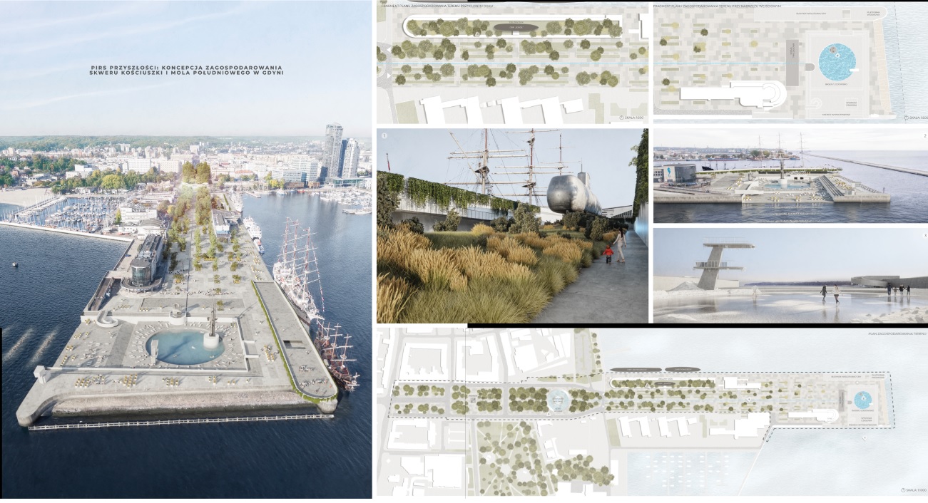 Po kilku miesiącach oczekiwania i burzliwych obradach sądu konkursowego znamy już laureatów i wyróżnionych w konkursie studialno-ideowym na projekt zabudowy i zagospodarowania głównej osi kompozycyjnej Gdyni – „Pirs Przyszłości”. Zwyciężyła wizja molo Południowego z efektowną, nadziemną promenadą i tarasem, z którego rozciąga się widok na morze i port. Morska tożsamość, odważne wizje roztaczające widok na morze i dbałość o modernistyczne tradycje – to główne motywy, które towarzyszyły architektom pochylającym się nad kwestią nowego zagospodarowania jednej z wizytówek Gdyni. Poznaliśmy koncepcje molo Południowego, które posłużą za inspiracje przy planowaniu zmian w tym wyjątkowym miejscu. Sąd konkursowy podzielił się swoim werdyktem i spośród 16 prac zgłoszonych do gdyńskiego konkursu studialno-ideowego wyłonił zdobywców trzech wyróżnień i trzech nagród.Sąd konkursowy ogłosił wyniki konkursu studialno-ideowego w piątek, 10 grudnia, fot. Magdalena Czernek Tożsamość, atrakcyjność i użyteczność Przypomnijmy, że podczas oceny prac konkursowych sąd brał pod uwagę przede wszystkim identyfikację tożsamości przestrzeni urbanistycznej i architektonicznej miasta – na tym tle oceniano oryginalność i atrakcyjność proponowanej wizji i poszczególnych rozwiązań.Ważny był też stopień, w jakim proponowane rozwiązania przyczynią się do kreowania i wydobywania tożsamości i atrakcyjności miejsca. Kolejne z kryteriów to sposób wpisania w otaczający kontekst i układ kompozycyjno-przestrzenny miasta. Ponadto zwracano też uwagę na walory użytkowe koncepcji w kilku aspektach: funkcjonalnym, społecznym, ekologicznym i technicznym. – Konkurs niezwykły. Rzadko zdarzają się takie konkursy ideowo-studialne, w których nie trzeba za bardzo zajmować się kwestiami technologicznymi szczegółowych rozwiązań, a potrzebna jest wizja. I to wizja z diagnozą tożsamości miasta, które jest młode, niezwykle atrakcyjne i, jak się okazuje, inaczej postrzegane przez mieszkańców, a inaczej przez turystów. (...) Prace, które zostały zgłoszone, miały za zadanie połączyć te punkty widzenia w jedną całość. Już tytuł konkursu, czyli „Pirs Przyszłości”, sugerował, że oczekujemy spojrzenia, które zdiagnozuje tę tożsamość, ale też pokaże, w jakim kierunku powinna się ona dalej rozwijać – mówiła podczas ogłoszenia wyników konkursu prof. dr hab. inż. arch. Ewa Kuryłowicz, przewodnicząca sądu konkursowego.– Prace, które otrzymaliśmy, są dla nas zbiorem dobrych pomysłów, a czasem nawet nie pomysłów, ale inspiracji. Będziemy zatem z nich korzystać. Przypuszczam, że niektóre drobne elementy będziemy mogli realizować parcjalnie, nawet nie tworząc gruntownej przemiany tego miejsca. Natomiast w szerszym kontekście na pewno staną się inspiracją do zmiany planu zagospodarowania przestrzennego, który obowiązuje w tym miejscu – podsumowała Katarzyna Gruszecka-Spychała, wiceprezydent Gdyni ds. gospodarki, która uczestniczyła w obradach sądu konkursowego.– Wszyscy chcielibyśmy, aby w tej przestrzeni była możliwość spojrzenia na otoczenie z wyżej położonego punktu i w większości prac ta myśl jest obecna. Jednocześnie chodzi też o to, aby zbliżyć się do tafli wody. To dla nas ważne, a jest to miejsce niezwykle trudne i wymagające z uwagi na to, że jest istotne dla tożsamości Gdyni – skomentowała dr inż. arch. Izabela Burda z Wydziału Architektury Politechniki Gdańskiej, członkini sądu konkursowego. Nagroda główna przypadła warszawskiej pracowni SMOL Architekt. Autorzy koncepcji – Tomasz Smol i Edyta Smol – zgodnie z regulaminem otrzymali nagrodę finansową w wysokości 50 tys. złotych.Wizja nowej koncepcji zagospodarowania molo Południowego według zwycięzców konkursu, mat. SMOL ArchitektW zwycięskiej pracy podstawowym elementem budującym założenie przestrzenne jest nadziemna promenada usytuowana wzdłuż głównej osi kompozycyjnej, zakończona tarasem widokowym o kolistym, rzeźbiarskim kształcie. – Wybraliśmy w zgodnym głosowaniu pracę, która naszym zdaniem najdokładniej odpowiadała na problemy sformułowane w regulaminowych pytaniach i zagadnieniach. Przede wszystkim priorytetowo traktowała kwestie istnienia zabytkowej osi komunikacyjnej, poza tym ucieleśniała pomysł stworzenia dobrego i dogodnego widoku na morze w różne strony poprzez zaprojektowanie specjalnej kładki spacerowej, ponadto przewidywała wielofunkcyjność tych przestrzeni, które pozostają pod kładką, rozumiejąc potrzeby miasta, takie jak na przykład organizacja różnego rodzaju imprez – skomentowała zwycięską koncepcję Katarzyna Gruszecka-Spychała, wiceprezydent Gdyni ds. gospodarki. Zaproponowane rozwiązania projektowe uzupełniają i podkreślają główną oś kompozycyjną, tworząc trasę widokową otwierającą panoramę zarówno na port, jak i Zatokę Gdańską. Forma architektoniczna promenady nadziemnej zakończona wygiętą wstęgą wysuniętego w morze tarasu widokowego, drobne pawilony usługowe i mała architektura nawiązują do modernistycznego dziedzictwa architektury Gdyni z charakterystycznymi zaokrąglonymi narożnikami, jasną kolorystyką i marynistycznymi detalami, podkreślając w ten sposób tożsamość miasta.Drugie miejsce zdobyła koncepcja stworzona wspólnie przez: Dominika Sędzickiego, Jarosława Bąkowskiego, Aleksandra Bielawskiego, Michała Lubasa, Maję Karoń i Natalię Gruchałę.Druga nagroda – koncepcja autorstwa zespołu: Dominik Sędzicki, Jarosław Bąkowski, Aleksander Bielawski, Michał Lubas, Maja Karoń i Natalia GruchałaTrzecie miejsce przyznano zespołowi, w którego skład weszli: Bazyli Domsta, Kacper Ludwiczak i Beata Wróblewska.Trzecia nagroda – koncepcja autorstwa zespołu w składzie: Bazyli Domsta, Kacper Ludwiczak i Beata WróblewskaWyróżnienia uzyskały