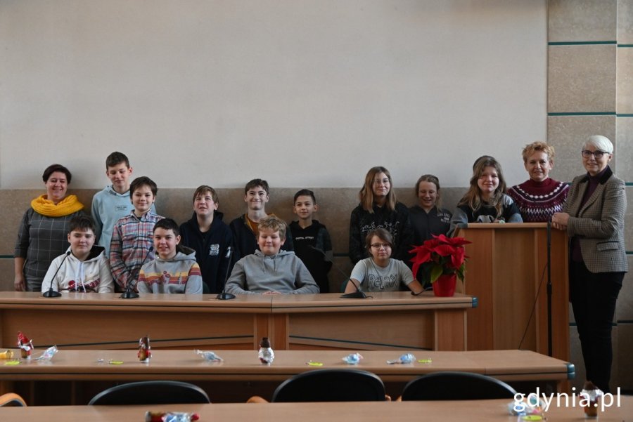 Uczniowie ze Szkoły Podstawowej nr 8 odwiedzili Urząd Miasta Gdyni i spotkali się z prezydentem Wojciechem Szczurkiem oraz Joanną Zielińską – przewodniczącą Rady Miasta Gdyni. Samorządowcy i młodzi gdynianie rozmawiali m.in. o przedsiębiorczości i budżecie. Uczniowie uczestniczyli też w spotkaniu ze strażnikami miejskimi oraz pracownikami Urzędu Stanu Cywilnego. Wizyta odbyła się w czwartek, 15 grudnia w ramach Światowego Tygodnia Przedsiębiorczości. Społeczność Szkoły Podstawowej nr 8 od lat aktywnie angażuje się w programy edukacyjne realizowane w ramach Światowego Tygodnia Przedsiębiorczości. Dzięki temu młodzi ludzie mają szansę odwiedzić wiele różnych instytucji czy firm i dowiedzieć się więcej o tym, jak one funkcjonują i co oferują.W czwartek, 15 grudnia uczniowie z szóstej klasy przyszli z wizytą do Urzędu Miasta Gdyni. Z młodymi ludźmi spotkali się prezydent Wojciech Szczurek oraz Joanna Zielińska – przewodnicząca Rady Miasta Gdyni. Rozmowy dotyczyły przedsiębiorczości i życia miasta. Samorządowcy mówili m.in. o budżecie, przetargach oraz obecnej sytuacji gospodarczej. Tłumaczyli też, jak załatwić niektóre urzędowe sprawy.Ponadto uczniowie spotkali się także ze strażnikami miejskimi oraz pracownikami Urzędu Stanu Cywilnego, którzy przybliżyli im swoją pracę. W ramach Światowego Tygodnia Przedsiębiorczości uczniowie Szkoły Podstawowej nr 8 odwiedzili w tym roku również m.in. gdyński oddział Państwowej Inspekcji Pracy, sopocki WOPR, Port Lotniczy im. Lecha Wałęsy w Gdańsku, Wydział Ekonomiczny Uniwersytetu Gdańskiego i miejski stadion w Gdyni. W mikołajki do ich szkoły zawitał natomiast Igor Tracz – wielokrotny mistrz Polski, Europy, świata w wyścigach psich zaprzęgów, który opowiadał o pasji, która stała się jego zawodem. Galeria zdjęć Pobierz galerię Joanna Zielińska, przewodnicząca Rady Miasta Gdyni, podczas spotkania z uczniami ze Szkoły Podstawowej nr 8 // fot. Magdalena Śliżewska Pobierz zdjęcie Prezydent Gdyni Wojciech Szczurek podczas spotkania z uczniami ze Szkoły Podstawowej nr 8 // fot. Magdalena Śliżewska Pobierz zdjęcie Joanna Zielińska, przewodnicząca Rady Miasta Gdyni, podczas spotkania z uczniami ze Szkoły Podstawowej nr 8 // fot. Magdalena Śliżewska Pobierz zdjęcie Joanna Zielińska, przewodnicząca Rady Miasta Gdyni, z uczniami ze Szkoły Podstawowej nr 8 oraz towarzyszącymi im nauczycielami // fot. Magdalena Śliżewska Pobierz zdjęcie Warunki pobierania Wszelkie prawa do zdjęć lub grafik prezentowanych w ramach portalu, należą do Prowadzącego portal lub do podmiotów z nim współpracujących i podlegają ochronie prawnej. Prowadzący portal zezwala na kopiowanie i przedstawianie utworów jedynie w celach niekomercyjnych oraz pod warunkiem zachowania go w oryginalnej postaci i zachowaniem kontekstu tematu, do którego zostało wykorzystaneprzez redakcję gdynia.pl. Opublikowane materiały powinny zawsze zawierać źródło, czyli adres strony www.gdynia.pl. Na publikowanie utworów w innych celach wymagana jest zgoda właściciela strony czyli Prowadzącego portal. Opublikowano: 22.12.2022 15:30 Autor: Magdalena Czernek (magdalena.czernek@gdynia.pl) Zmodyfikowano: 22.12.2022 15:30 Zmodyfikował: Karolina Szypelt