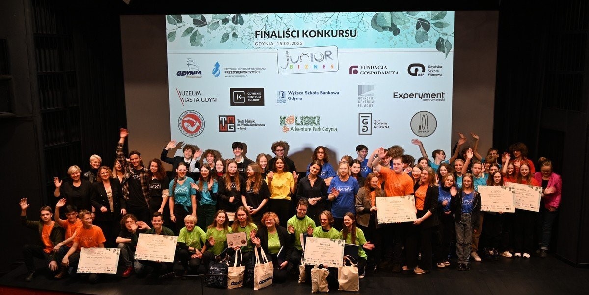 Laureaci 6. edycji konkursu Junior Biznes wyłonieni. Finałowa gala odbyła się 15 lutego w Gdyńskim Centrum Filmowym. Dla młodych gdynian udział w konkursie to idealna okazja, aby sprawdzić swoje szanse w świecie biznesu, a przy okazji poszerzyć wiedzę na temat ekonomii i ekologii, działać na rzecz lokalnej społeczności i nauczyć się współpracy w grupie. Konkurs Junior Biznes jest skierowany do uczniów gdyńskich szkół średnich oraz siódmych i ósmych klas szkół podstawowych. Tegoroczna 6. edycja skupiła się na ochronie środowiska, ekologii, zrównoważonym rozwoju i miała pokazać relację człowiek – środowisko. Na zdjęciu laureaci, opiekunowie i wiceprezydent Katarzyna Gruszecka-Spychała (w środku), Dorota Marszałek-Jalowska z Wydziału Środowiska oraz Katarzyna Litwin z Wyższej Szkoły Bankowej // fot. Magda Śliżewska Laureaci w kategorii „Junior Biznes SP” (uczniowie szkół podstawowych)Finaliści: – 4 miejsce: Katolicka Szkoła Podstawowa. Film pt. „Łososiem po Kaczej”. Zespół projektowy: Hanna Orłowska, Nina Andersen, Julia Templin, Wiktoria Matysiak, Jan Osowski, Jan Maszke. Nauczyciel: Agata Klimko.– 3 miejsce: Szkoła Podstawowa nr 37. Film pt. „Młodzieżowa ekologia”. Zespół projektowy: Lena Kuryś, Zofia Nowaczyk, Maria Ściechowicz, Krystian Szumlas. Nauczyciel: Barbara Kamińska.– 2 miejsce: Szkoła Podstawowa nr 37 w Gdyni. Film pt. „Nie marnujemy jedzenia”. Zespół projektowy: Miłosz Głowaty, Kacper Kolanek, Wojciech Lauterbach, Borys Kryzel. Nauczyciel: Barbara Kamińska.– 1 miejsce: Szkoła Podstawowa nr 43 (Zespół Szkolno-Przedszkolny nr 5). Film pt. „Modnie w eko”. Zespół projektowy: Amelia Łukasiewicz, Szymon Mathea, Bartłomiej Mróz, Maciej Mróz, Angelika Stróż, Jakub Wroński. Nauczyciel: Małgorzata Sosnowska.Laureaci w kategorii Junior Biznes (uczniowie szkół ponadpodstawowych):Finaliści:– Zespół Szkół Administracyjno-Ekonomicznych, projekt: EKOogrody w gdyńskich szkołach. Zespół projektowy: Zofia Chmielewska, Igor Rogal, Jakub Janczewski, Bartosz Koleśnik, Agata Przytuła. Nauczyciel: Jolanta Wdowiak.– Liceum Ogólnokształcące, projekt: Środowisko od podstaw. Zespół projektowy: Adam Guściora, Karol Rusak, Kiara Stempień, Maja Koziestańska, Martyna Kwarciana, Wiktor Ossowski, Michał Miąskowski. Nauczyciel: Anita Fabrycka.Laureaci:– 3 miejsce: 9. Liceum Ogólnokształcące, projekt: Nie bądź taki, polub ptaki. Zespół projektowy: Karol Siwacki, Mateusz Hebel, Adrian Banasik, Oliwia Pastwa. Nauczyciel: Dorota Twarowska.– 2 miejsce: Zespół Szkół Ekologiczno-Transportowych, projekt: EkoKrok. Zespół projektowy: Anna Hildebrandt, Agata Krzemieniewska, Kinga Stanisławska, Wiktoria Witt, Jagoda Krasowska, Aleksander Wojtkowiak. Nauczyciel: Kamila Matysiak.– 1 miejsce: Zespół Szkół Administracyjno-Ekonomicznych, projekt: Zielona Kawa. Zespół projektowy: Kamila Kaiser, Yelyzaveta Aleksandrova, Kateryna Stebletsova, Róża Dobrysiak, Filip Petke, Dominik Kowalewski. Nauczyciel: Maria Małkowska.Gratulacje! Opublikowano: 23.02.2023 14:12 Autor: Dominika Sobiech (dominika.sobiech@gdynia.pl)