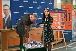 Loteria „Rozlicz PIT w Gdyni” rozstrzygnięta. Wiemy, do kogo trafią nagrody finansowe o wartości 10 tys. zł, rowery miejskie Baltica Gdynia, karnety na Open’er Festival oraz zestawy wakacyjne „I love Gdynia”. Losowanie odbyło się w piątek, 19 maja w Urzędzie Miasta Gdyni. Wręczenie nagród zaplanowano 24 czerwca w amfiteatrze na Kamiennej Górze. Podatki płacone lokalnie są niezwykle istotne. Zasilają samorządowy budżet, a dzięki temu miasto może się rozwijać. Gdynianie po raz kolejny udowodnili, że można na nich liczyć. W tym roku do udziału w miejskiej loterii „Rozlicz PIT w Gdyni” zarejestrowało się 11 125 osób. 782 z nich rozliczyły się w naszym mieście po raz pierwszy. Konkurs trwał od 15 marca do 14 maja i był skierowany do wszystkich pełnoletnich mieszkańców, którzy złożyli swoją deklarację podatkową w jednym z dwóch gdyńskich urzędów skarbowych.5 066 uczestników loterii złożyło deklarację podatkową w I Urzędzie Skarbowym przy ul. Władysława IV 2/4. Natomiast 6 059 osób zrobiło to II Urzędzie Skarbowym przy ul. Hutniczej 25. W piątek, 19 maja odbyło się losowanie nagród w loterii. Wzięli w nim udział: Wojciech Szczurek – prezydent Gdyni oraz Katarzyna Gruszecka-Spychała – wiceprezydent Gdyni ds. gospodarki. – Każda osoba, która rozliczy swój PIT w Gdyni, sprawia, że budżet miasta jest większy, a przez to możemy podejmować decyzje, które wpływają na lepszą jakość życia. Promocji akcji składania deklaracji podatkowej w swoim mieście służy m.in. wspólna zabawa pod nazwą „Rozlicz PIT w Gdyni”. Na laureatów loterii czekają atrakcyjne nagrody, które wprawdzie trafią tylko do grupy osób, ale wierzę, że każdy, kto wziął udział w zabawie, ma satysfakcję, bo w ten sposób już na dzień dobry dołożył swoją cegiełkę do tego, by Gdynia była jeszcze piękniejsza – mówił Wojciech Szczurek, prezydent Gdyni.– Dobra edukacja, czyste powietrze i plaże oraz wiele innych przyjemności składają się na dobrą jakość życia w naszym mieście, które przecież słynie z tego, że mieszkają tu szczęśliwi ludzie, zadowoleni z miejsca, w którym żyją. Warto to wszystko rozwijać, a żeby to robić, potrzebne są pieniądze. Dlatego opłaca się być lokalnym patriotą i rozliczać swój PIT w Gdyni – mówiła Katarzyna Gruszecka-Spychała, wiceprezydent Gdyni ds. Gdyni. Wiceprezydent Gdyni Katarzyna Gruszecka-Spychała przekazuje jeden ze zwycięskich kuponów Natalii Zapale - przedstawiciele komisji nadzoru loterii z firmy Gratifica Promotions // fot. Magdalena CzernekLosowanie nagród odbyło się pod czujnym okiem komisji konkursowej. Na każdym kuponie umieszczono unikalny kod, do którego przypisano jednego uczestnika. Kody znalazły się na konkursowych kuponach, które trafiły do urny. Ze względu na ochronę danych osobowych podajemy imię oraz pierwszą literę nazwiska wylosowanych szczęśliwców. Losowanie rozpoczęło się od wyłonienia laureatów trzech nagród finansowych o wartości 10 tys. zł. Zwycięskie kupony wylosował prezydent Gdyni Wojciech Szczurek. Szczęśliwymi laureatkami zostały:1) kod: P4GMTBZ – Joanna B.2) kod: JG5B8GX – Ewa L.3) kod: SZM8ZYP – Alicja M. Zdobywców rowerów miejskich Baltica Gdynia wylosowała Katarzyna Gruszecka-Spychała – wiceprezydent Gdyni. To osoby, których zgłoszenia miały przypisane następujące zestawy liter i cyfr: 1) kod: GTX52G6 – Anna R.2) kod: UW2PM9R – Józef R.3) kod: GBDMWJS – Bartosz B. Czterodniowe karnety na najbliższą edycję Open’er Festivalu trafią do osób, które podczas rejestracji otrzymały kody: 1) kod: XZ5H4AQ – Eugenia P.2) kod: UB366T2 – Robert K.3) kod: UEDYHEW – Sławomir K.4) kod: A7XJUZ4 – Małgorzata B.5) kod: YNP6EJ9 – Sławina L. Zestawy wakacyjne „I love Gdynia”, które składają się z leżaka, torby na zamek, czapki z daszkiem, butelki i ręcznika plażowego, powędrują do osób posiadających wymienione niżej kody: 1) kod: YUURNQ5 – Magdalena P.2) kod: XUKU3G7 – Damian P.3) kod: K9AJ2GE – Agata W.4) kod: BHXB73J – Gabriela S.5) kod: MC893XG – Janusz M. Odbyło się też losowanie zgłoszeń rezerwowych – na wypadek, gdyby te zwycięskie nie przeszły pomyślnie procesu weryfikacji. Lista rezerwowa do nagród finansowych: 1a) kod: YN8EPT2 – Andrzej G.1b) kod: YX7GZ4Y – Wiesław S.2a) kod: S2NM633 – Aleksandra M.2b) kod: ZTG5PMY – Michał R.3a) kod: B7XEF3F – Bożena K.3b) kod: K6SSRD9 – Krzysztof A. Lista rezerwowa – rowery miejskie Baltica Gdynia: 1a) kod: DQRWZA8 – Patrycja W.1b) kod: FTFNFSM – Katarzyna K.2a) kod: EQAZ7AA – Weronika V.2b) kod: ACHYKDK – Monika S.3a) kod: YZCYFYF – Marzena R.3b) kod: PQ89JWQ – Marzena C. Lista rezerwowa – czterodniowe karnety na Open’er Festival: 1a) kod: WS2XCFW – Aleksandra K.2a) kod: JRZCR3S – Izabela G.3a) kod: UD45REB – Marcin D.4a) kod: FQHW6J4 – Olga K.5a) kod: NDATE8G – Karol Z. Lista rezerwowa – zestawy wakacyjne „I love Gdynia”:1a) kod: G3EMJD3 – Zbigniew W.2a) kod: F73RWJ4 – Małgorzata K.3a) kod: YQDSG6U – Adam T.4a) kod: RWXQ5S5 – Agnieszka L.5a) kod: SPXMWT3 – Danuta B. Zwycięzcy zostaną poinformowani o wygranej telefonicznie w najbliższych dniach. Pierwsze telefony zostaną wykonane 22 maja. Kolejny etap to weryfikacja danych i dokumentów konkursowych. Wręczenie nagród odbędzie się 24 czerwca w amfiteatrze na Kamiennej Górze.Zapis transmisji z losowania nagród: Galeria zdjęć Pobierz galerię Prezydent Wojciech Szczurek podczas losowania nagród w loterii „Rozlicz PIT w Gdyni” // fot. Magdalena Czernek Pobierz zdjęcie Natalia Zapała - przewodnicząca komisji nadzoru loterii z firmy Gratifica Promotions oraz Robert Kieszek - przedstawiciel organizatora mieszają kupony konkursowe w urnie // fot. Magdalena Czernek Pobierz zdjęcie Kupony konkursowe w urnie // fot. Magdalena Czernek Pobierz zdjęcie Wa