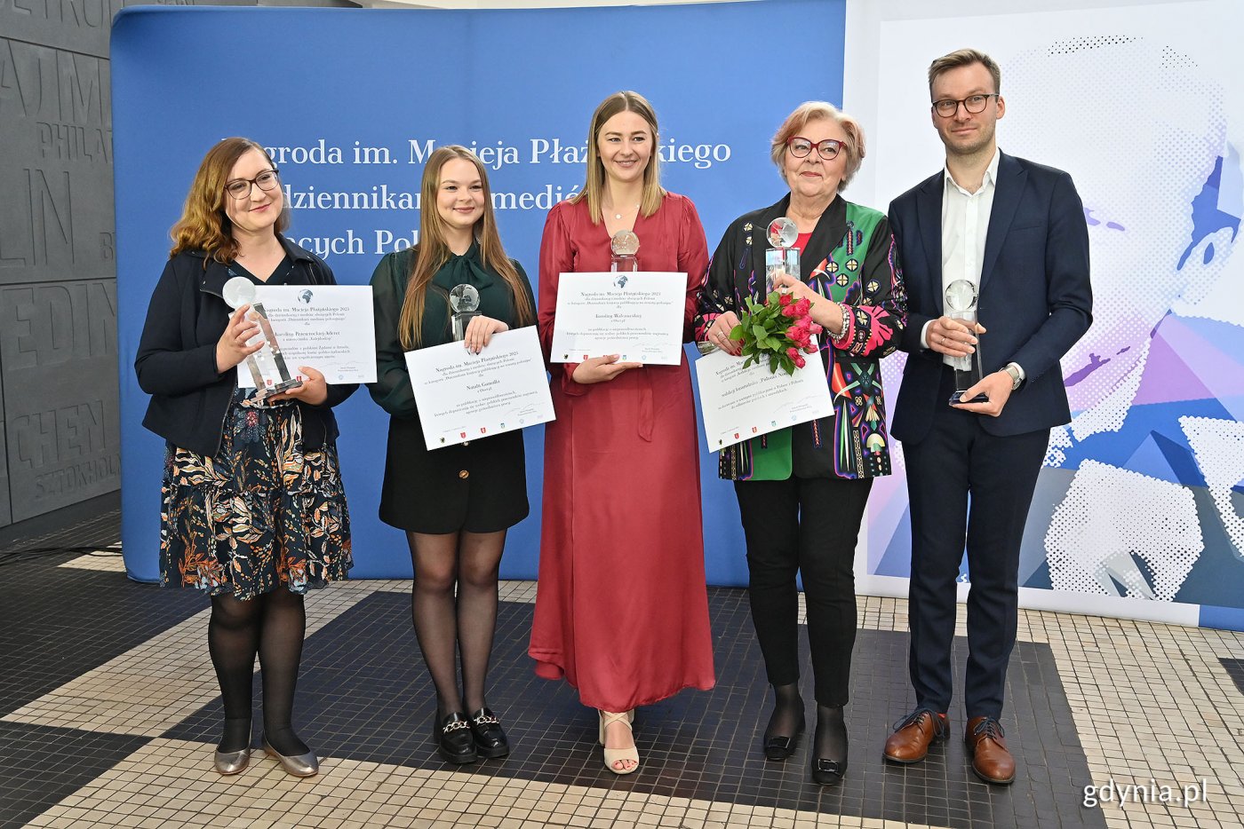 Laureaci tegorocznej, 12. edycji konkursu o Nagrodę im. Macieja Płażyńskiego to dziennikarze i redakcje z Izraela, Szwecji i Polski, a także reporterzy zagraniczni relacjonujący wydarzenia w Polsce po rosyjskiej agresji na Ukrainę zostali docenieni za działania na rzecz Polonii. Tegoroczni laureaci (od lewej): Karolina Przewrocka-Aderet, Natalia Gomułka i Karolina Walczowska, Teresa Sygnarek oraz Philipp Fritz, fot. Michał PuszczewiczW kategorii „Dziennikarz medium polonijnego” nagrodę przyznano Karolinie Przewrockiej-Aderet za cykl wywiadów z polskimi Żydami w Izraelu, opublikowanych w miesięczniku „Kalejdoskop”. Ukazują wspólnotę losów polsko-żydowskich także we współczesnym ujęciu.Karolina Walczowska i Natalia Gomułka zostały laureatkami w kategorii „Dziennikarz krajowy publikujący na tematy polonijne”. Nagrodzono je za publikację w portalu Onet.pl pt.: „Mają chronić pracowników w Holandii, a tworzą obozy”. Opisano w niej nieprawidłowości, jakich dopuszczają się wobec polskich pracowników agencje pośrednictwa pracy.W kategorii „Dziennikarz zagraniczny publikujący na temat Polski, Polaków i Polonii” jury postanowiło docenić wszystkich dziennikarzy zagranicznych relacjonujących wydarzenia w Polsce po rosyjskiej agresji na Ukrainę w pełnej skali. Nagroda jest wyrazem wdzięczności za pokazanie światu solidarnej i otwartej postawy Polaków wobec uchodźców wojennych z Ukrainy.Natomiast w kategorii „Redakcja medium polonijnego” uhonorowano kwartalnik „Polonia Nowa” wydawany w języku polskim i szwedzkim.Wręczenie nagród obyło się 3 czerwca w Muzeum Emigracji w Gdyni.Więcej na nagrodaplazynskiego.pl. Opublikowano: 15.06.2023 11:16 Autor: Dominika Sobiech (dominika.sobiech@gdynia.pl)