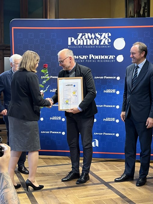 We wtorek, 27 czerwca przyznano tegoroczne Asy Samorządu tygodnika i portalu „Zawsze Pomorze”. W kategorii „Rozwój społeczeństwa obywatelskiego” nasze miasto otrzymało nagrodę za sieć przystani sąsiedzkich. Podczas gali, która odbyła się w Ratuszu Staromiejskim w Gdańsku, statuetkę odebrał wiceprezydent Gdyni Michał Guć. Organizatorem konkursu jest redakcja niezależnego tygodnika i portalu „Zawsze Pomorze”. Do konkursu wpłynęły 32 zgłoszenia. Kapituła uhonorowała najprężniej działające samorządy województwa pomorskiego, pokazując dokonania gmin z: Trójmiasta, Kaszub, Kociewia, Powiśla, Żuław oraz Ziemi Słupskiej. Konkurs był rozstrzygany w trzech kategoriach: „Inwestycje”, „Zielona transformacja”, „Rozwój społeczeństwa obywatelskiego”. Gdynia została Asem Samorządu w kategorii „Rozwój społeczeństwa obywatelskiego”. Wszystko to za sprawą przystani sąsiedzkich. Miejsc, które aktywizują mieszkańców i budują lokalną społeczność. Do gdyńskich przystani może przyjść każdy – niezależnie od pochodzenia i narodowości.W Gdyni funkcjonuje 7 takich miejsc: Przystań Lipowa 15, Przystań Śmidowicza 49, Przystań Chylońska 237, Przystań Opata Hackiego 33, Przystań Wiczlińska 50A, Przystań Chabrowa 43, Przystań Łowicka 51.Sieć domów sąsiedzkich, czyli przystanie sąsiedzkie, powstają z inicjatywy gdyńskiego samorządu. To miejsca z szerokim wachlarzem zajęć dla mieszkańców poszczególnych dzielnic oraz przestrzenią do spotkań i aktywności. Tych podejmowanych oddolnie, jak i samodzielnie przez gdynian.Więcej o gdyńskich przystaniach można przeczytać na stronie internetowej:www.przystan.gdynia.pl. Opublikowano: 29.06.2023 12:28 Autor: Dominika Sobiech (dominika.sobiech@gdynia.pl)